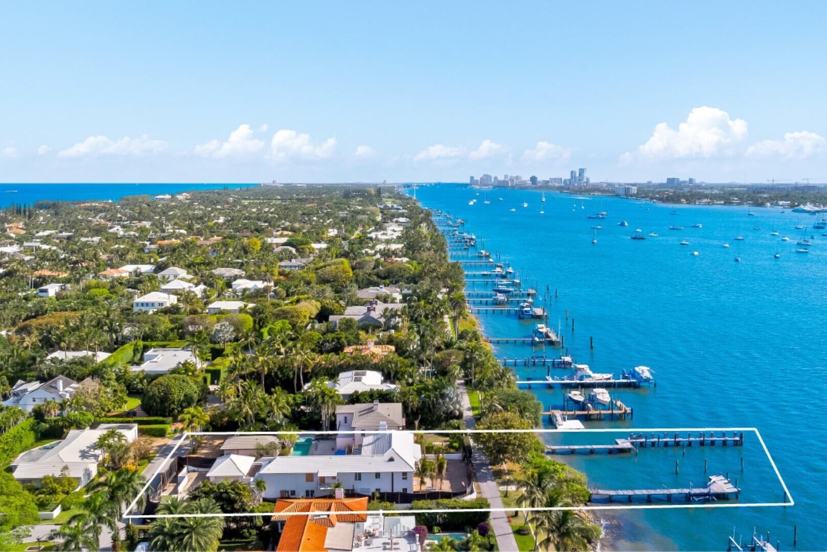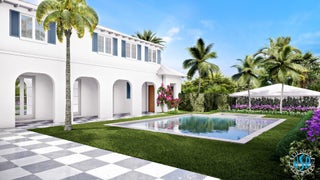 Spectacular Newly Completed Lakefront home with deep water dock and access to the Lake Trail. With spectacular views of the Intracoastal, this stunning home has been beautifully restored and features 5 bedrooms, 7 bathrooms, 1 powder room, and over 6,800 total square feet. Fabulous courtyard pool area perfect for outdoor entertaining with covered loggia, expansive patio, salt-water pool, and spa. Interior highlights include formal dining room, fabulous eat-in kitchen, media room, and den. Beautiful Primary Suite with dressing room, large bath with dual sinks, and breathtaking views. Additional features include lush tropical landscaping, 2-car garage, multiple balconies, and charming entry portico.