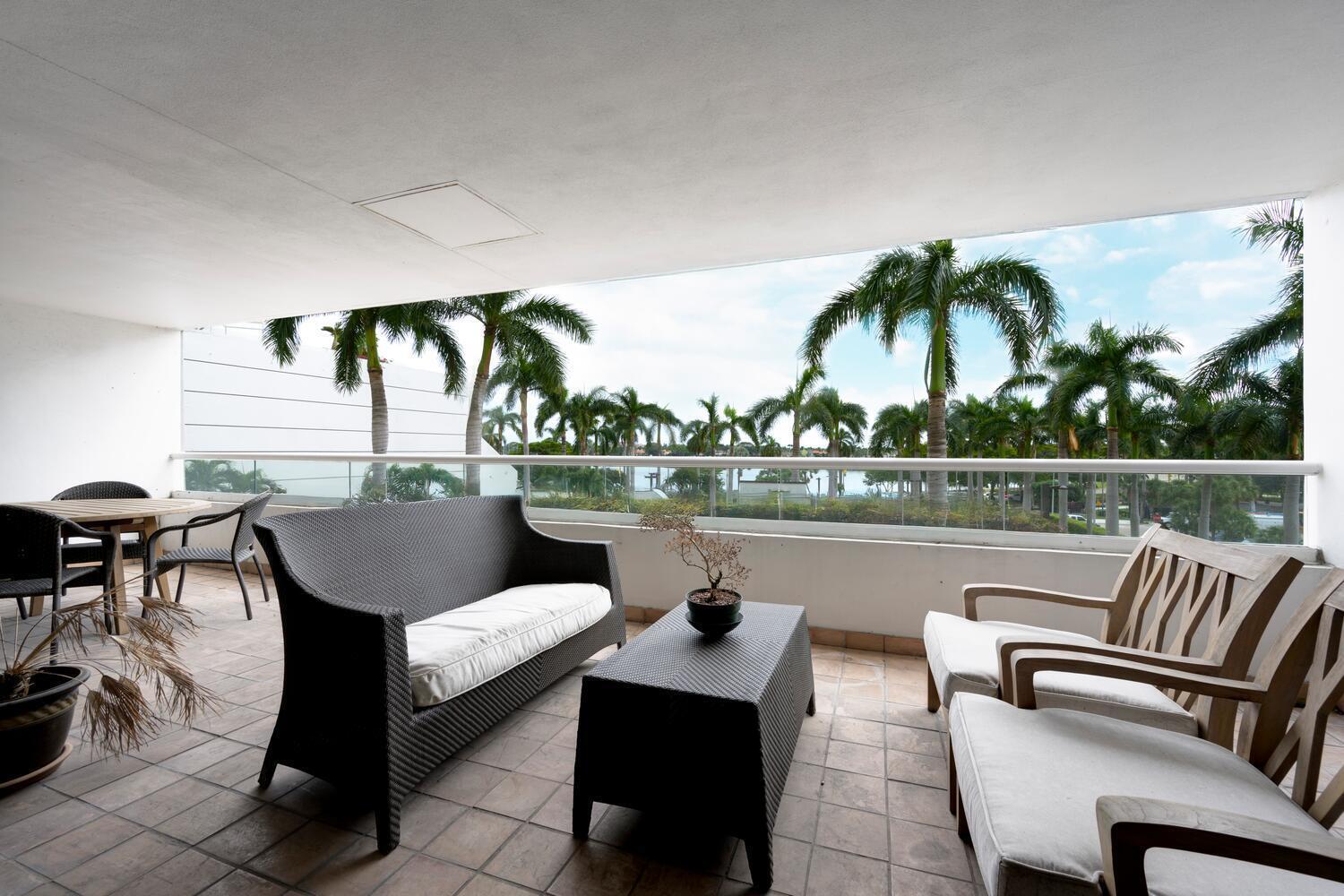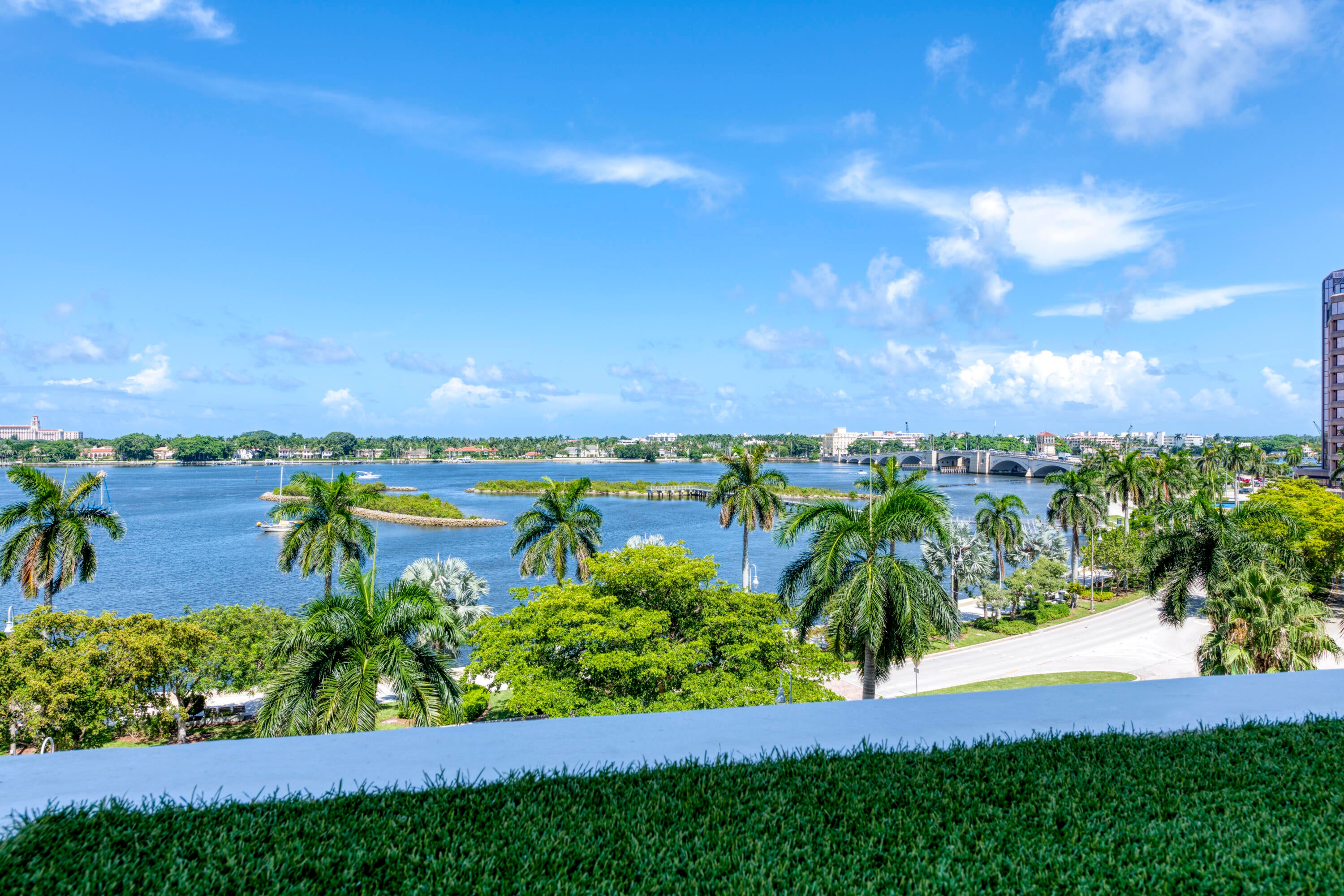 Lovely water views from this elegantly updated one-story townhouse with over 3,325 total sq. ft., (2,560 sq. ft., of living space under air), two large East and West facing terraces, perfect for entertaining. Gourmet kitchen with moveable island, pantry and abundant storage, 40 bottle wine cooler, wine rack, plus areas for spirits and glasses. Updated living and dining rooms with new lighting, new fire sprinklers, new electric outlet, new electric switches, new solid wood doors and hardware, new A/C with UV filter, new ceiling vents for A/C. Master suite includes walk in dressing room, large master bath with soaking tub, large shower, linen closet, and toilet closet. Guest bedroom has an ensuite bath. This lovely home also features a den, office, laundry room and powder room.Lives like a house but with the amenities of a condo. East and West exposures. Outdoor balcony offers exceptional living/dining space and water views. Full service, luxury building with 24-hour security, valet parking, concierge, two swimming pools, fitness room, conference room, and tennis court with pickleball. Pet friendly. The building has passed their Milestone Inspection as an "A" Rated Structurally Sound Building. New balcony and pool area renderings provided by The Plaza of the Palm Beaches. Along with the balcony railing and east pool projects a Four Seasons and Ritz-Carlton interior designer has been engaged to refresh the mezzanine, grand lobby, and other common areas.