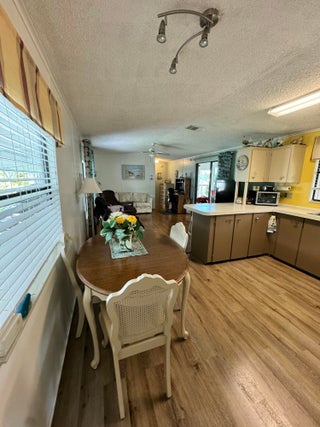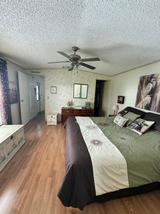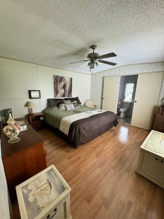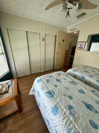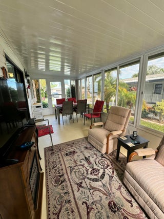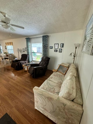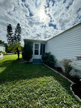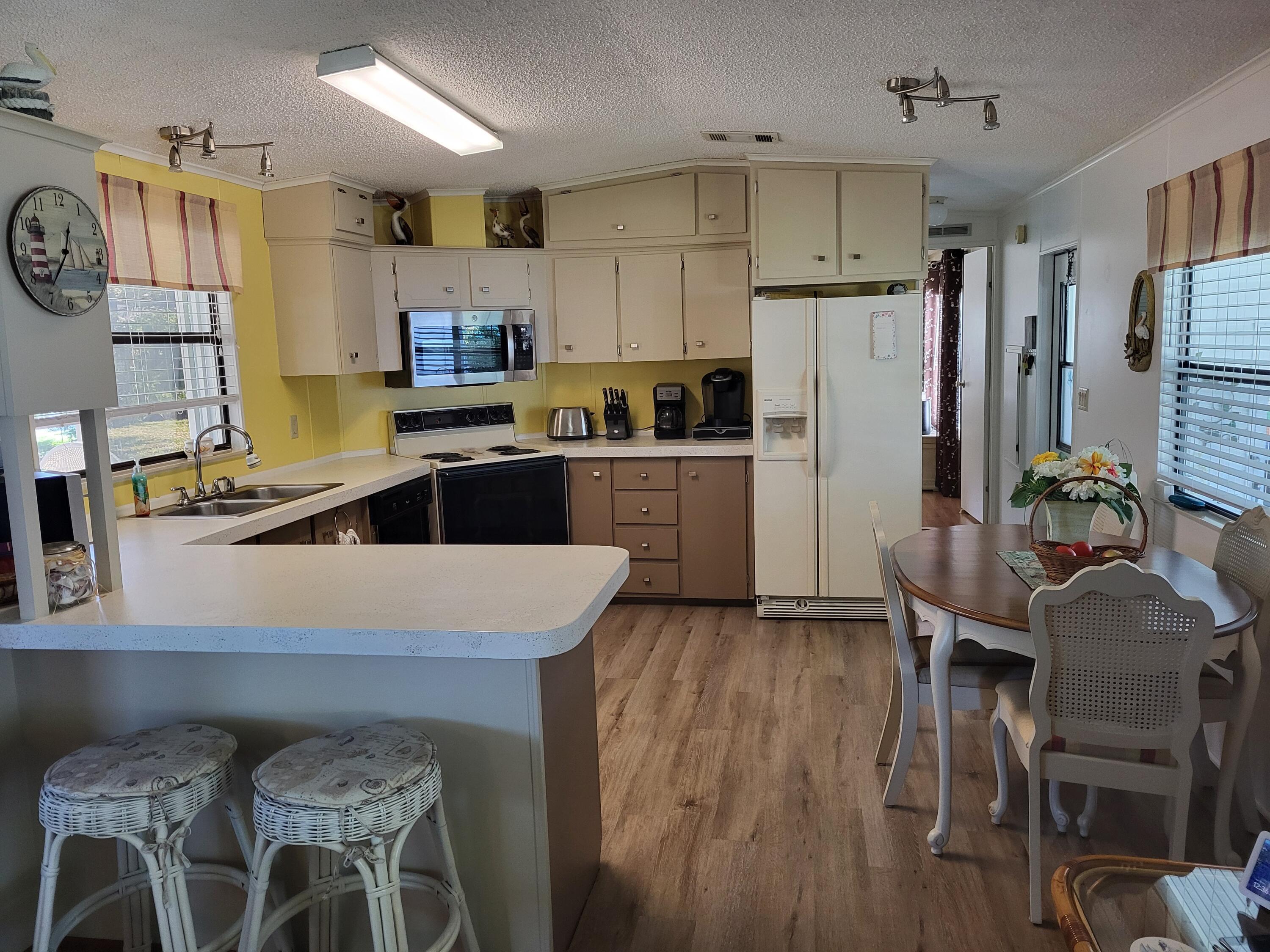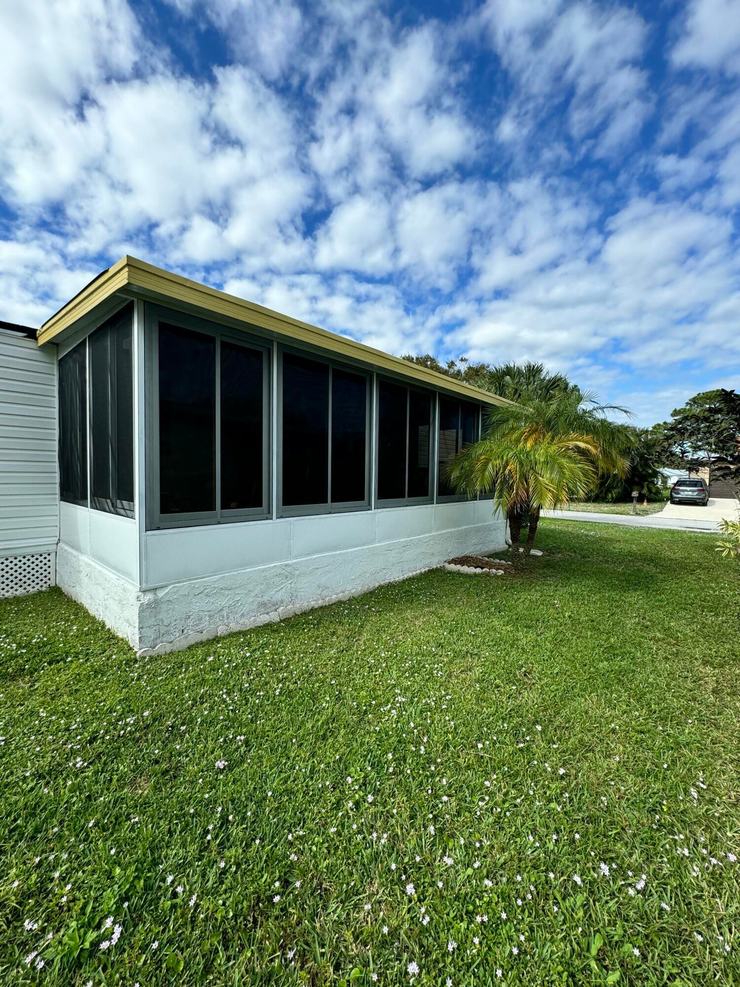 Immaculate 2 bedroom 2 bath home located in the desirable 55 + Spanish Lakes Fairways community. Split floor plan. Home has laminate floors throughout. NO CARPET. Open kitchen, screened in patio with windows off living room. Bathrooms have new vanities and toilets. Large carport space and large 8 X11 shed. Home is being sold FURNISHED. A/C 2015, Water heater is 2022. Washer machine is 2017. Appliances are in great shape. Amenities include Private 18 hole golf course, 2 pools, pickle ball, tennis, shuffleboard, bocce, gym, library, wood workshop and much more. Low Lot Rent. MUST SEE!