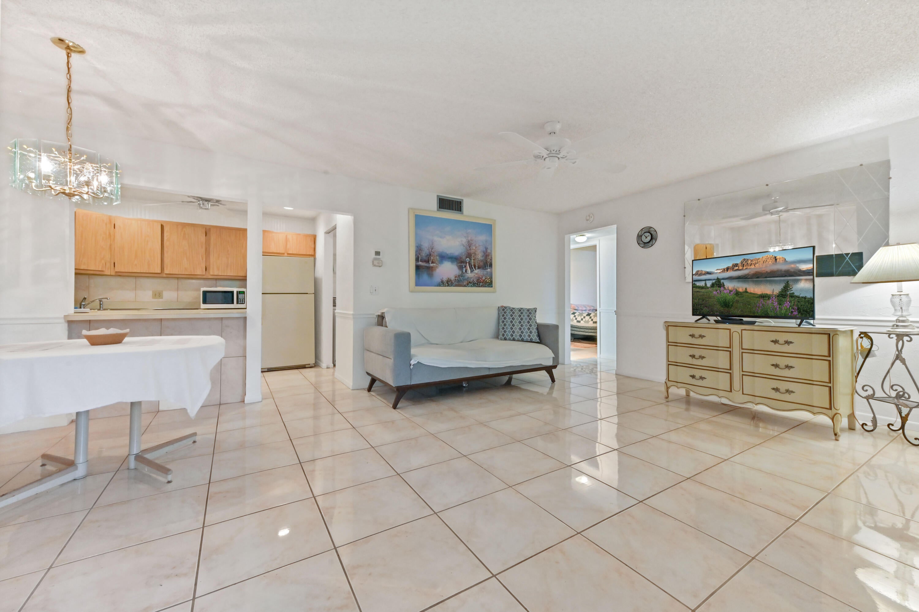 Welcome to this inviting 2-bedroom, 1-bathroom upper-floor condo located in the sought-after 55+ community of Pine Ridge South in Greenacres, FL. From the moment you arrive, you'll appreciate the serene ambiance, starting with a screened balcony at the entrance--perfect for enjoying your morning coffee or unwinding in the evening. The cozy living and dining areas are bathed in natural light, offering a comfortable space for relaxation or entertaining guests.The well-appointed kitchen features ample cabinetry, providing convenient storage, while the adjacent laundry room ensures effortless day-to-day living. Both bedrooms are thoughtfully designed with closets for your organizational needs, blending comfort and functionality. Whether you're enjoying quiet moments indoors or hosting loved ones, this condo offers the ideal setting for a relaxed and fulfilling lifestyle. Nestled just minutes from premier shopping, dining, and entertainment options, this home combines convenience with tranquility. Pine Ridge South is a meticulously maintained community that offers residents an array of amenities designed for active adults. Don't miss the opportunity to enjoy this charming home and its vibrant surroundingsschedule your private showing today!