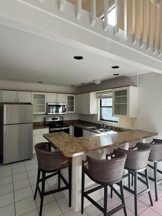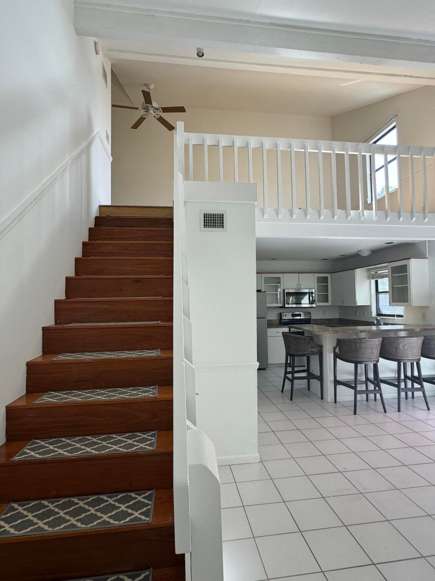 Calling all INVESTORS. Fully rented through June 2026. Rarely available end unit located in the heart of Tequesta sits this adorable end unit villa. 2 bedrooms 2 baths with adorable fenced in side patio and storage shed. So much potential to make this a super home or rental. family room, kitchen dining room and bedroom and bath on main level. Upstairs huge loft area, large walk in closet and full bathroom.