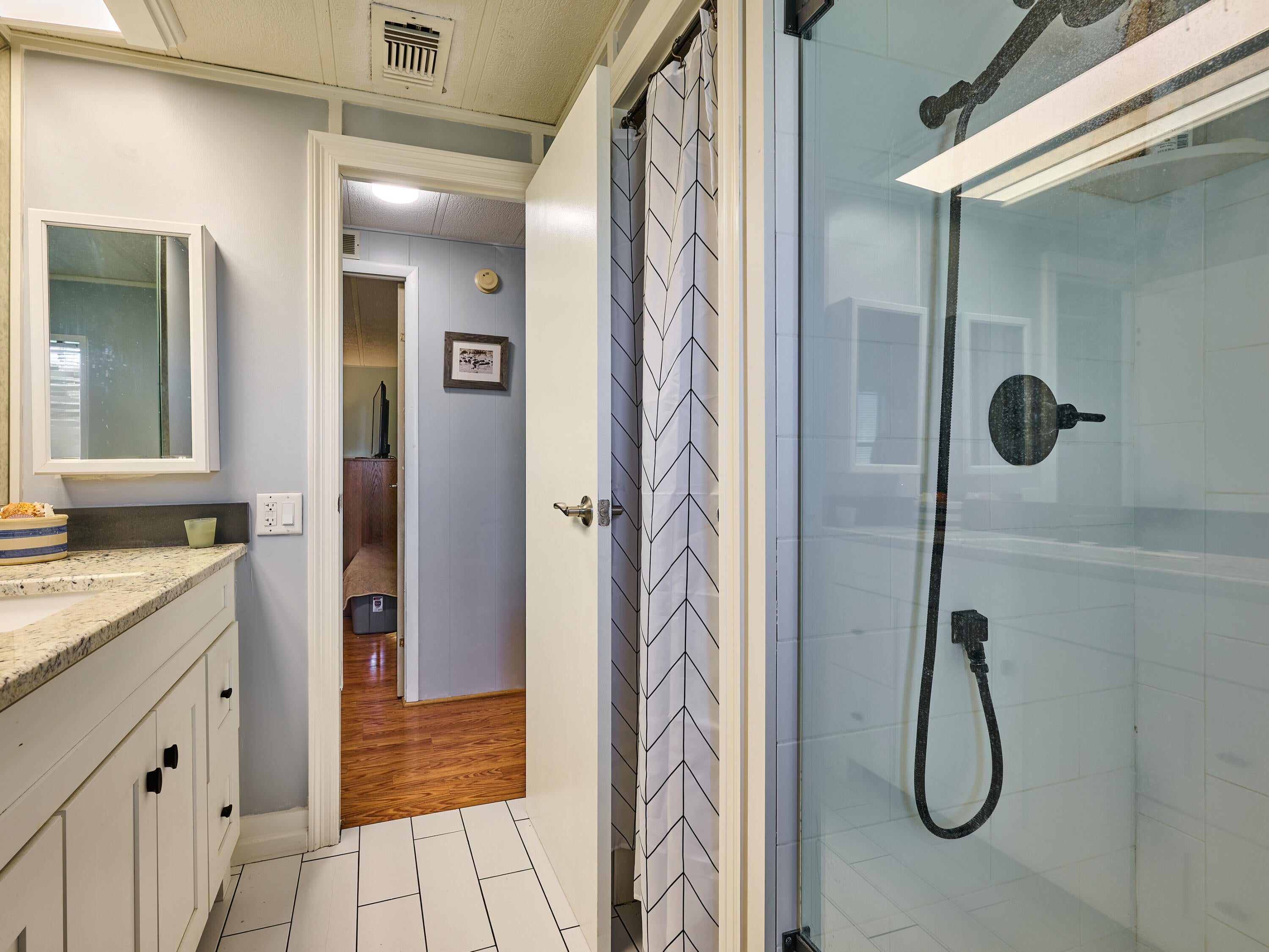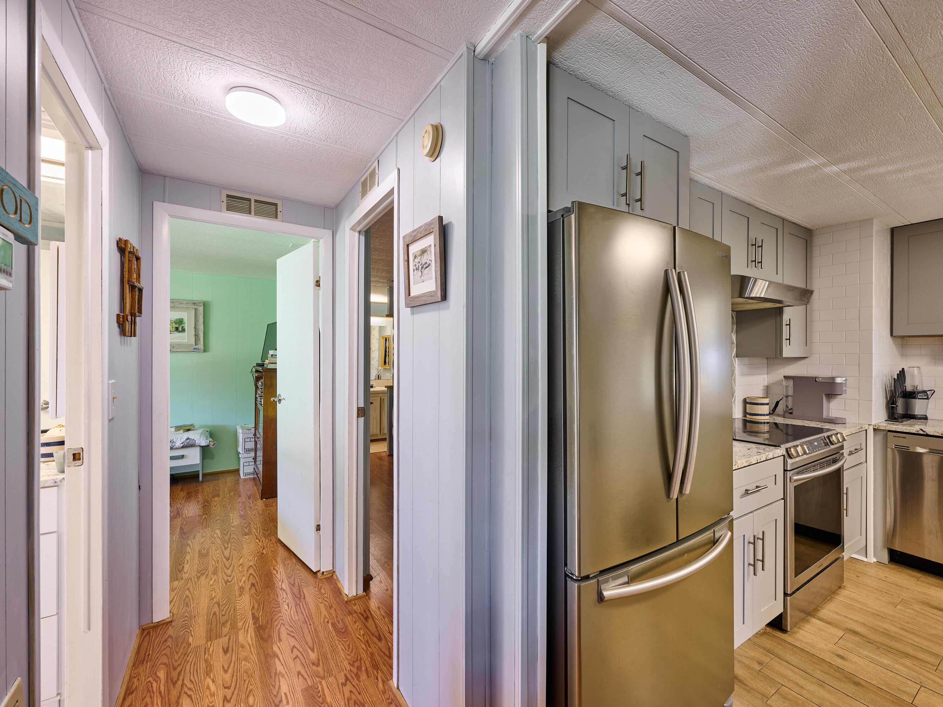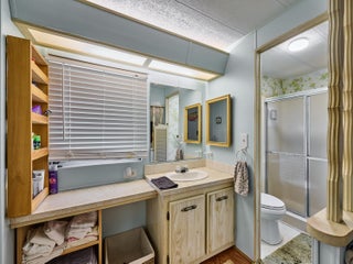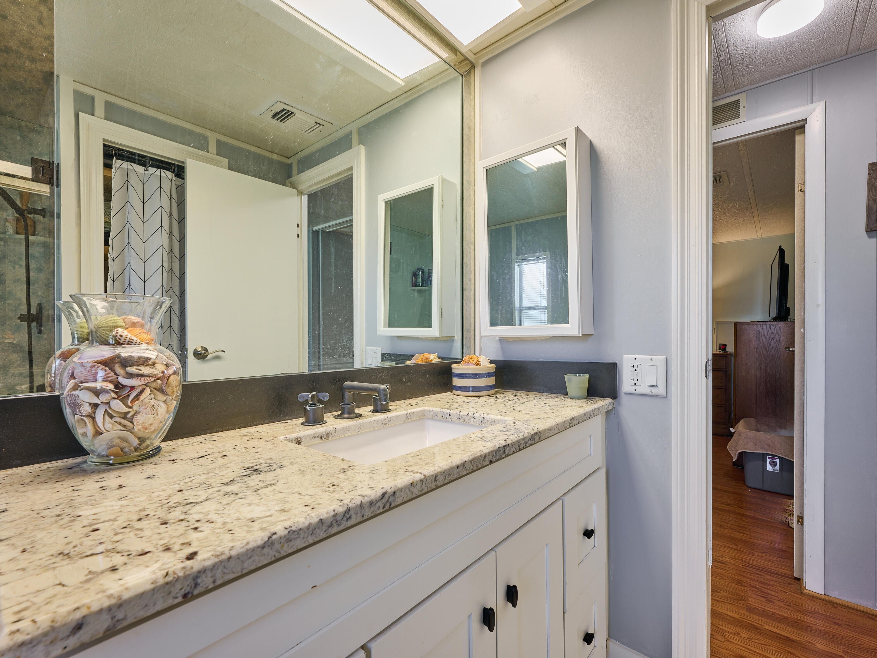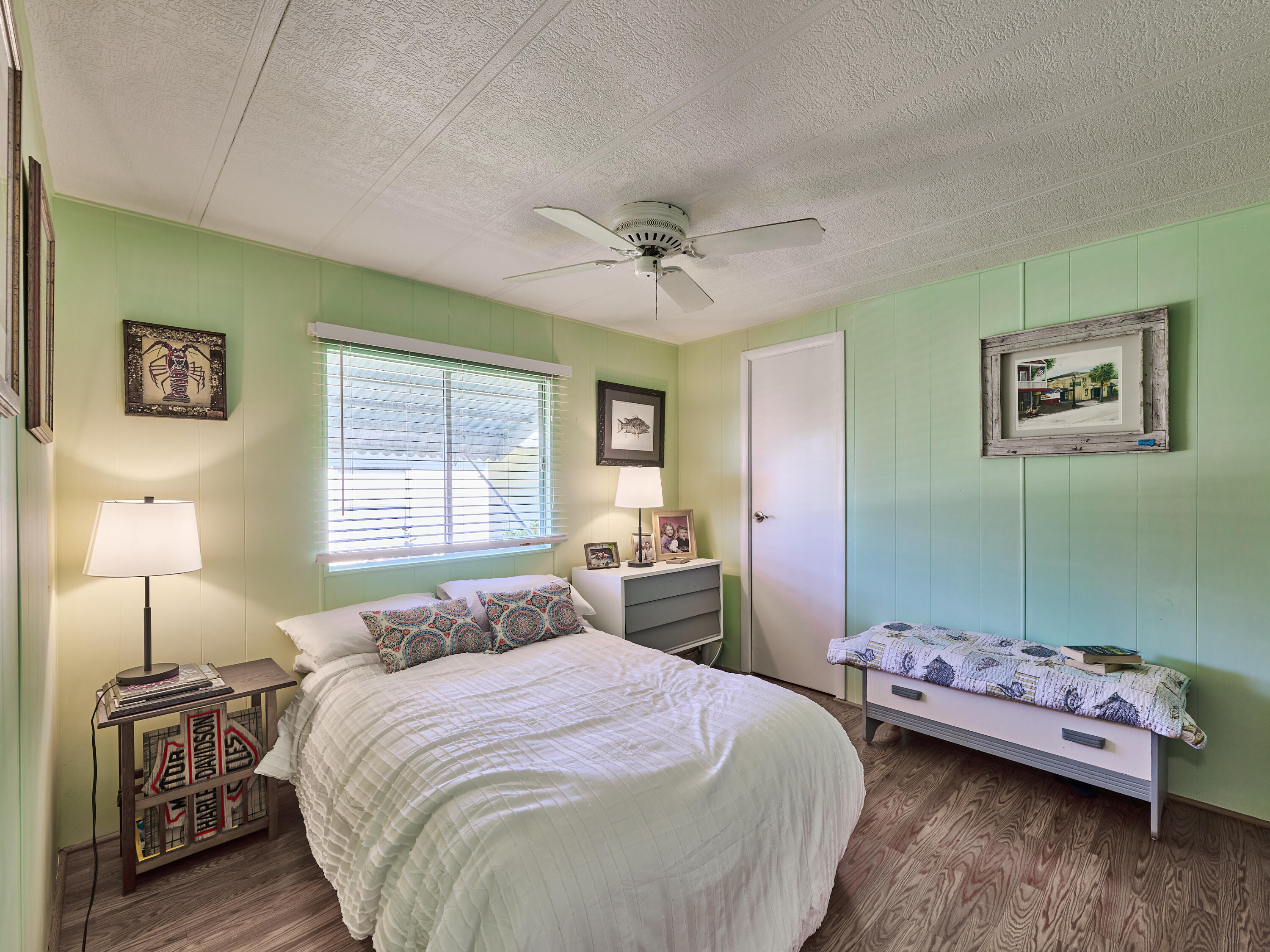 2 Bedr/2 Bath Manuf Home in Cambridge 55+ Community in Hobe Sound. Stunning, New Kitchen 2021 w light grey shaker cabinets, granite countertops, stainless steel appliances, undermount sink, new flooring, & LED lighting. The kitchen was opened up to the living room w a convenient breakfast bar. Freshly painted throughout w tropical hues so popular in FL. Redone guest bathroom in 2023 w tile shower, frameless shower enclosure, new tile floor, vanity, toilet & granite counter. The Master bedrm is large w ensuite bath. This bath awaits your personal upgrades. The 2nd bedrm is a good size. Laminate flooring throughout. THIS HOME HAS 2 LANAIS for extra living space. Doggie door to fenced backyard. New AMS Aluminum roof 2021 w lifetime warranty. New A/C ductwork! YOU OWN THE LAND- ALL PETS WELCO