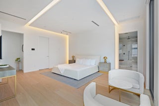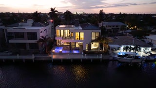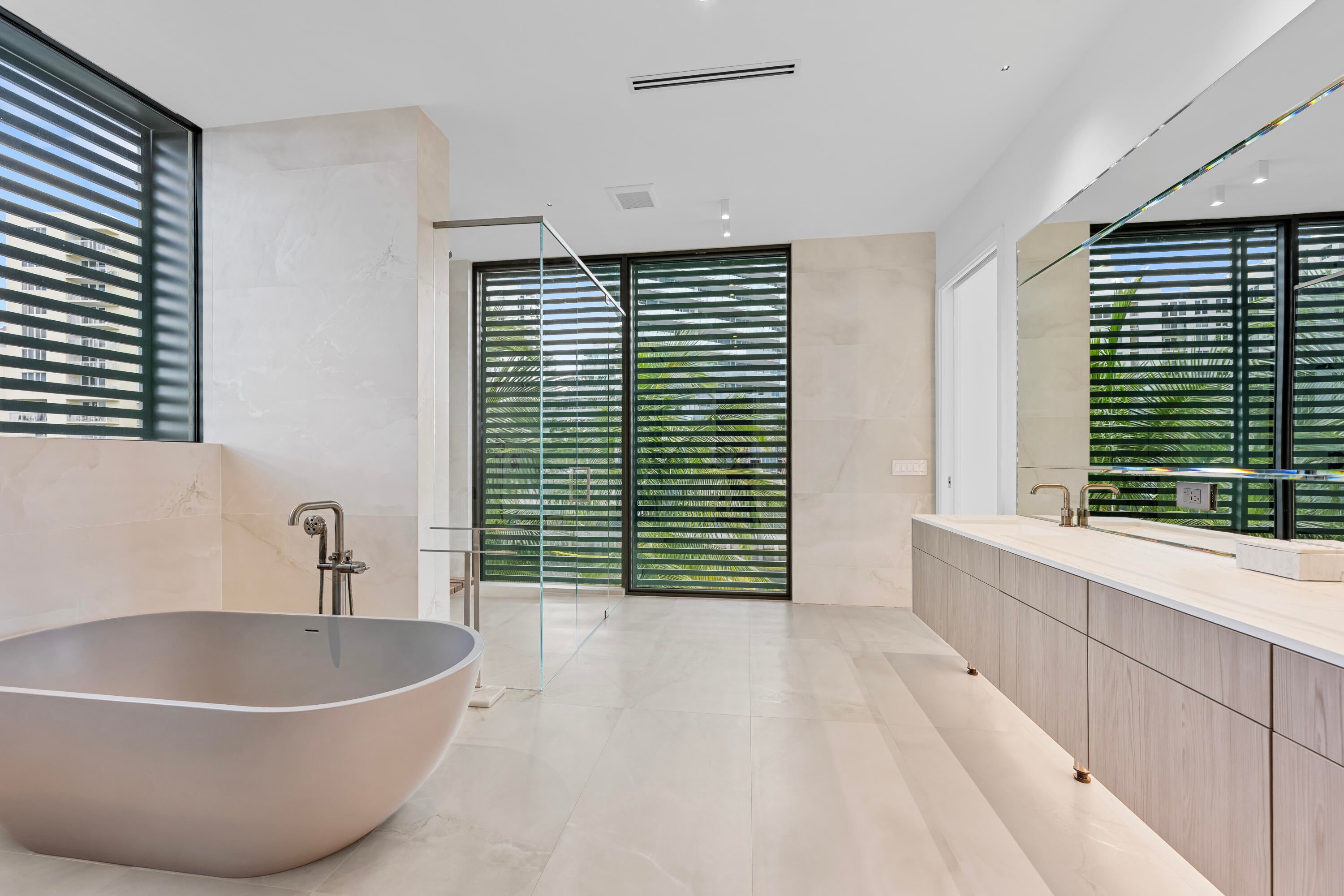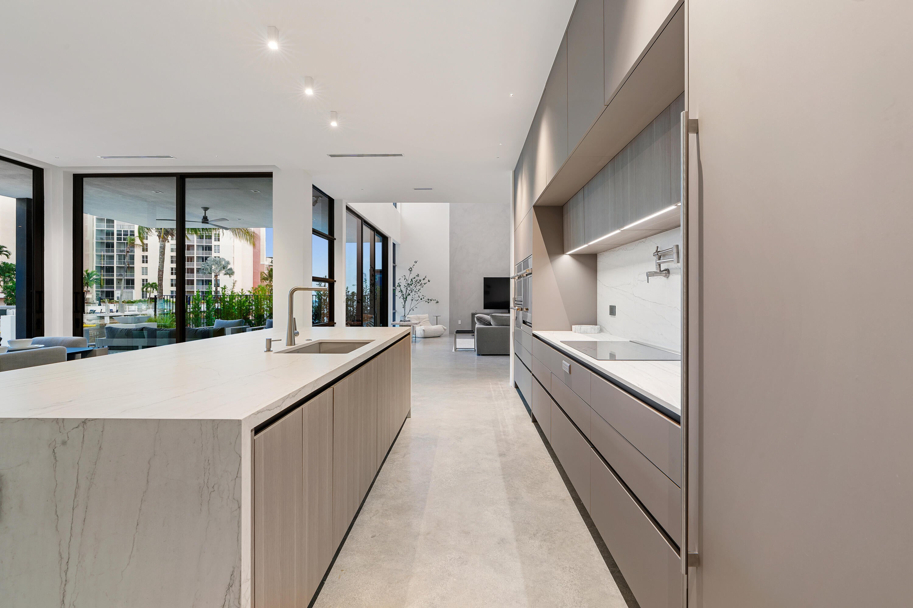 Discover refined living in this stunning modern 5-bedroom, 4 full and 2 half-bath waterfront masterpiece located in Lauderdale-by-the-Sea on gated Terra Mar Island. Developed by Bricker and designed by IntelAE, this residence boasts 75 ft of waterfront with luxury yacht docking, a saltwater pool and spa, and an outdoor kitchen. Upon entering, you are greeted with soaring 25-foot ceilings that enhance the sense of grandeur and expansiveness. This solar-powered home offers energy independence and features high-end Italian finishes, motorized shades in every bedroom, dual primary suites, a coffee bar, and wine fridge, further elevating its private resort-style feel.