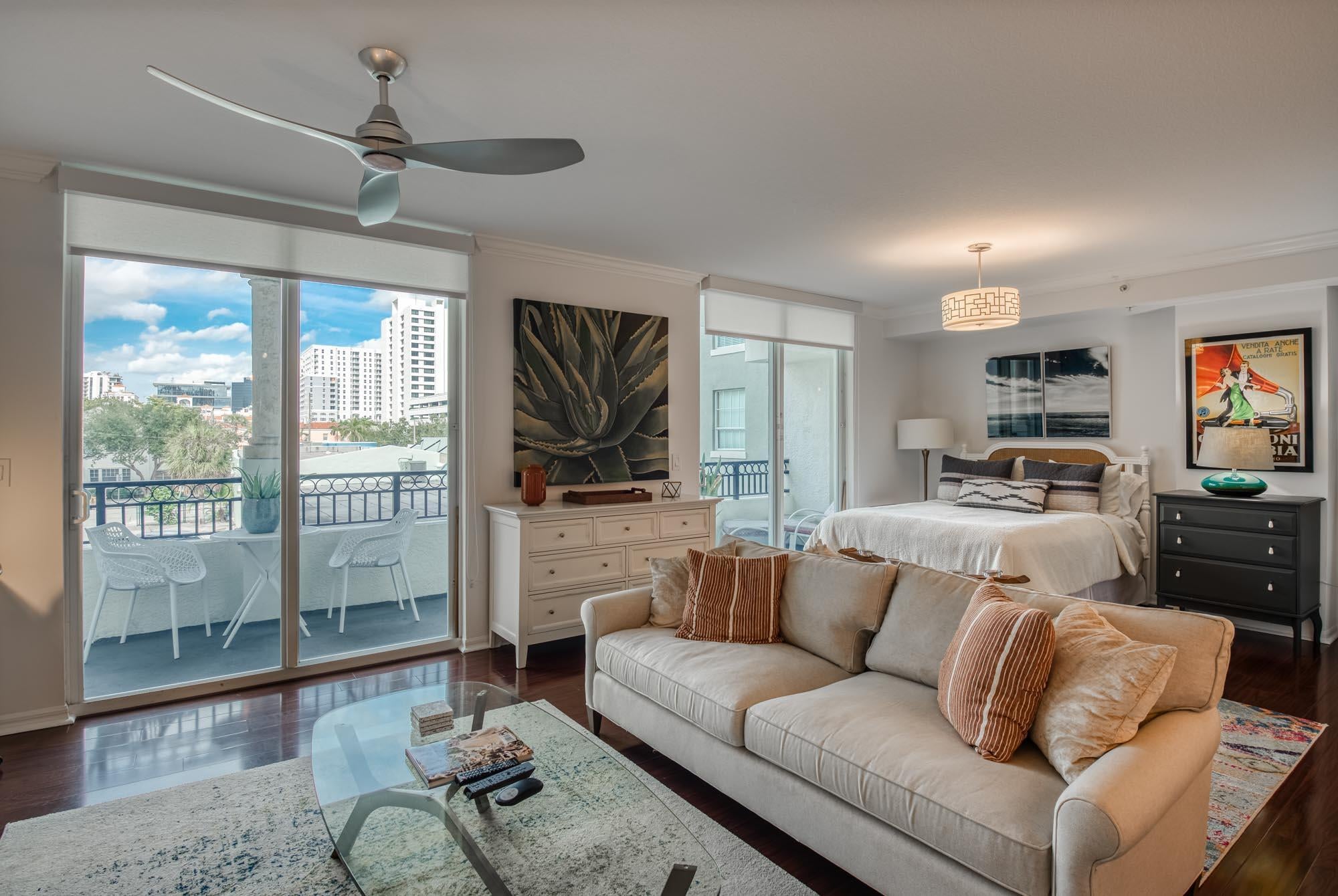Beautifully furnished LARGE Studio facing north with amazing downtown views. Spend your winter in Luxury! High ceilings, kitchen with granite and stainless, full-size W/D in unit, walk-in closet in the BR area, work area with desk and chair, covered balcony. Building amenities include 24hr front desk, pool, hot tub, fitness studio, sauna, social room. One assigned parking space in the building garage. Prado is ideally located in the heart of downtown WPB - walk to shopping, dining, entertainment, waterfront. Trolley stop nearby. Seasonal lease.