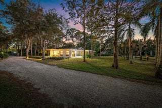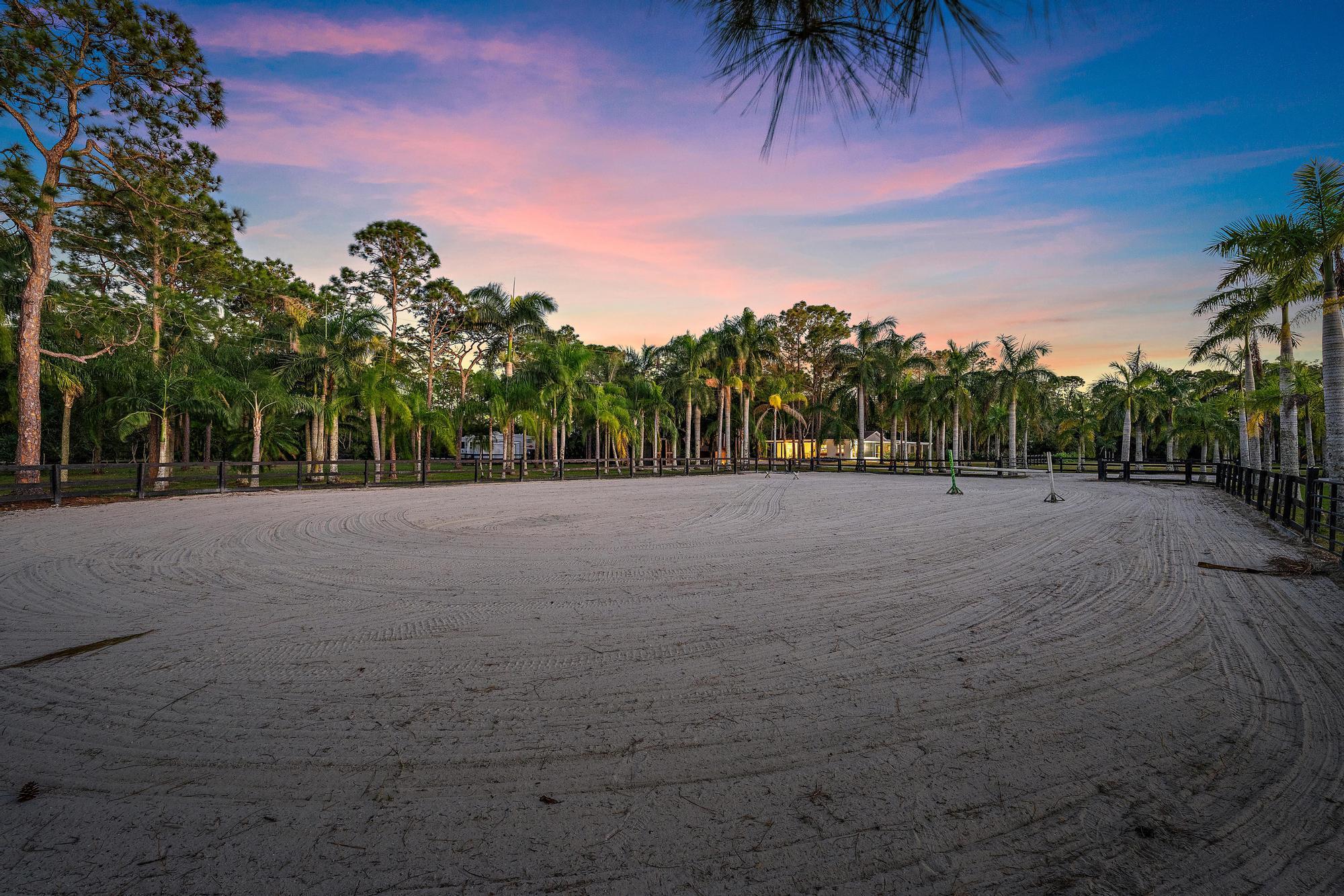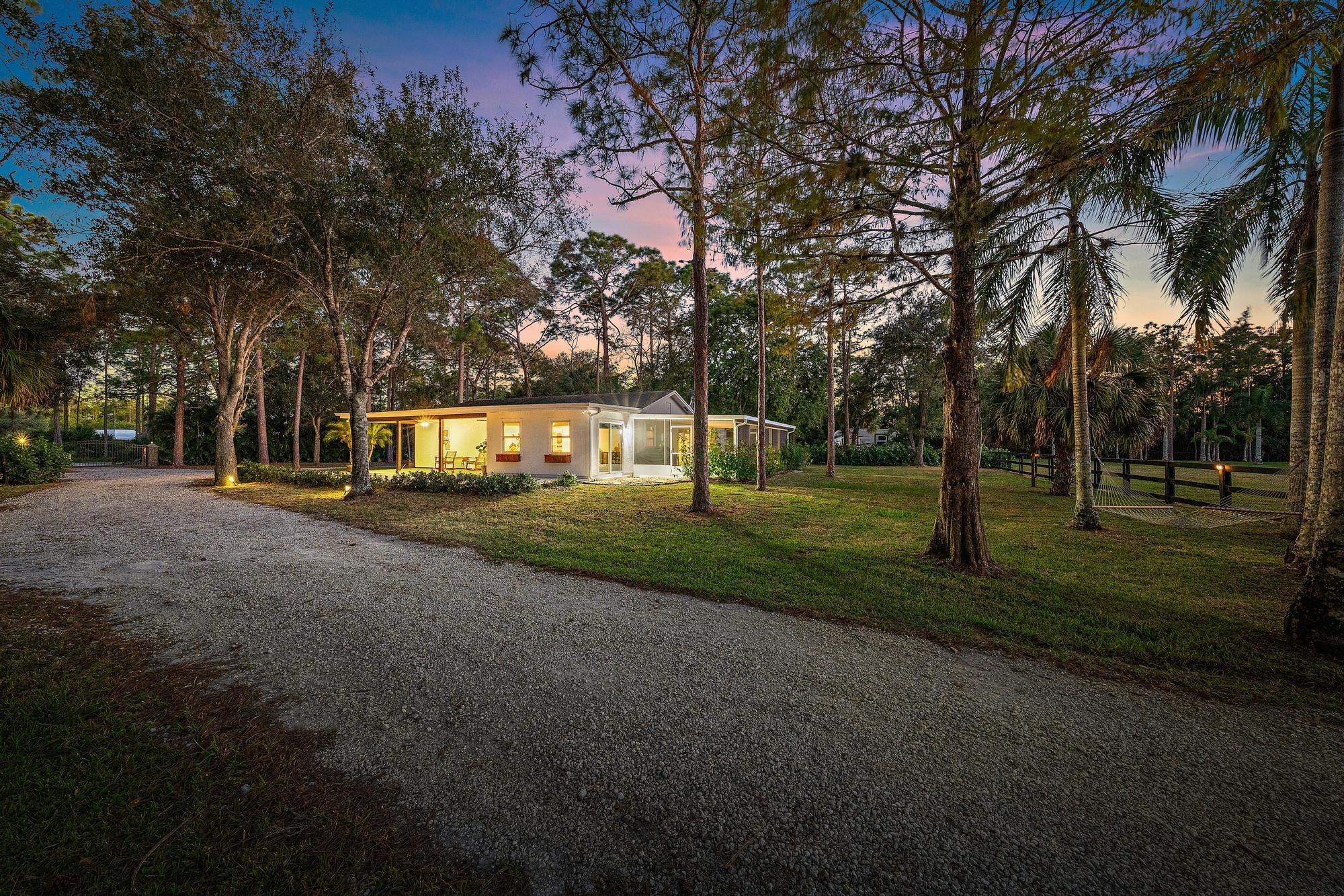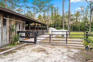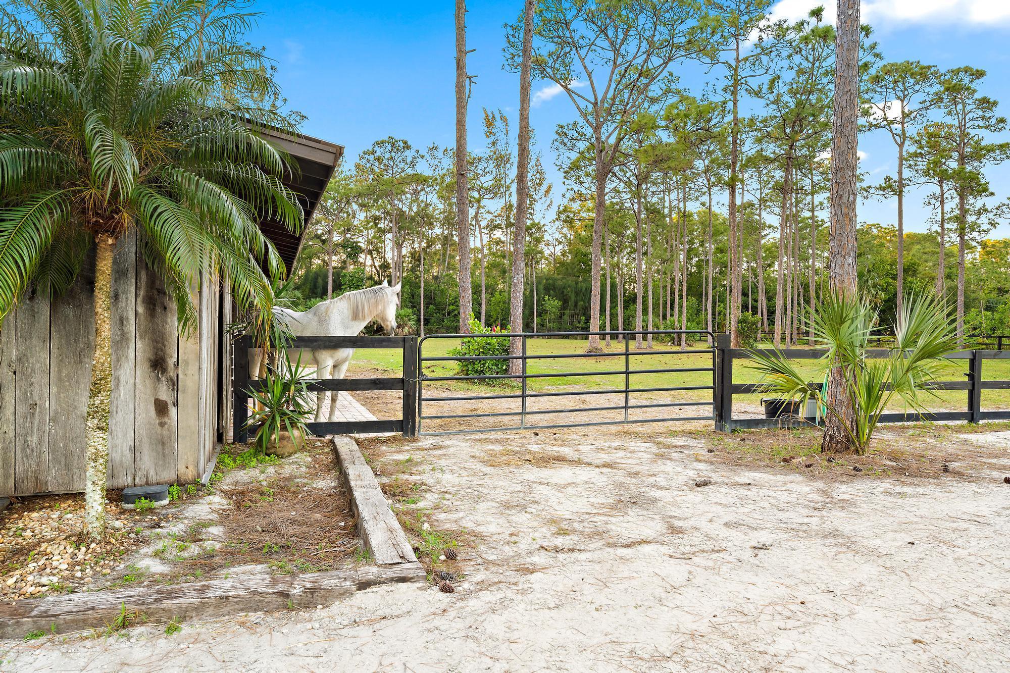 Welcome to 14765 128th Avenue N, a rare opportunity to own over 10 serene acres in the heart of Palm Beach Gardens -- where tranquility meets functionality for equestrian enthusiasts, nature lovers, and those seeking a secluded lifestyle with no HOA. Tucked inside the prestigious Wind in the Pines community, this sprawling estate features a private sandy beach, a 50-ft dock, and a boathouse on a spring-fed lake that's fully stocked for fishing and paddleboarding. Ride your horse or golf cart along the shaded, private trails that wind through this breathtaking property.Designed with equestrian needs in mind, the property includes two barns with eight total stalls, gated paddocks, a dressage ring, and a round pen. Additional features include solar-powered waterers,covered hay storage, a private feed room, and fully irrigated and landscaped grounds drawing from the lake for efficient water use. The 3-bedroom, 2-bath main home offers a light-filled interior with spacious living areas, a modern kitchen with newer stainless steel appliances, and two large screened porches perfect for unwinding and taking in the views. Recent upgrades include a 2023 HVAC system, a 2023 reverse osmosis water filtration system, and a brand-new stackable washer and dryer, providing enhanced comfort and energy efficiency. Additional highlights include a separate equipment shed, privacy fencing, ability for an agricultural exemption for lower taxes, and ample room to build an accessory dwelling, guest house, or additional facilities. Located just minutes from world-class golf, top-rated equestrian centers, A-rated schools, I-95, and the beaches of Jupiter and Juno, this estate offers the perfect blend of privacy, accessibility, and outdoor lifestyle. Now offered at $1,449,000, this is a unique chance to own an income-generating estate or build your dream retreat. Schedule your showing today to experience this one-of-a-kind property in person.