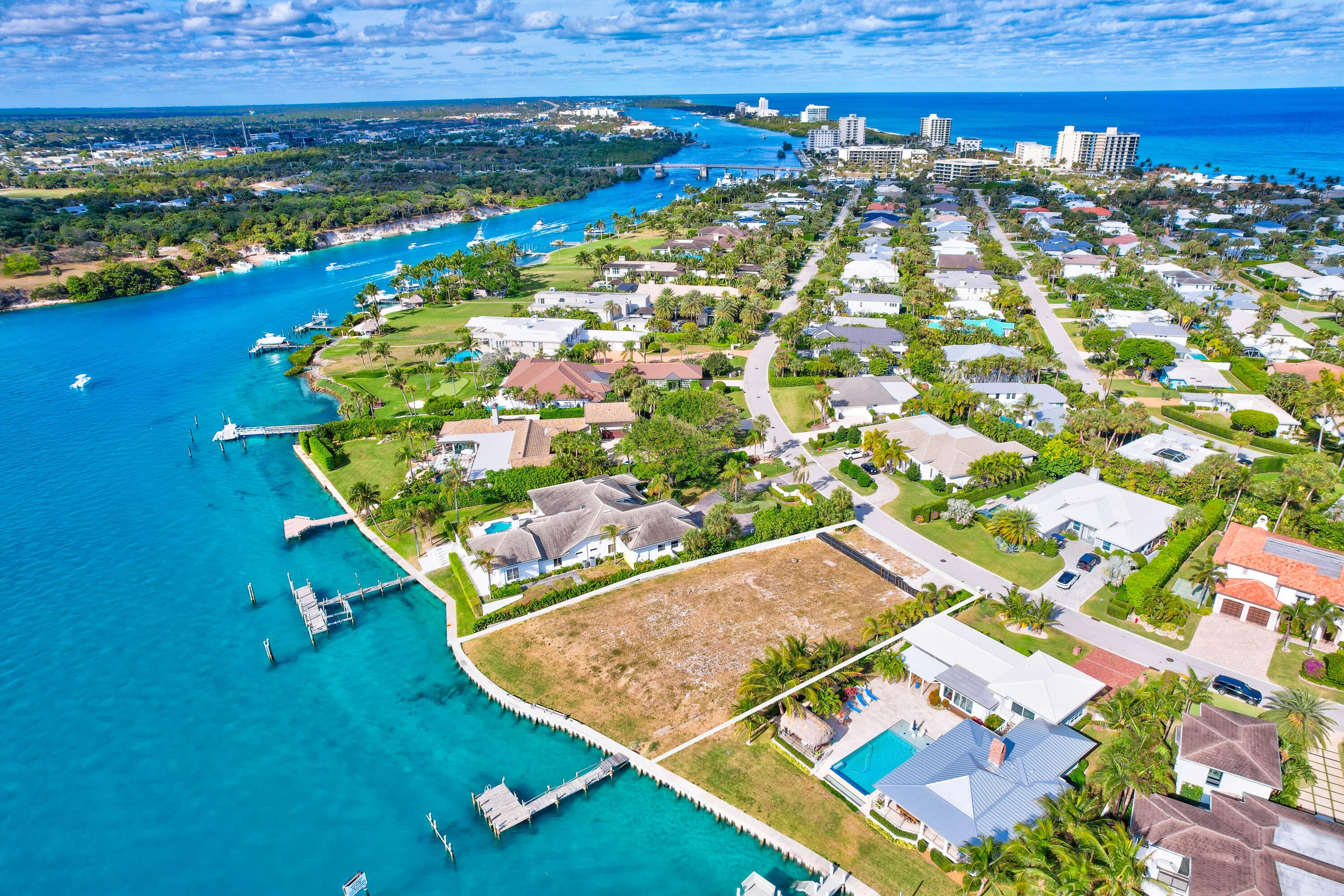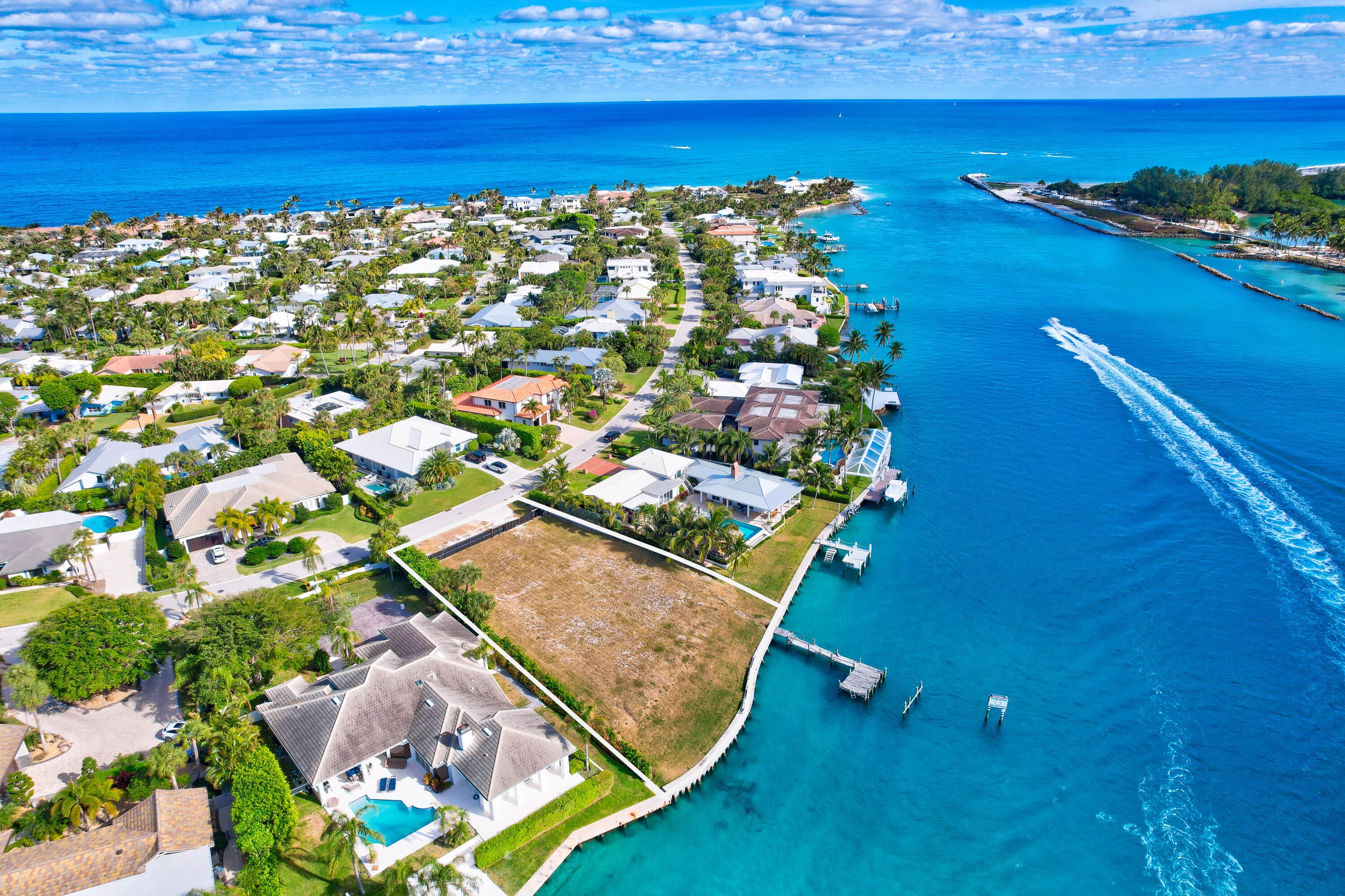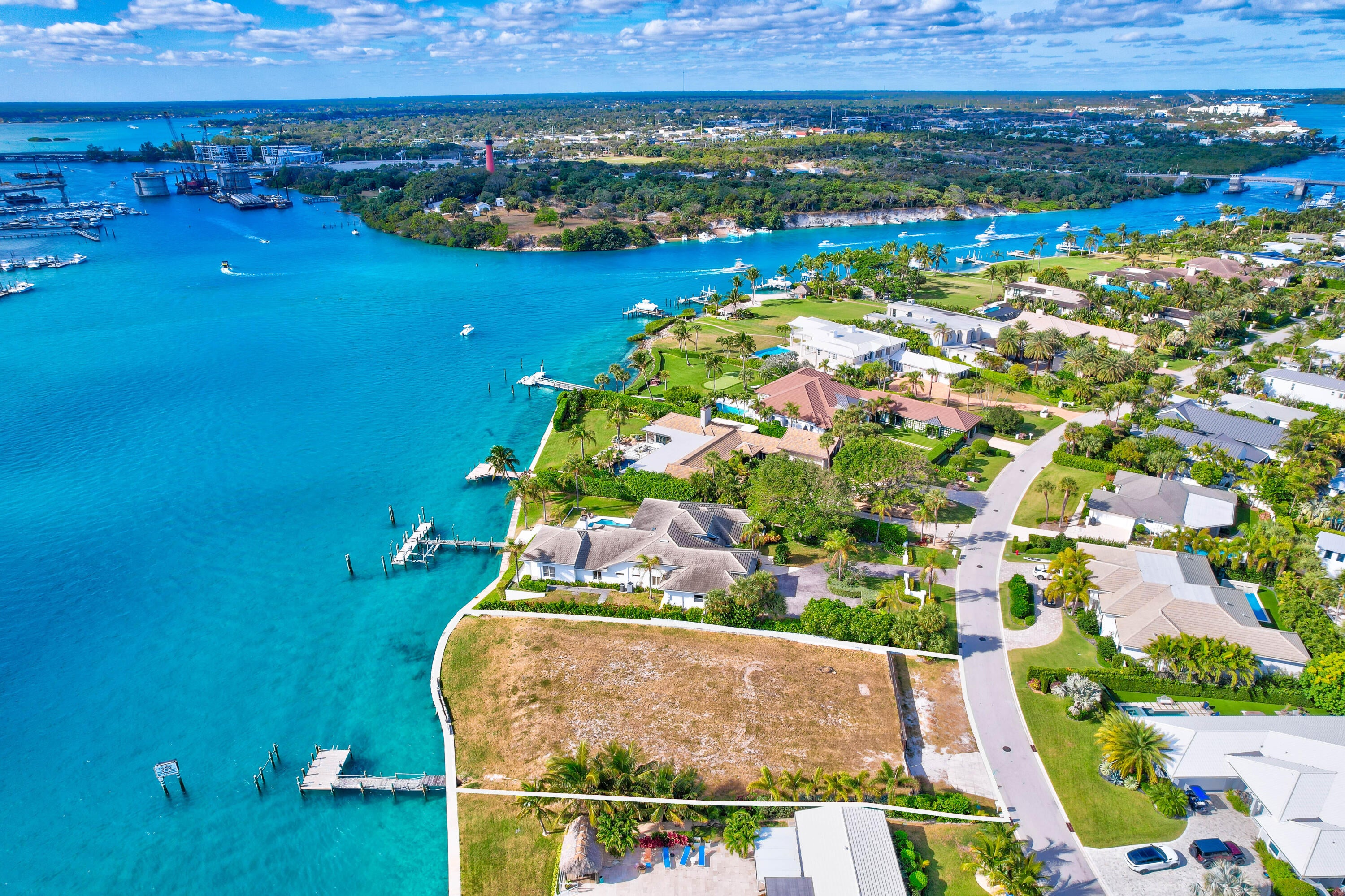 Exclusive Waterfront 1/2 Acre Lot in Jupiter Inlet Colony - Direct Inlet Frontage with Lighthouse Views. Rarely does an opportunity like this arise--an extraordinary 1/2 acre waterfront lot in the prestigious community of Jupiter Inlet Colony, offering 128 feet of prime direct frontage on the Inlet. Perfectly positioned to capture the serenity of the water and the charm of coastal living, this lot provides the ideal canvas for creating your dream estate. Whether you're looking to build a luxurious waterfront residence or a peaceful retreat, the expansive 128 feet of frontage ensures ample space for a custom designed home with endless possibilities.The gentle sound of the waves, the ever-changing light over the inlet, and the stunning vistas of the lighthouse at sunrise and sunset make thislocation truly one-of-a-kind. Enjoy boating, fishing, and other water activities right at your doorstep, with easy access to the Intracoastal Waterway and the Atlantic Ocean. Located in the sought-after Jupiter Inlet Colony, one of Palm Beach County's most exclusive and secure communities, this lot offers not only privacy and tranquility but also proximity to top dining, shopping, and entertainment options. With its low-density atmosphere and uncompromising natural beauty, this is a rare gem that offers a lifestyle few will ever experience.