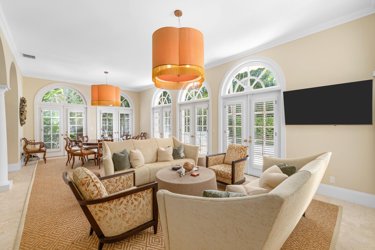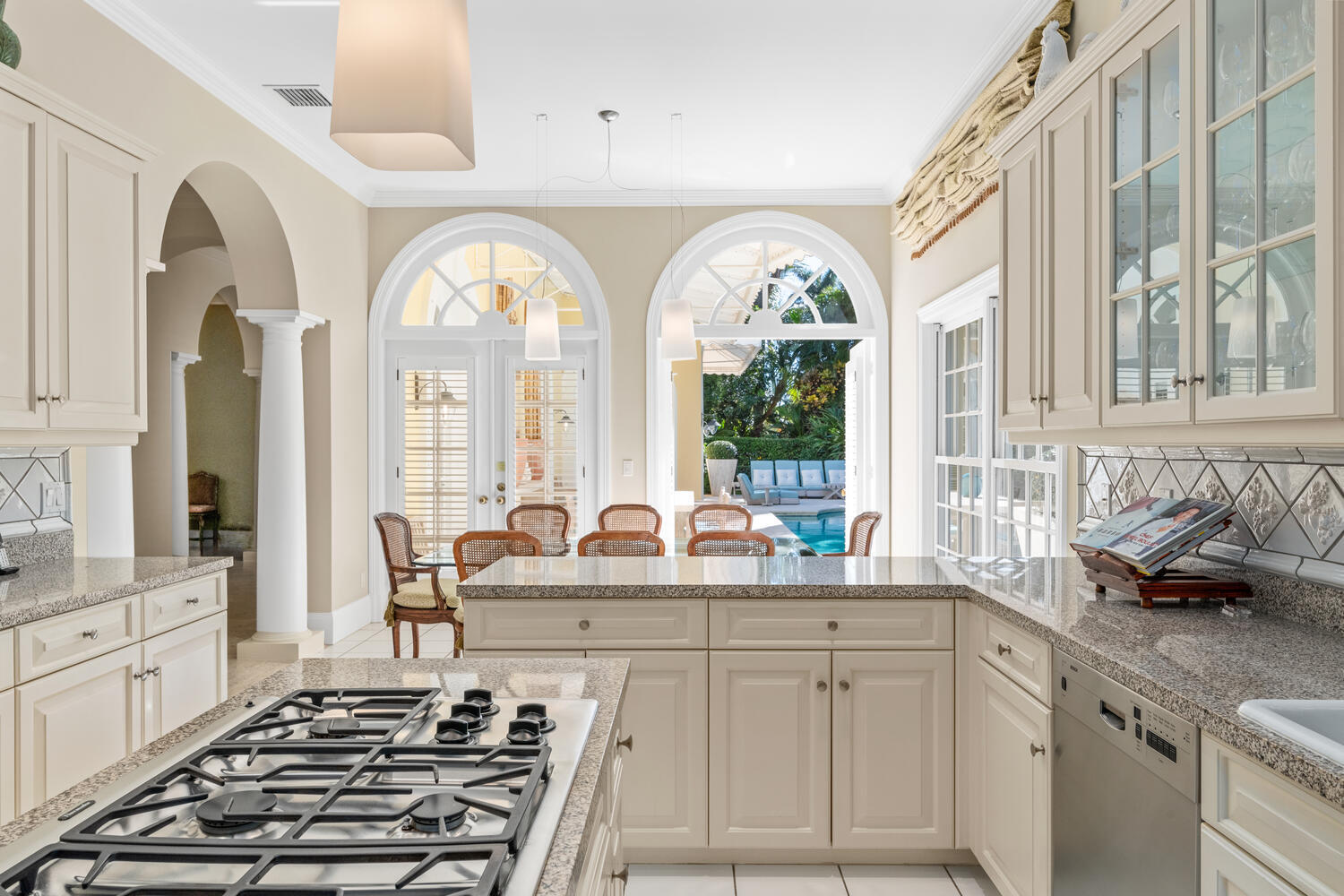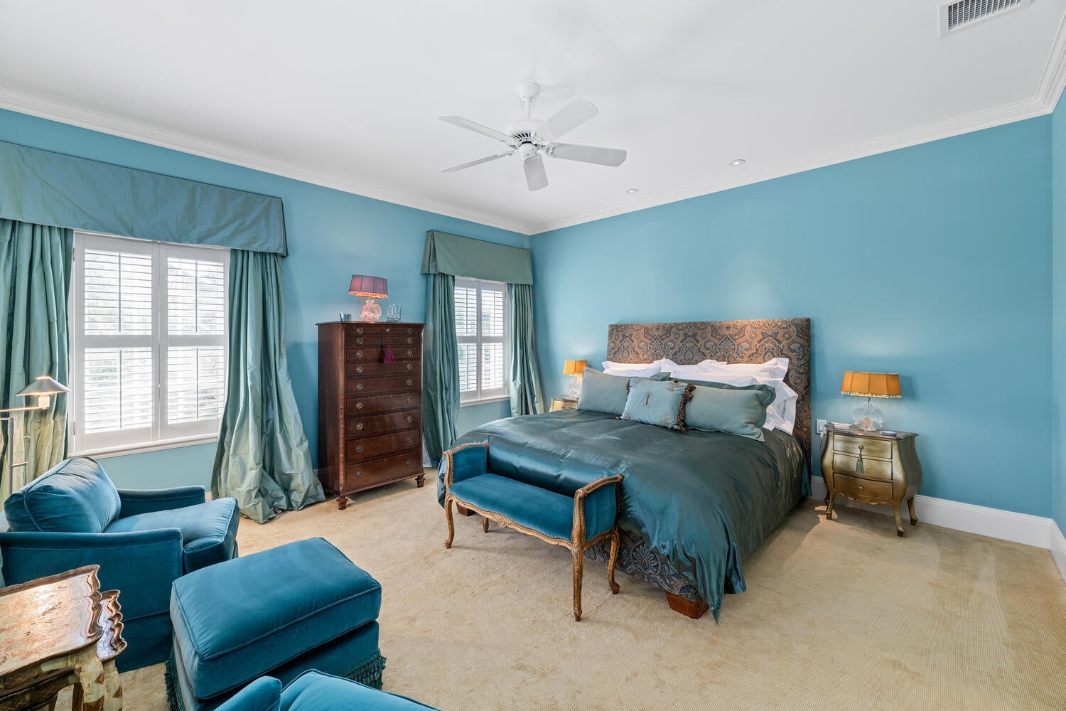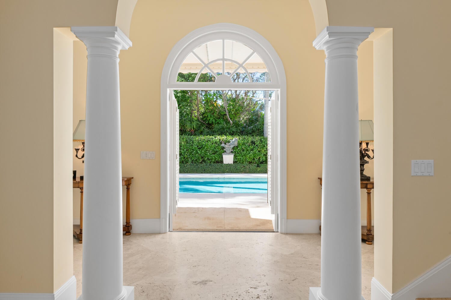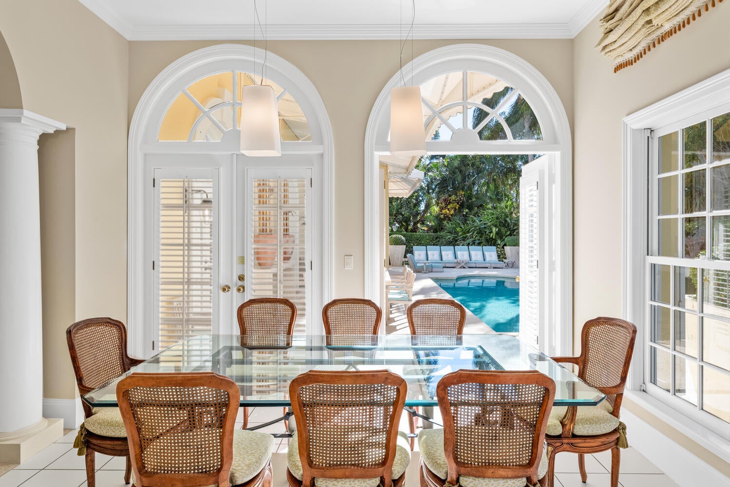 This British Colonial residence offers 6,922+/- total square feet with five bedrooms and six and a half bathrooms. Set on a 100' x 172' lot at the corner of Tangier Avenue and North Lake Way, the property features a large pool, covered loggia, and beautifully maintained grounds.The spacious foyer opens to the formal living room and a central gallery hall that connects the main living areas. The family room, located on the south side, opens through French doors to the covered loggia and pool. On the north side, the gallery leads to the formal dining room, library, and kitchen with adjoining dining area--an ideal layout for both everyday living and entertaining.Two guest bedrooms are located on the first floor, each with en suite baths and walk-in closets--one currently serving as alibrary. Additional first-floor features include a powder room, laundry room, and a two-car garage with separate service drive. Upstairs, the primary suite offers exceptional space and privacy with four walk-in closets, separate his-and-her bathrooms, and ample storage. Two additional guest bedrooms on this level each include en suite baths and walk-in closets. Ideally situated on Palm Beach's North End, the residence is just moments from the Lake Trail, beaches, restaurants, and world-class shopping.