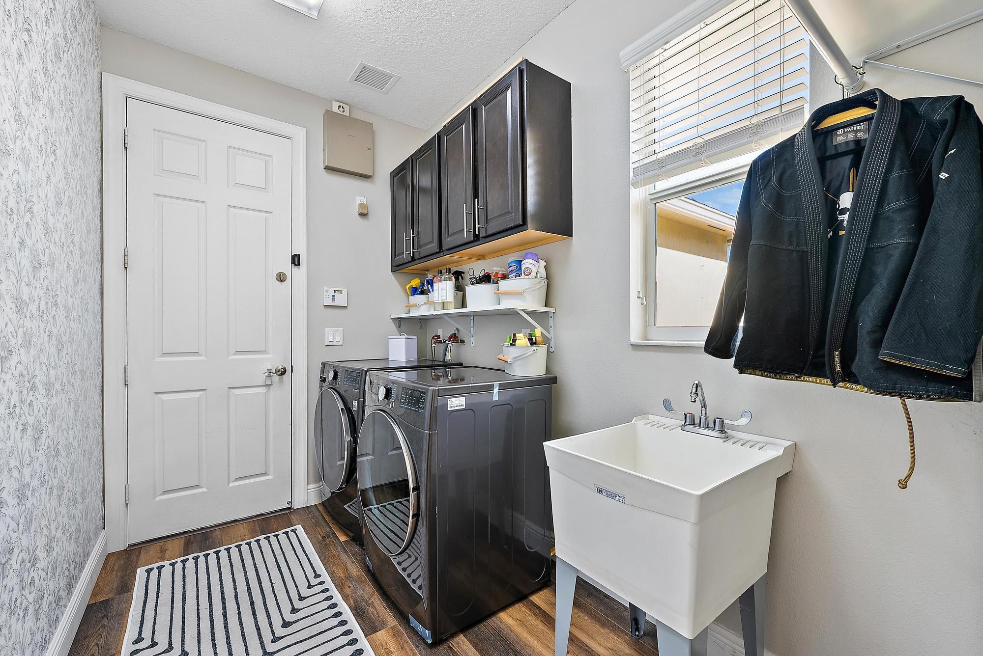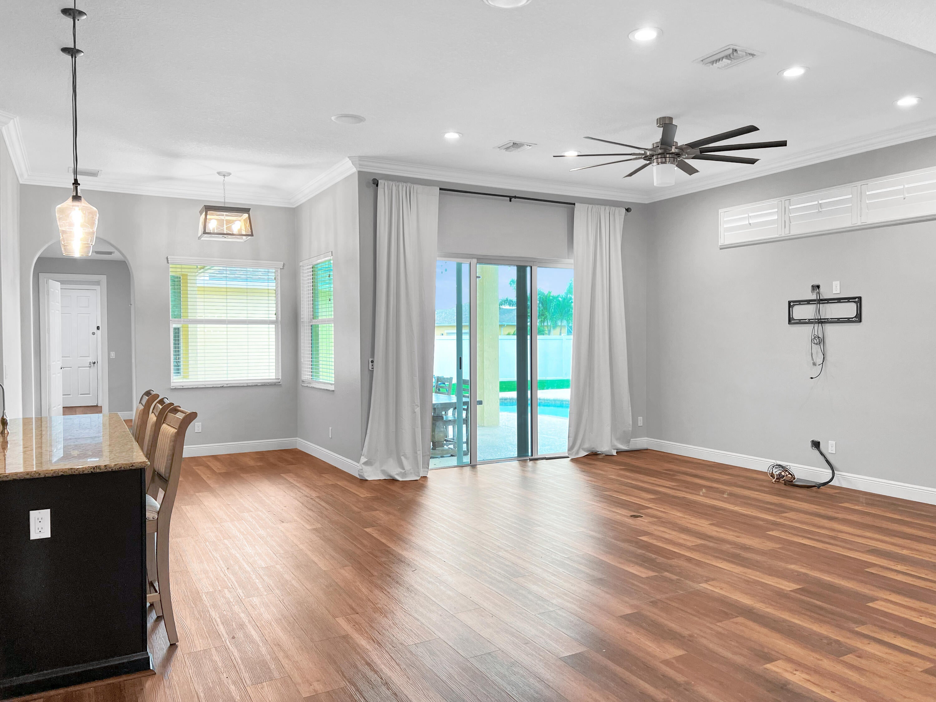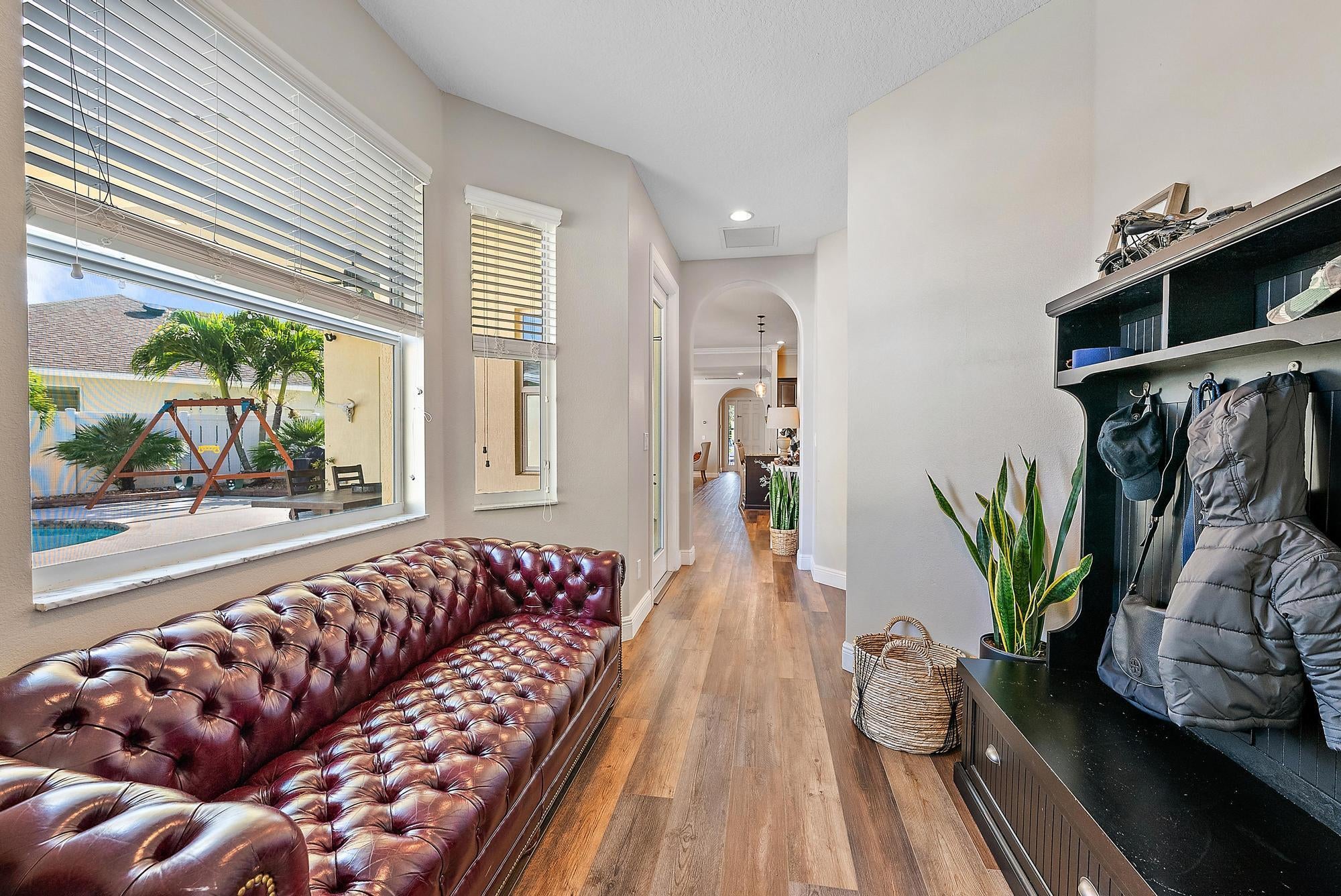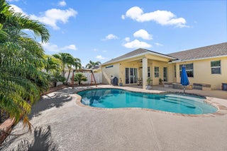 LEASED for one year beginning 6/1/2025. Experience the ultimate resort-style retreat in this 3-bedroom home, with flexible den or extra private bedroom, along with 2 full bathrooms. Features include, Complete impact windows, New luxury vinyl plank (LVP) flooring with 5'' baseboards, Newer appliances, Newer gas cooktop, and Newer LG Thinq front-loading washer and dryer with utility sink. New alkaline water filtration system for pristine drinking water. Updated lighting fixtures throughout. Freshly painted throughout. The primary suite offers a cozy nook perfect for an office, nursery, or reading area. The ensuite features dual sinks, his-and-hers walk-in closets with organizers, and a large custom tiled walk-in shower.Escape to a vacation retreat that's perfect for entertaining or unwinding. A saltwater pool with water fountains, a sun shelf, and solar heated. Newly installed turf for a maintenance-free lawn. A covered patio with a custom-built gas fire pit and stone seating. This expansive backyard has space for a potential summer kitchen, and additional cabana bathroom and potential tiki bar complete with a gas hookup. The three car garage features a built out attic for additional storage and an additional 3 feet added to driveway pavers on each side for plenty of room for large trucks and toys. This home and community has precedence with Primrose private school that is walking distance from the home. Located just a short walk to Tradition Square, you'll enjoy a vibrant lifestyle with excellent dining, shopping, and recreation options. With easy access to I-95 and the Cleveland Clinic, this home offers unmatched convenience. The HOA fee at Bedford Park includes community pool, landscaping, pest control, lawn maintenance, cable, high-speed internet. Tradition's cheerful Town Center reimagines small town living with fresh, modern amenities and experiences without sacrificing nostalgic charm and close-knit community - where residents can start a new life chapter filled with opportunities to learn, grow, and create new memories. This area creates a natural community hub for residents to meet and socialize, where events like a weekly farmers market invite one and all to gather. An adjacent amphitheater brings an entertainment venue to Tradition for year-round community enjoyment of performances such as concerts, theater, dance, comedy, and more.