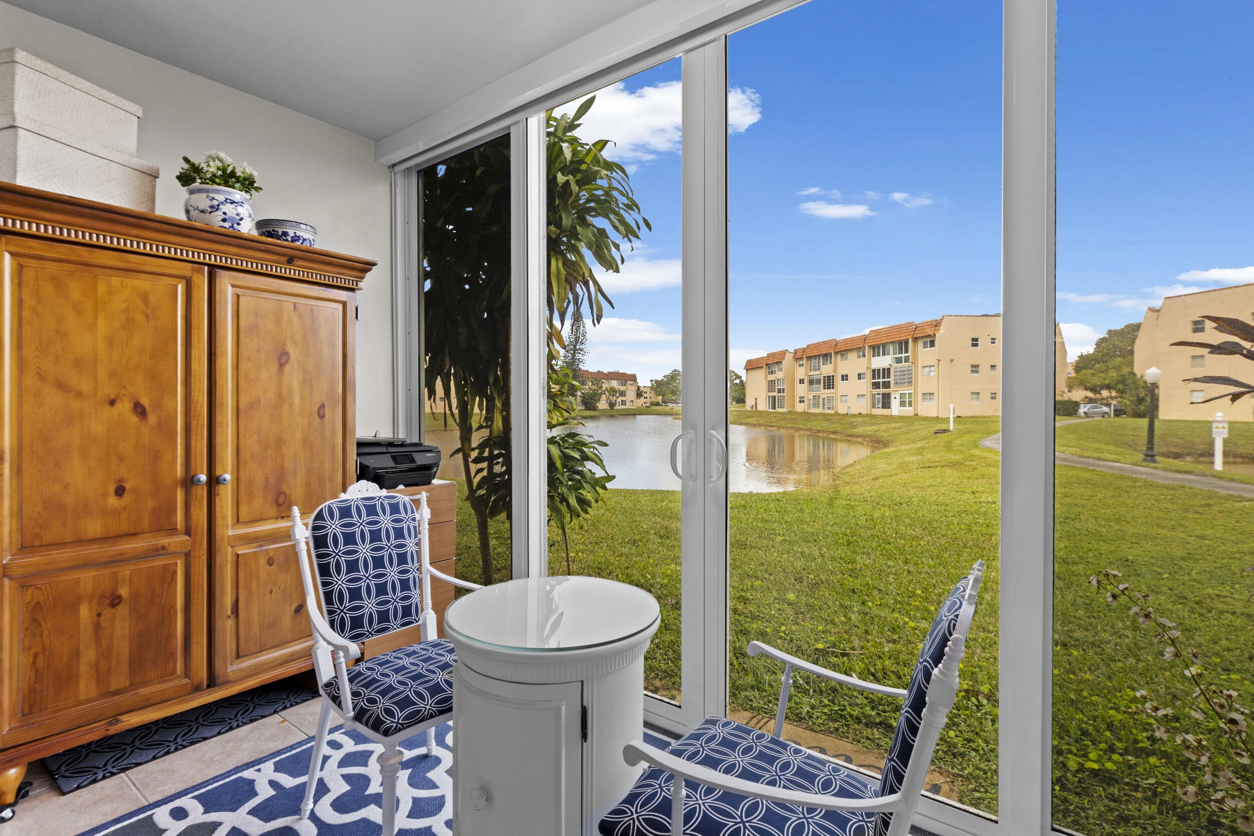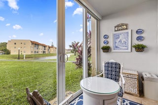Over $40,000 in upgrades! Enjoy this RENOVATED OPEN CONCEPT , 1st FLOOR & CORNER condo with DOUBLE LAKE views and FULL IMPACT WINDOWS w/ premium & motorized blinds. This 2 bedroom, 2 bath has 2 large closets. The expanded kitchen has white shaker wood cabinets, S/S appliances and stunning white quartz countertops with room for a small eat in area. Relax on the SUNNY PATIO and take in the peaceful water views. Just 12 miles to the beach and near the Sawgrass Mall. Close distance to the satellite pool, tennis & pickleball courts. Parking #28 is in front of unit+ storage in 3rd floor. The main clubhouse has theater, pool, gym, tennis, BBQ area, clubs, activities & more. ALL RESIDENTS & OCCUPANTS IN THIS PHASE 3/BLDG #78 MUST BE OVER 55+.