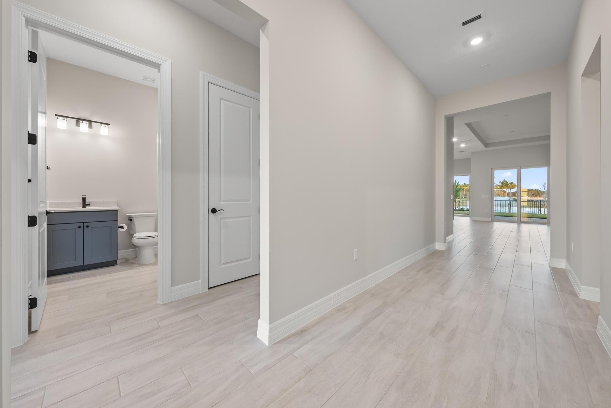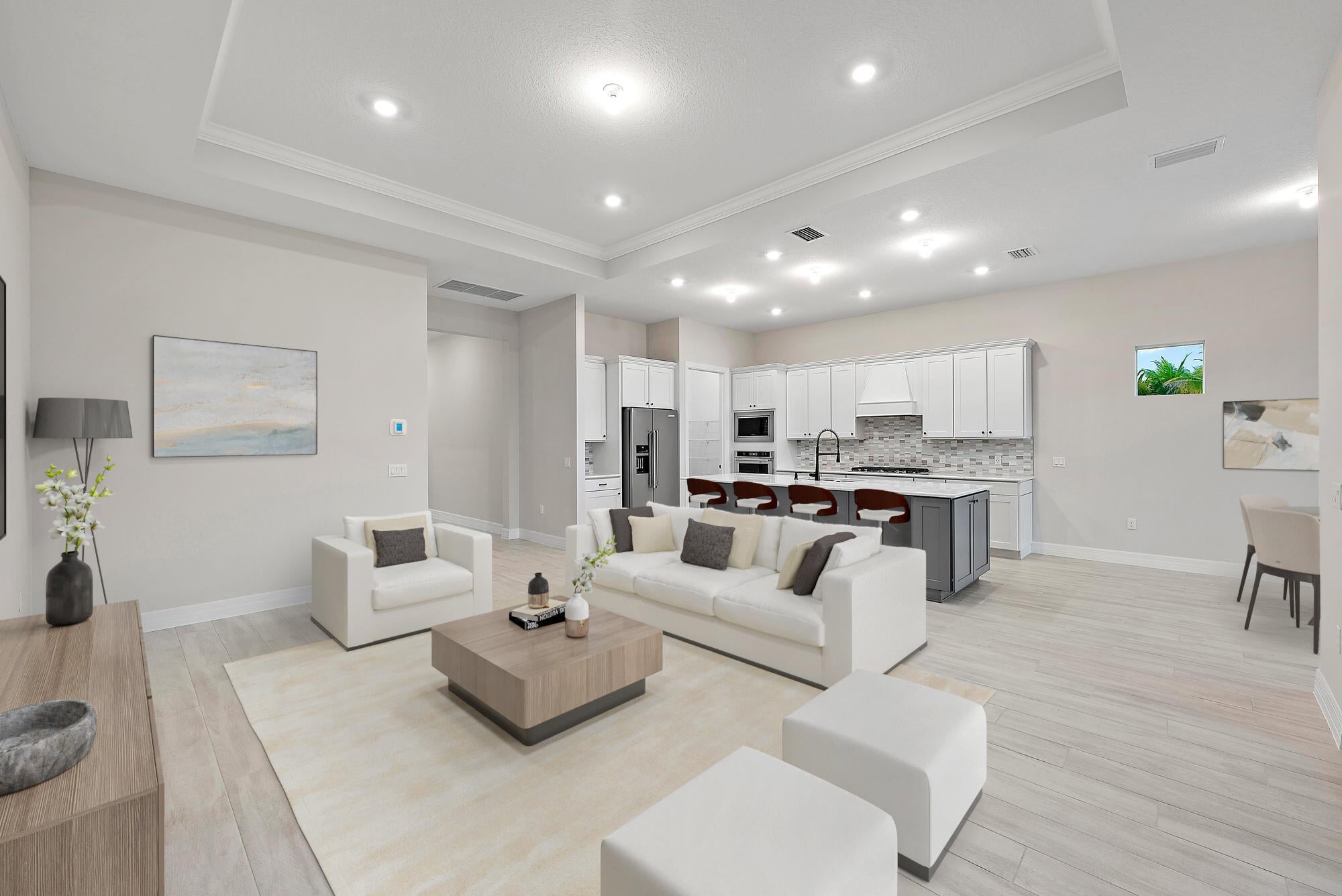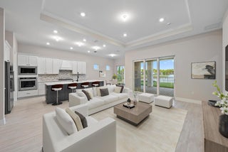 EXQUISITE, brand-new, never-been-lived-in single-family 3-bedroom, 2.5-bathroom home located in the highly sought-after gated community of Avondale at Avenir in Palm Beach Gardens. Built in 2024 by DiVosta, this stunning residence offers over 2,000 square feet of living space, featuring a premium $150,000 lot with scenic lake and fountain views, a desirable open-concept floor plan, soaring ceilings, impact windows, and a state-of-the-art kitchen with top-tier finishes. With $150,000 in luxurious upgrades throughout, this home is the epitome of contemporary living and design.Upon entering, you'll be greeted by tile flooring throughout and LED lighting, enhancing the home's modern aesthetic. The spacious living area flows seamlessly into the chef's kitchen,which boasts white quartzite countertops, a large kitchen island perfect for entertaining, a decorative tile backsplash, stainless steel appliances, and a gas stove, making it ideal for any culinary expert. The expansive primary bedroom offers a huge layout with two walk-in closets and views of the tranquil surroundings. The large primary bathroom is designed for maximum comfort and functionality, featuring double vanities with white quartzite countertops, a frameless shower with floor-to-ceiling tile, and modern finishes throughout. The two additional bedrooms are equally well-appointed, ideal for family members or guests, while the second bathroom and powder room are tastefully designed with modern touches. The outdoor living space beautifully complements the home's interior, offering a perfect setting for both relaxation and entertaining. With lake views as a backdrop, you can enjoy alfresco dining or simply take in the surrounding natural beauty. Set on a generous-sized pie-shaped lot, there's ample room for a pool, allowing for endless opportunities to create your dream outdoor oasis. The community offers an array of resort-style amenities, including a newly built clubhouse with a cutting-edge fitness center, tennis and pickleball courts, and daily exercise classes. Families will appreciate the kid's playroom, two covered children's playgrounds, and a children's splash park. Relax by the two heated poolsa lap pool and a spacious tropical poolor unwind in the spa/hot tub. Additionally, a new Town Center is currently being built, which will feature restaurants and shoppes, enhancing the neighborhood's appeal. For the golf enthusiast, this home is perfectly situated near some of the area's top courses. It offers close proximity to the renowned Panther National Golf Course, as well as Sandhill Crane and PGA National Golf Courses. Sandhill Crane recently completed an exciting new par-3 expansion and a two-story driving range known as The Nest, providing a state-of-the-art golfing experience. They also offer convenient poolside delivery for lunch at the community pool. Beyond golf, this location provides easy access to fine dining and shopping in Palm Beach Gardens, Jupiter, and Palm Beach. Florida's crystal blue waters and white sandy beaches are just a short distance away, and Palm Beach International Airport is only a quick 20-minute ride, ensuring unparalleled convenience. Don't miss the chance to see this exceptional home in personschedule your private tour today and experience the finest in new construction and modern design!