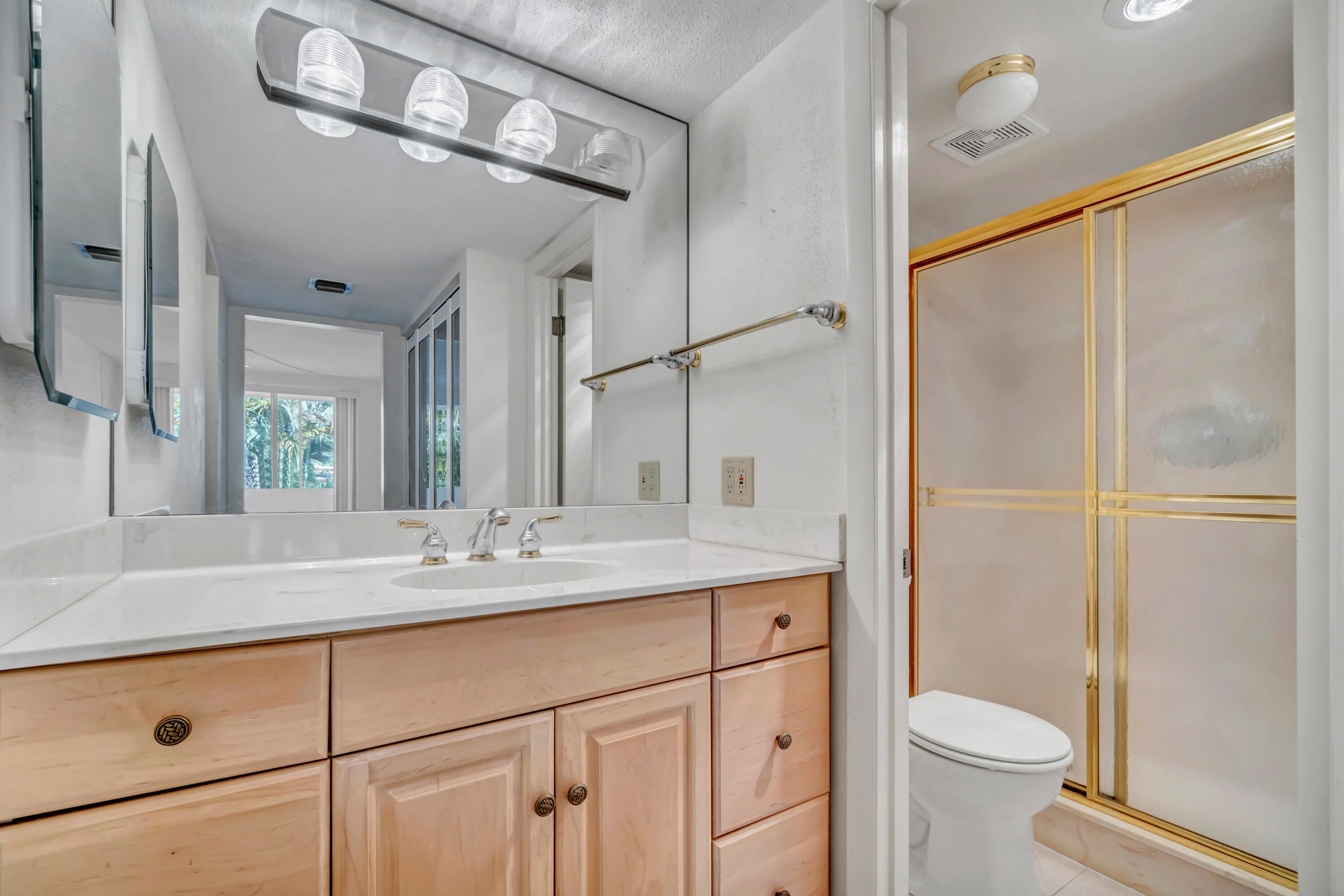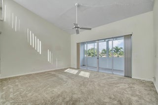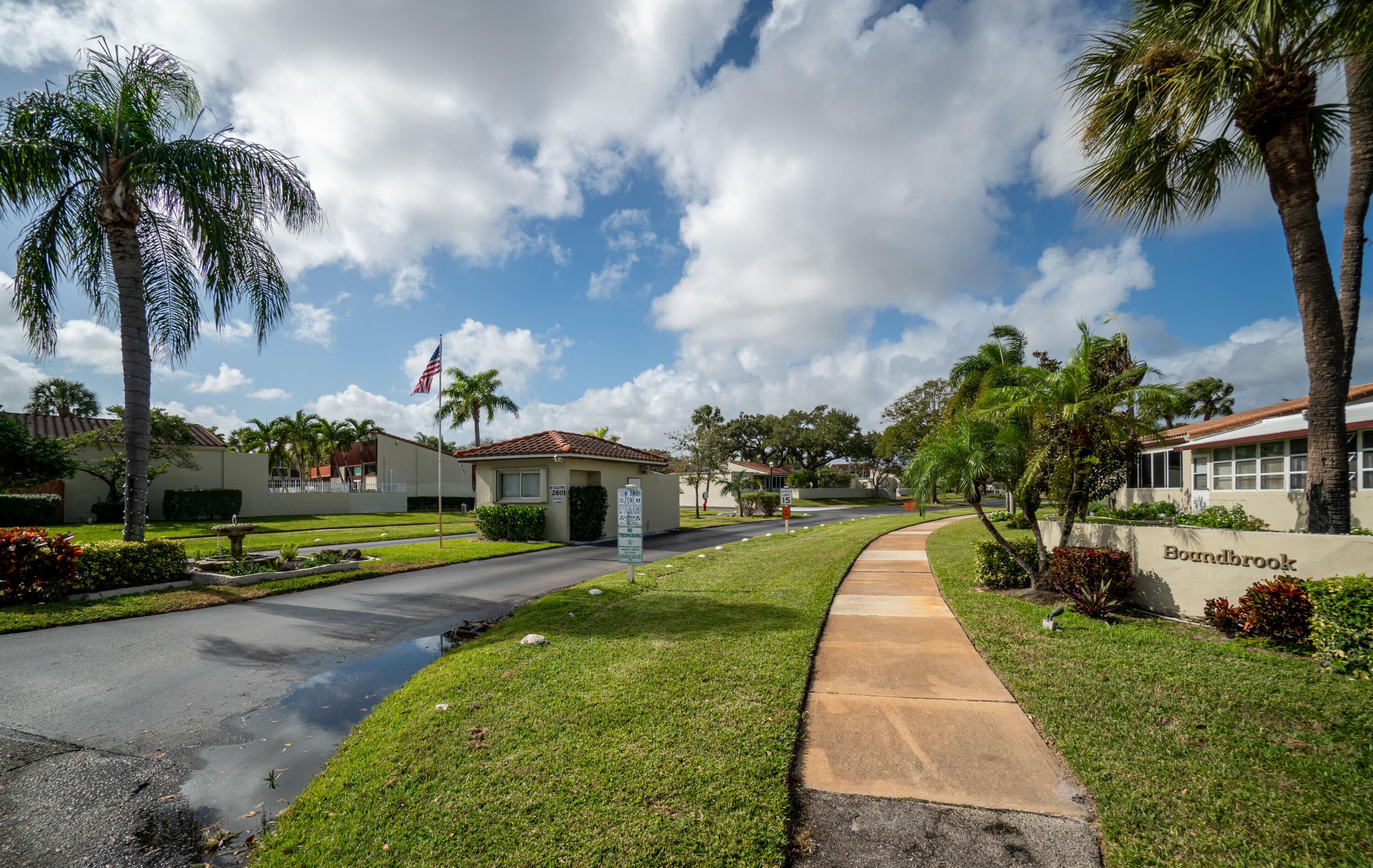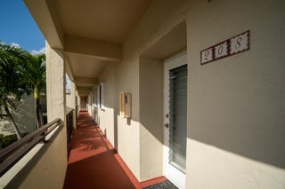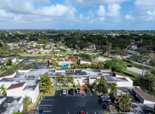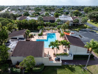 The View! The View! The View!. This second floor until has the best view of the pool. Every room has access to the weathered in patio. All back sliders have hurricane accordian shutters. All other windows are hurricane impact. Newer kitchen with white appliances offers all the space one could need. The dining room opens to the TV room with newer carpet. Large Primary Bedroom has ensuite bathroom with raised vanity and separate toilet room. The large walk in closet and additional oversized linen closet offer great storage. The secondary bathroom has also been recently updated.Boundbrook is conveniently located to everything you need. Publix, Aldis, Walmart and Restaurants (Mexican, Flanighans, Chilis) are about a mile away. The Main Post Office and I-95 are just a few miles down the street. This unit also has Palm Springs water which is one of the best in the area.