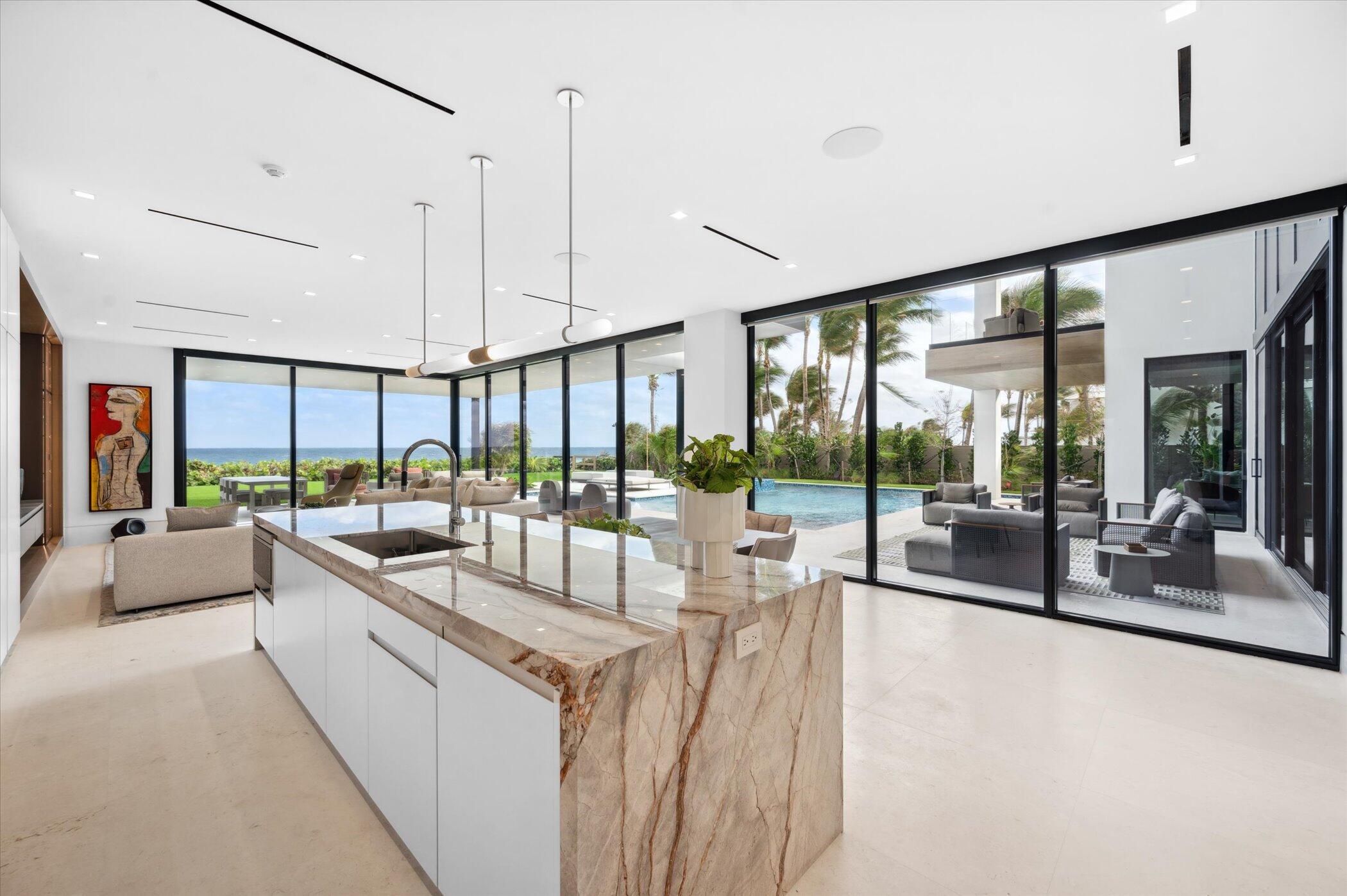 Experience the pinnacle of luxury living in this exceptional, MOVE-IN-READY residence that blends sophisticated design with cutting-edge features. This turnkey property offers an unmatched lifestyle, with breathtaking panoramic views of both the private ocean and Intracoastal waters surrounding the entire estate. Wake up each day to a serene waterfront horizon in a home that truly defines elegance and exclusivity. This brand new built home is being sold TURN-KEY, so simply bring your clothes and personal items. 999 Hillsboro is built like a fortress using the latest building code with waterproofed concrete exterior and hurricane resistant impact doors/windows. The matching porcelain exterior complements the 74-foot lap saltwater pool, making this home not just a place to live, but aWith nine AC units and a full-house generator, comfort is guaranteed year-round. The lavish kitchen, featuring white roots marble and Neff cabinets, is a culinary dream, while the D'kor custom furniture and oak hardwood floors elevate the aesthetic to new heights. Enjoy seamless control over your environment with Lutron surround AV system lighting and Savant app technology for music, doorbell, and security cameras. This home boasts an impressive 8-car garage (located on the first floor) with a custom vehicle turntable, a private "commercial grade" elevator connecting all four floors, and a 100-foot dock with 3-phase power. This property is ideal for boating enthusiasts eager to explore the Atlantic Ocean or venture to the Bahamas. With the Hillsboro Inlet being just minutes away, enjoy the crystal blue water incoming tide. Not to forget, this lot is located on a NO WAKE ZONE! With breathtaking views of Florida's magical sunrises and sunsets, this property is truly one of a kind and rarely available. Don't miss out on this once-in-a-lifetime opportunity to own a home (Turn-Key) that stands alone in the market. Experience luxury living at its finest