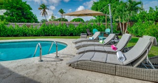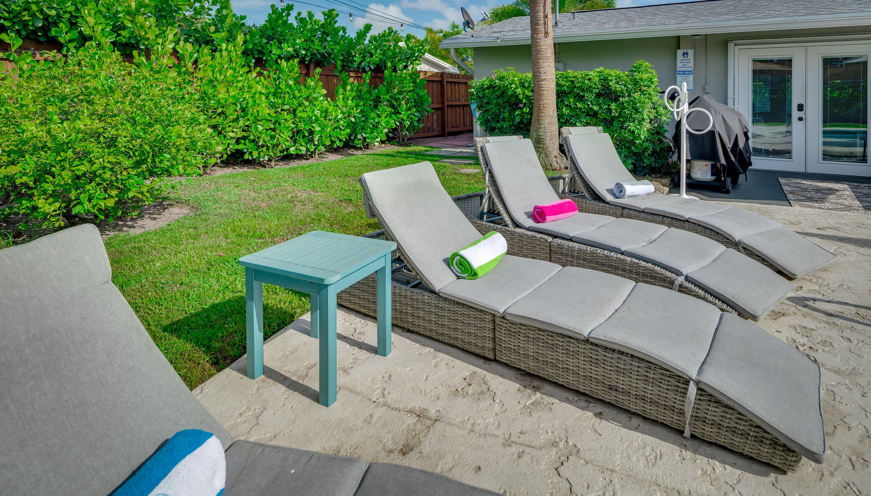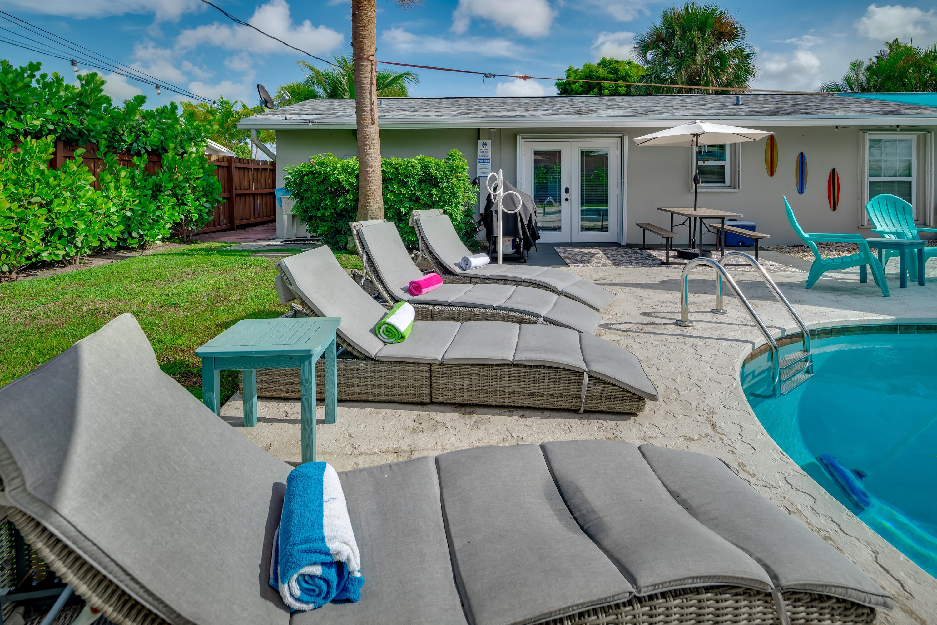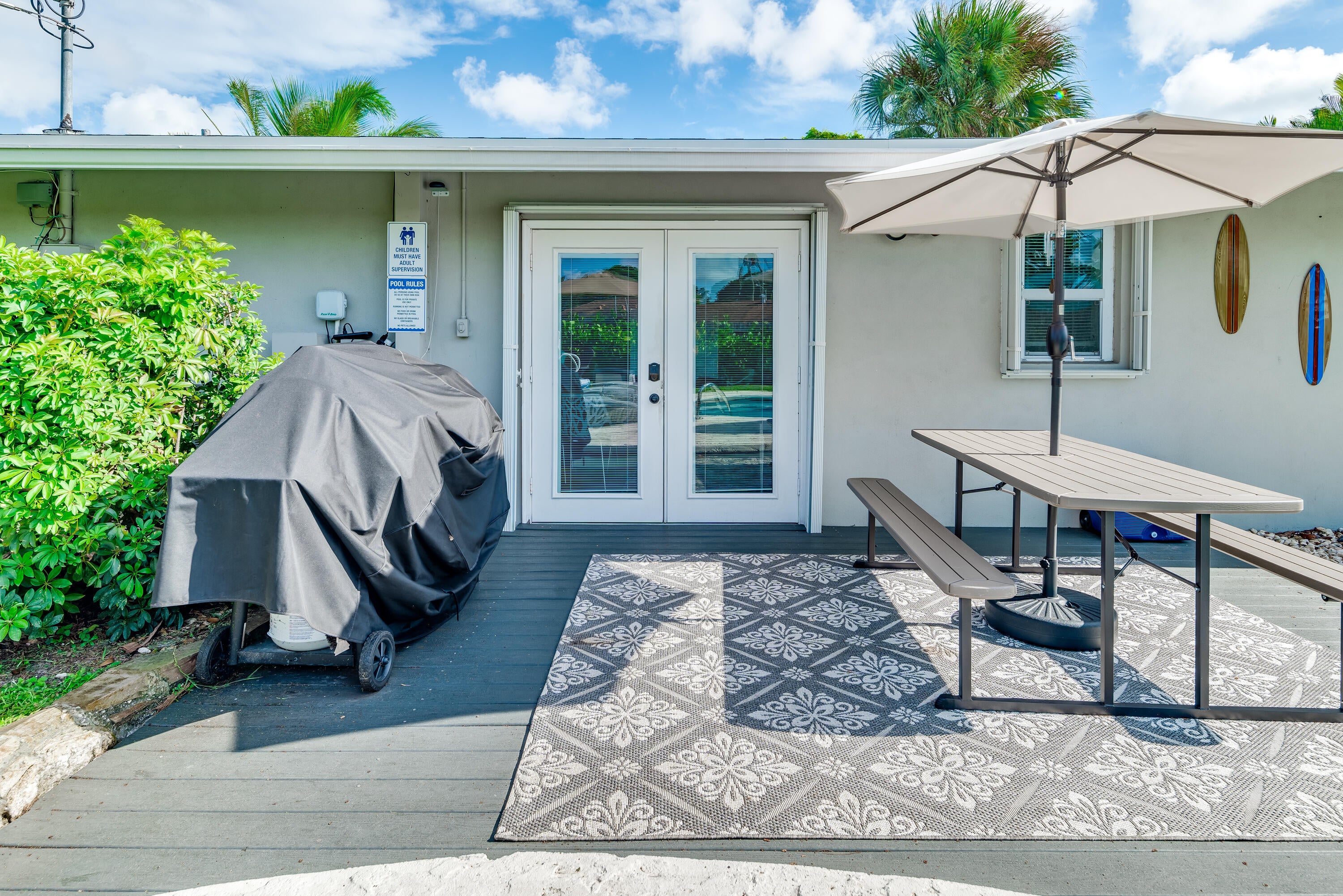 Beautiful 3BR/2BA weekly/monthly vacation & corporate rental in Palm Beach Gardens, just minutes from beaches, golf, dining, and shopping. Recently remodeled with cozy living room, fully equipped kitchen with stainless steel appliances, dining area, and washer/dryer. Sleeps 6-8: king suite, queen room, and full-over-full bunk beds. Private backyard oasis features a gorgeous saltwater pool, lounge chairs and outdoor dining seating, firepit, and large gas/charcoal grill--perfect for outdoor entertaining. Utilities include cable, high-speed Wi-Fi, and Tesla charger. Available Oct 12-23, Nov 19-Dec 25, Dec 30-Jan 2 & Apr-June. Ask about special rates!!