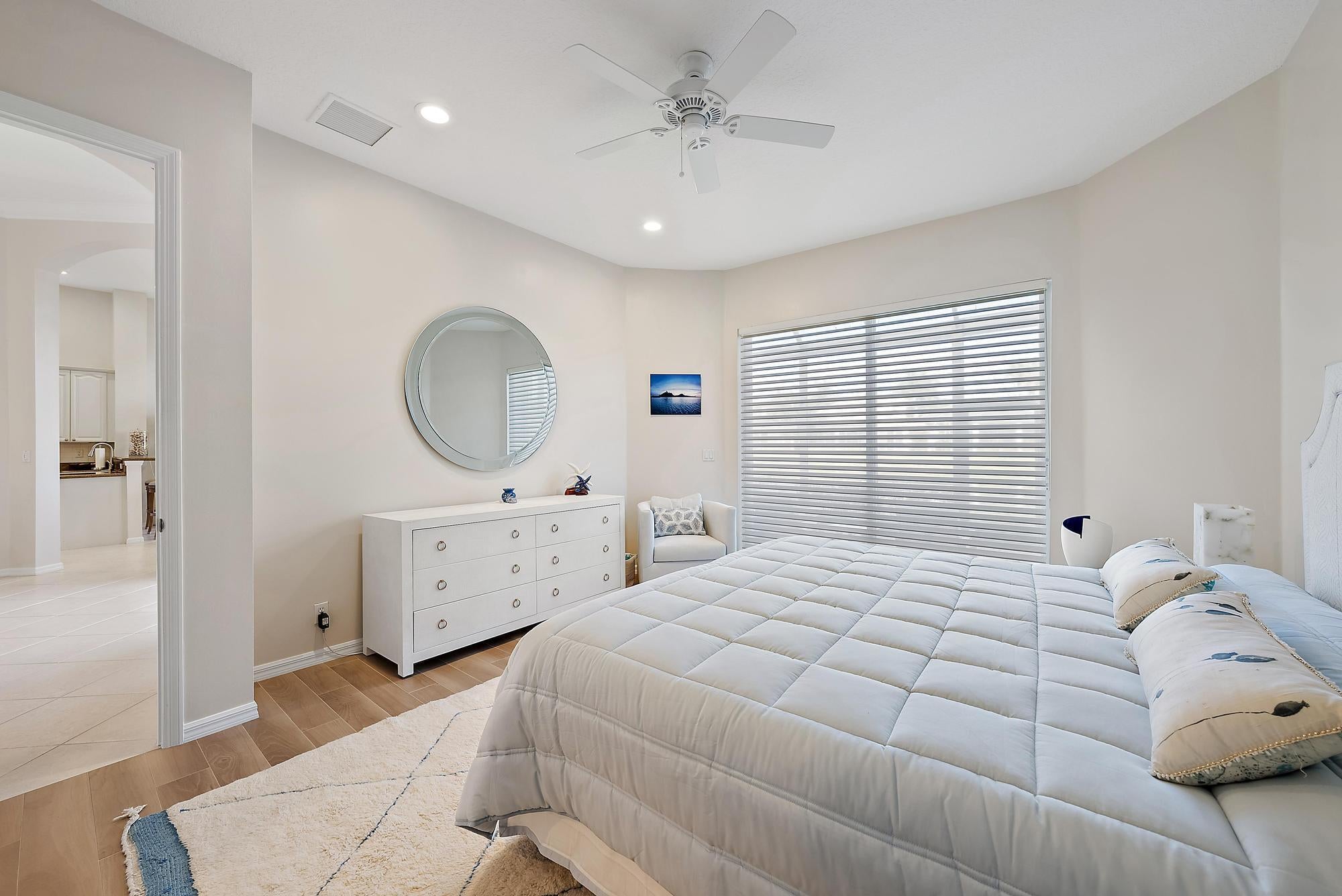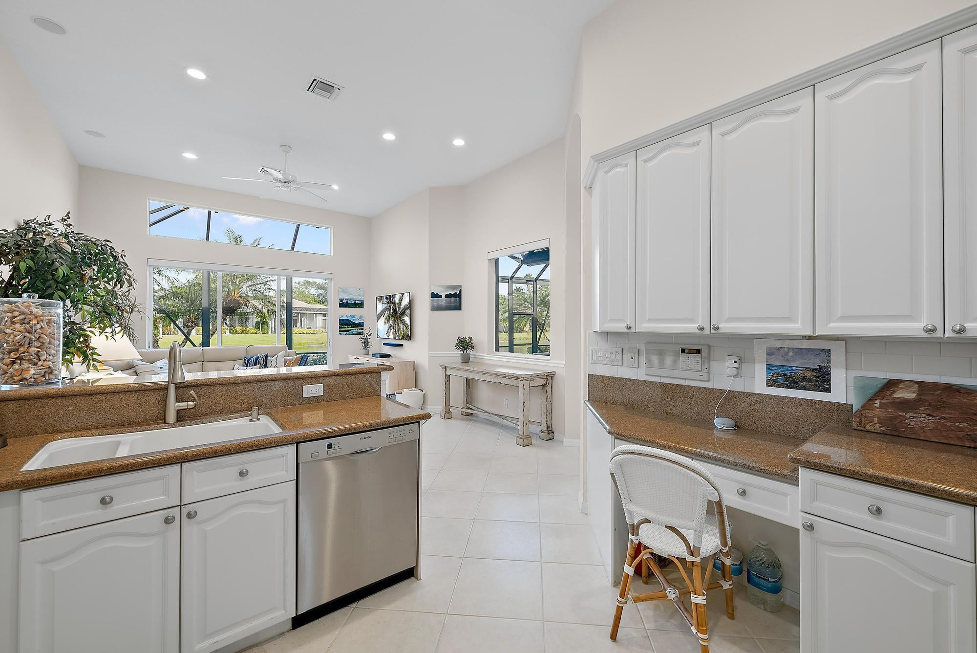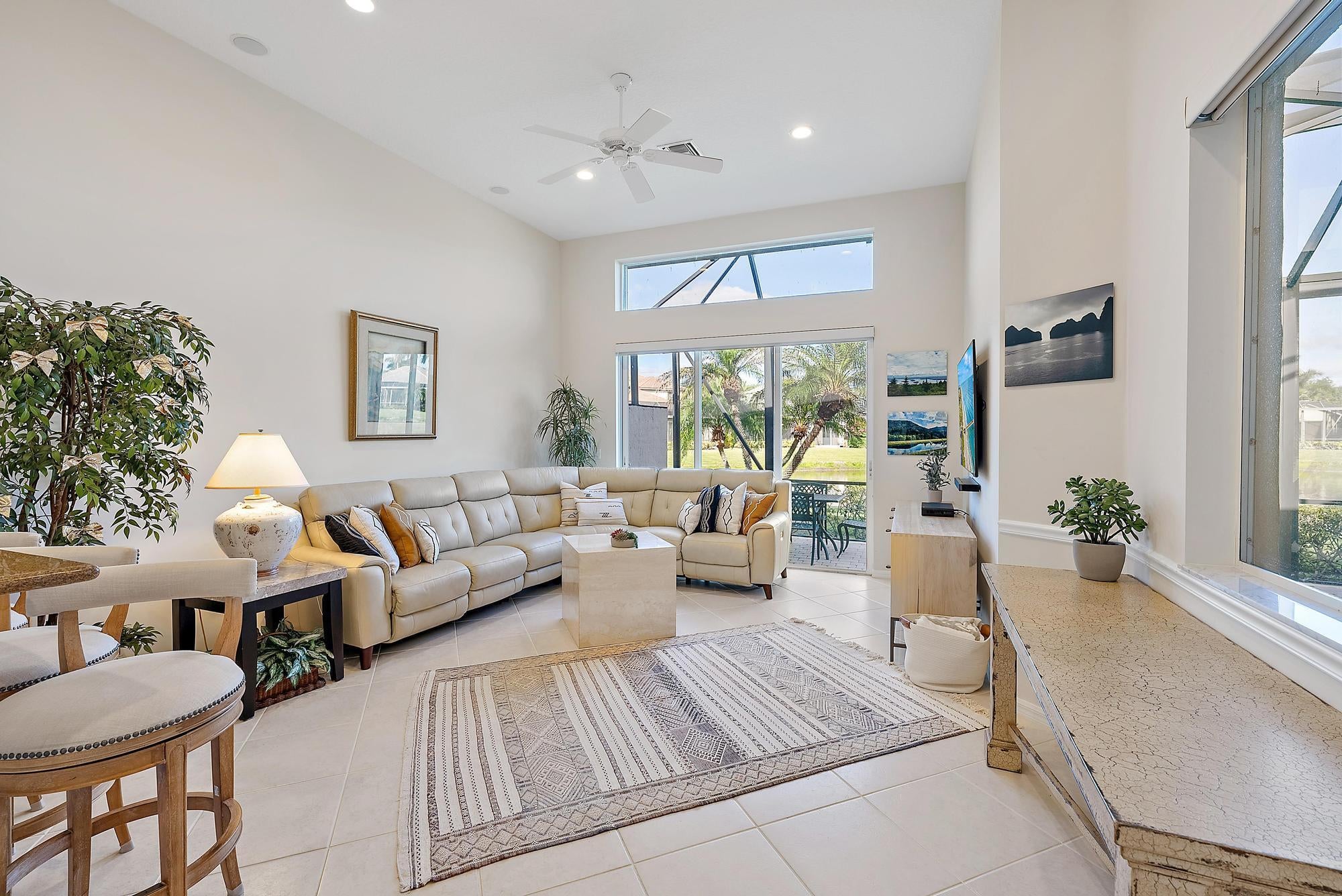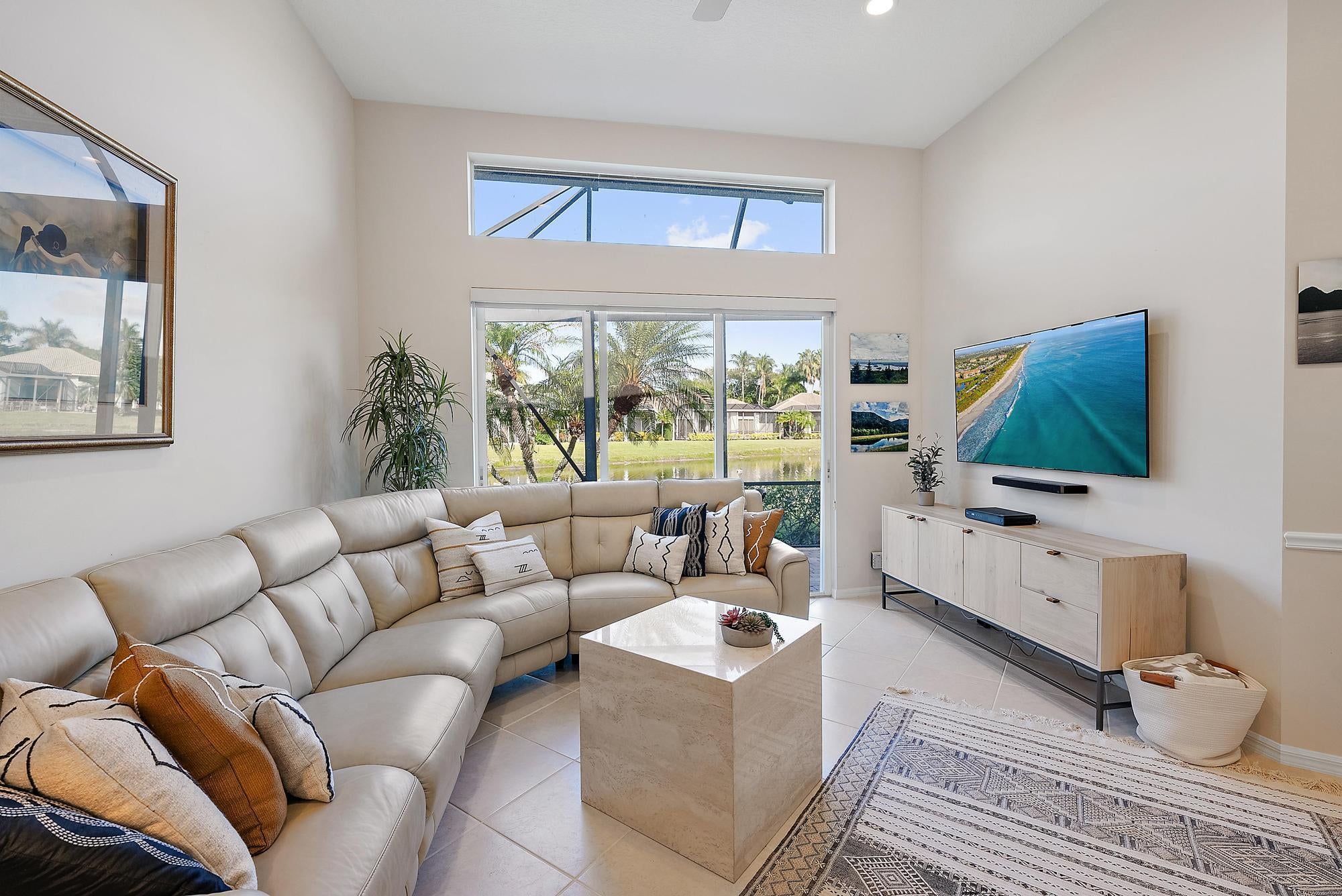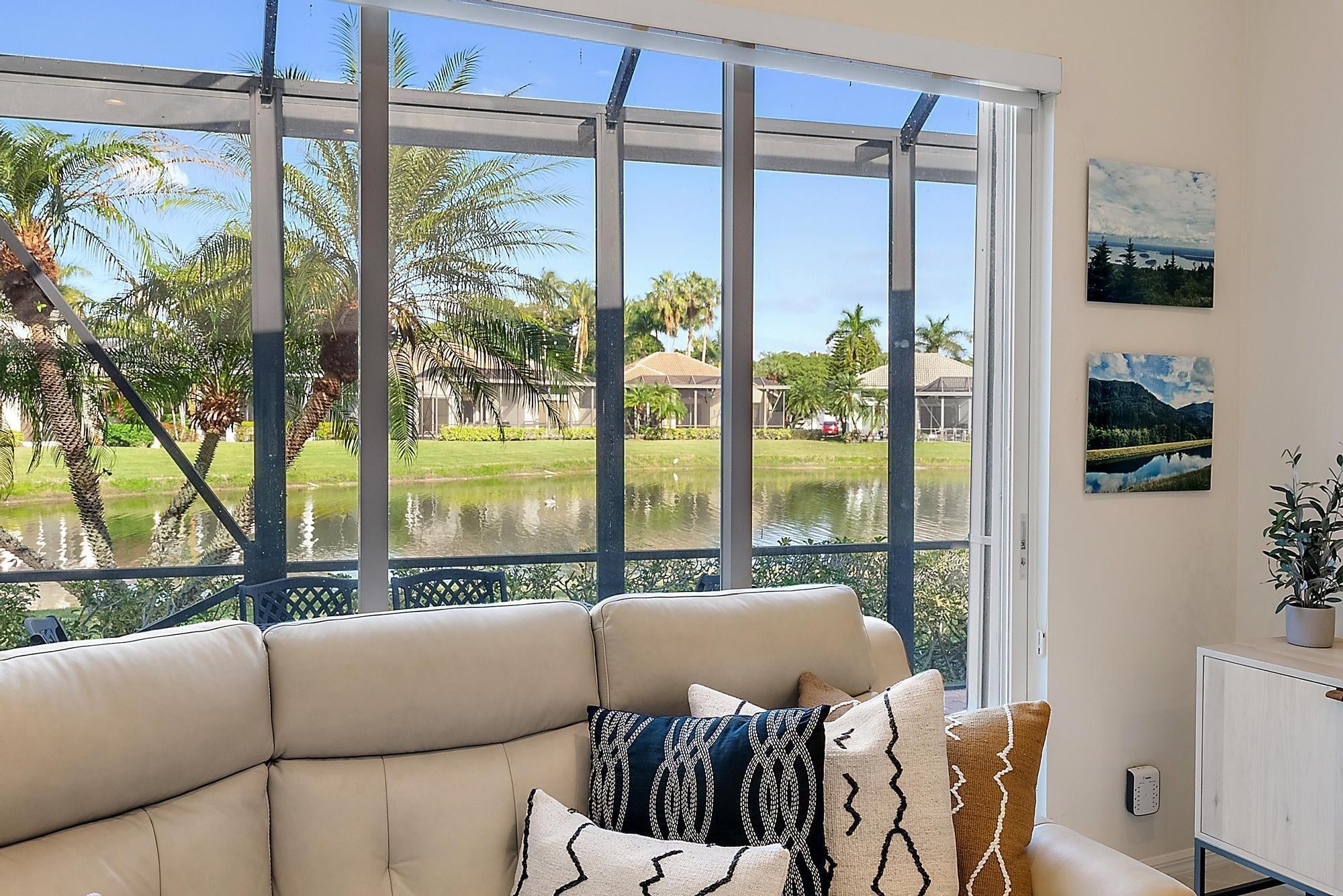 BRAND NEW 2025 ROOF! With 50 FEET OF WATER FRONTAGE, this 3BR/2.5BA upgraded home expands beautifully to the outdoors. Enjoy serene water views from this 2200 SF single-family home. The popular Hamilton floor plan offers soaring ceilings, and generous space. Accordian shutters and Impact Glass double front doors provide ample hurricane protection. Light, bright, and neutral, this immaculate home boasts a redone primary bath, upgraded kitchen with stainless appliances, granite counters, and elegant subway tile backsplash. The large screened enclosure provides fabulous outdoor living space, overlooking the premium lake view. Many upgrades throughout the property:Garage storage units with shelving, Water heater replaced in 2022, High Boy commodes, designer light fixtures and window treatments, built-in desk in third bedroom, closet built-ins, replaced flooring in primary and guest bedroom, frameless shower doors, new garbage disposal (2024), and more! The Club at Ibis is a Platinum Club of America community that boasts a 90,000 sq. ft. clubhouse, three 18-hole Nicklaus-family Championship golf courses, five restaurants, a world-class fitness complex and spa, and incredible tennis and pickleball facility.