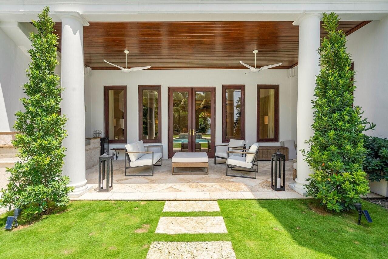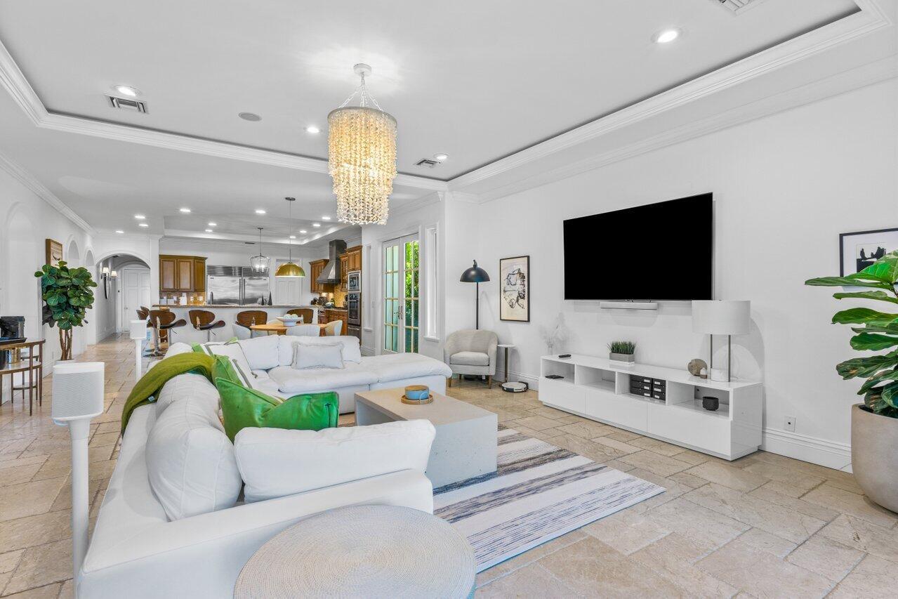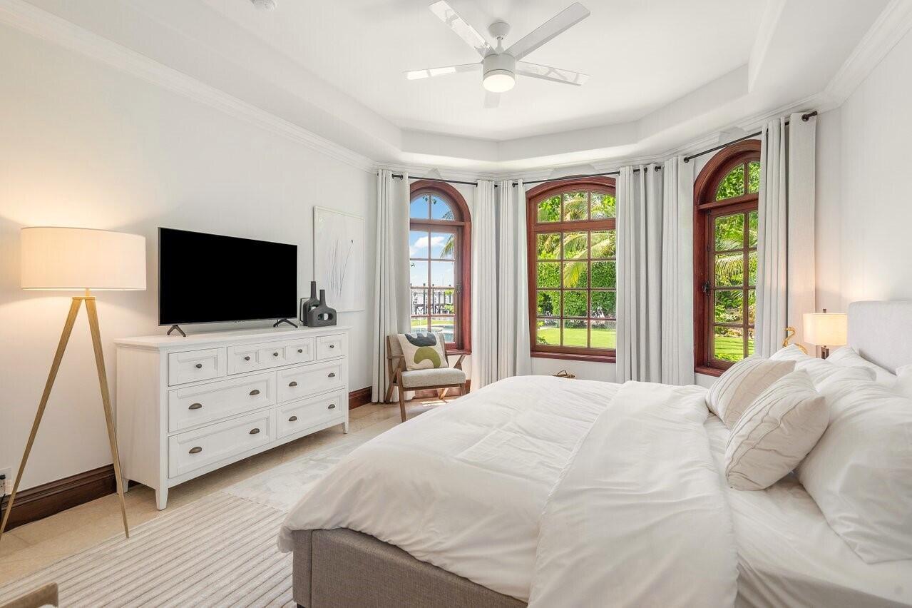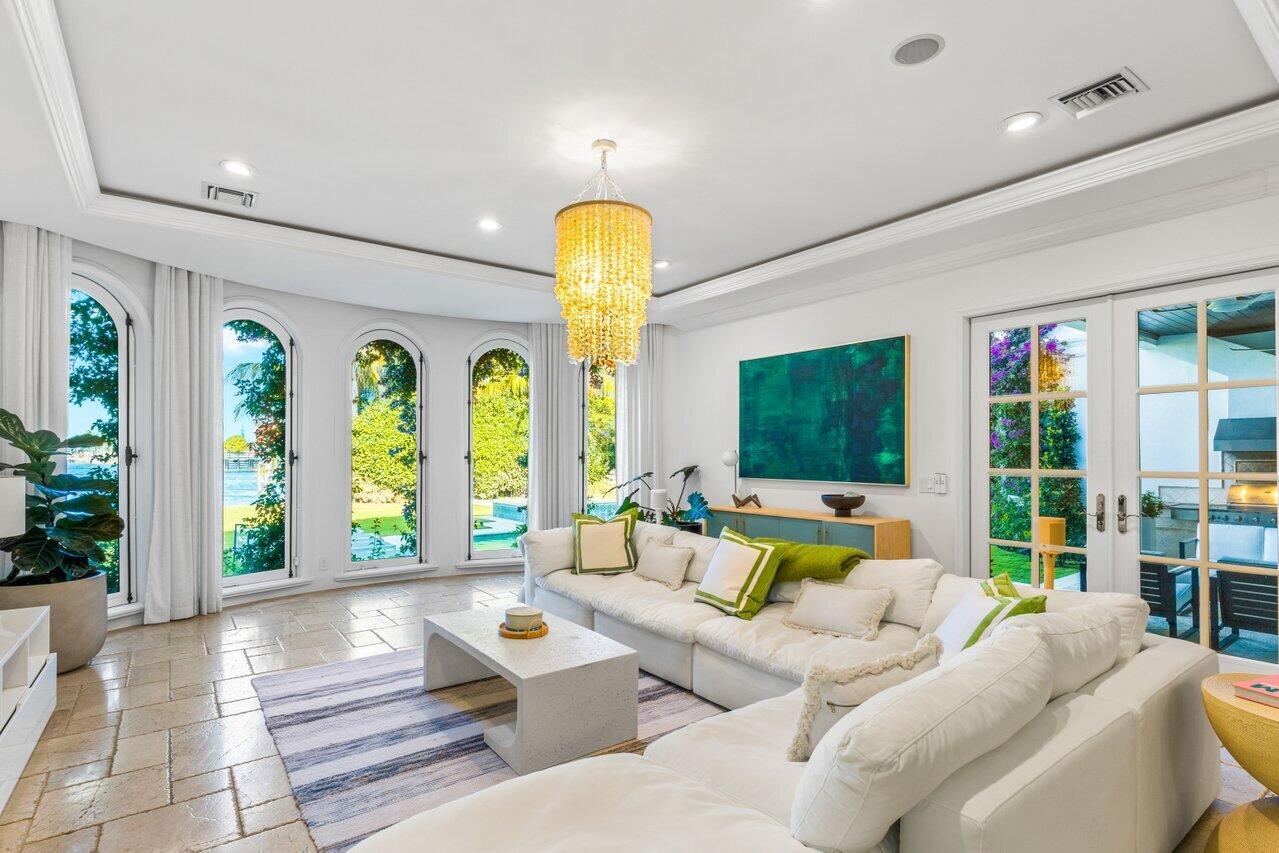 Exquisite Tuscan-Style Waterfront Estate with Private Beach and just a block away from the ocean! This Hypoluxo Island estate comes fully furnished and occupies a large 18,731 SF lot and features 6,000 SF of interior living space that includes 6 Bedrooms and 5.5 Bathrooms. The brick-paved entryway through electric wrought iron gates leads to the 3-car garage and the pillared front doorway into the home. Step into another time and place with magnificent entry featuring a spectacular spiral staircase, marble floors, and ceilings capped with a custom mosaic dome. You'll love the charm of the fireplace that graces the living room as well as having the area bathed in natural light from the beautiful west facing windows and doors that provide peaceful views of the Coastal waters.
