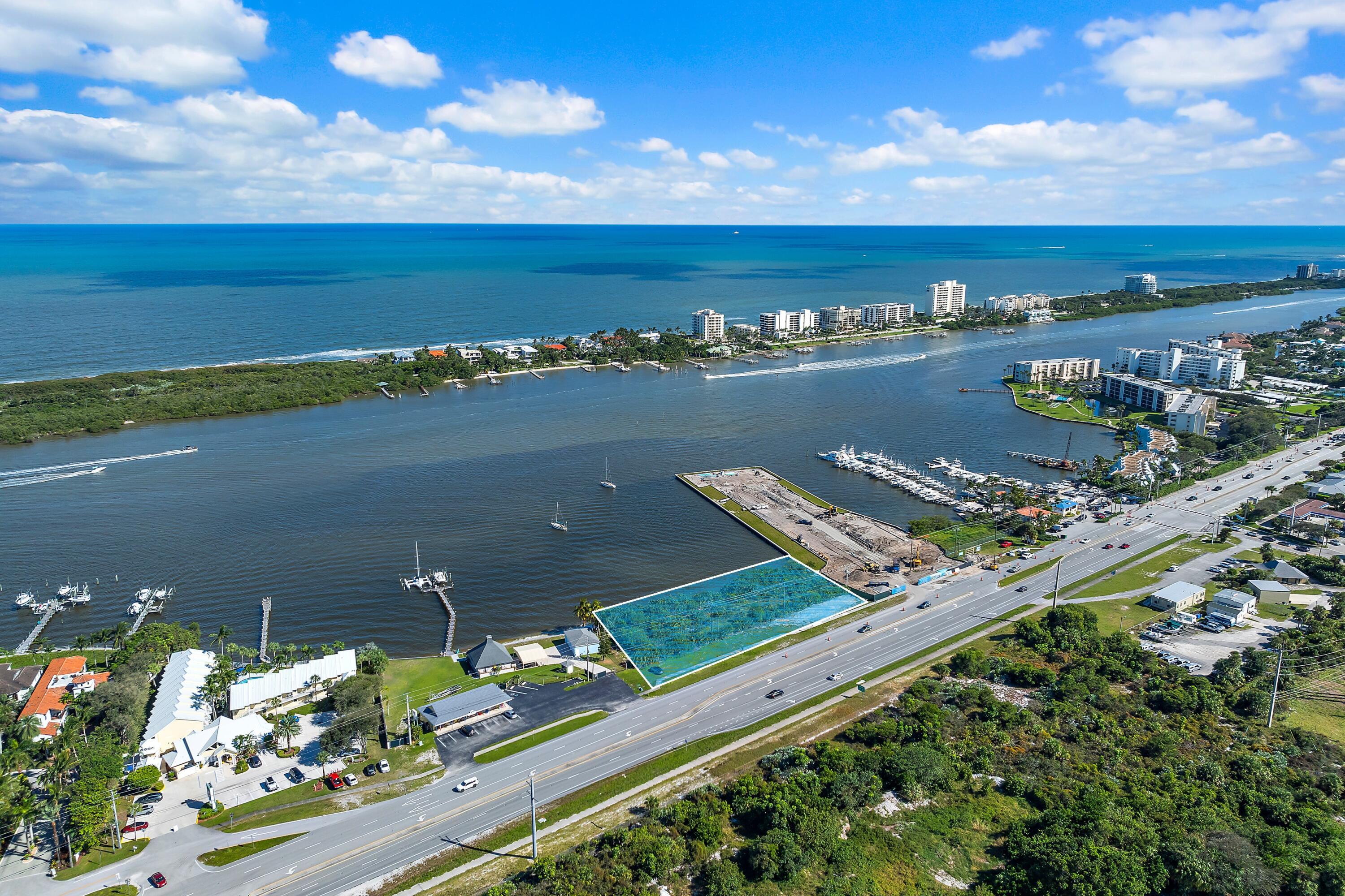 Enjoy the shimmering turquoise waters as your backdrop. Almost ONE ACRE of waterfront property is available in coveted Jupiter Florida. Build your expansive dream home or private retreat and settle into the relaxed upscale vibe. Just across from Jupiter Hills Golf Club and close to sandy beaches, the Jupiter Inlet, waterfront dining, boutiques, and natural splendor. This location offers both convenience and charm. Design-phase dock plan features 2 docks (4 slips) max. Plan has not gone through the permitting process. Additional options possible as parcel is zoned R-3A w/ Future Land Use Waterfront Commercial. All information provided is deemed reliable but not guaranteed; Buyer is advised to verify all details independently.