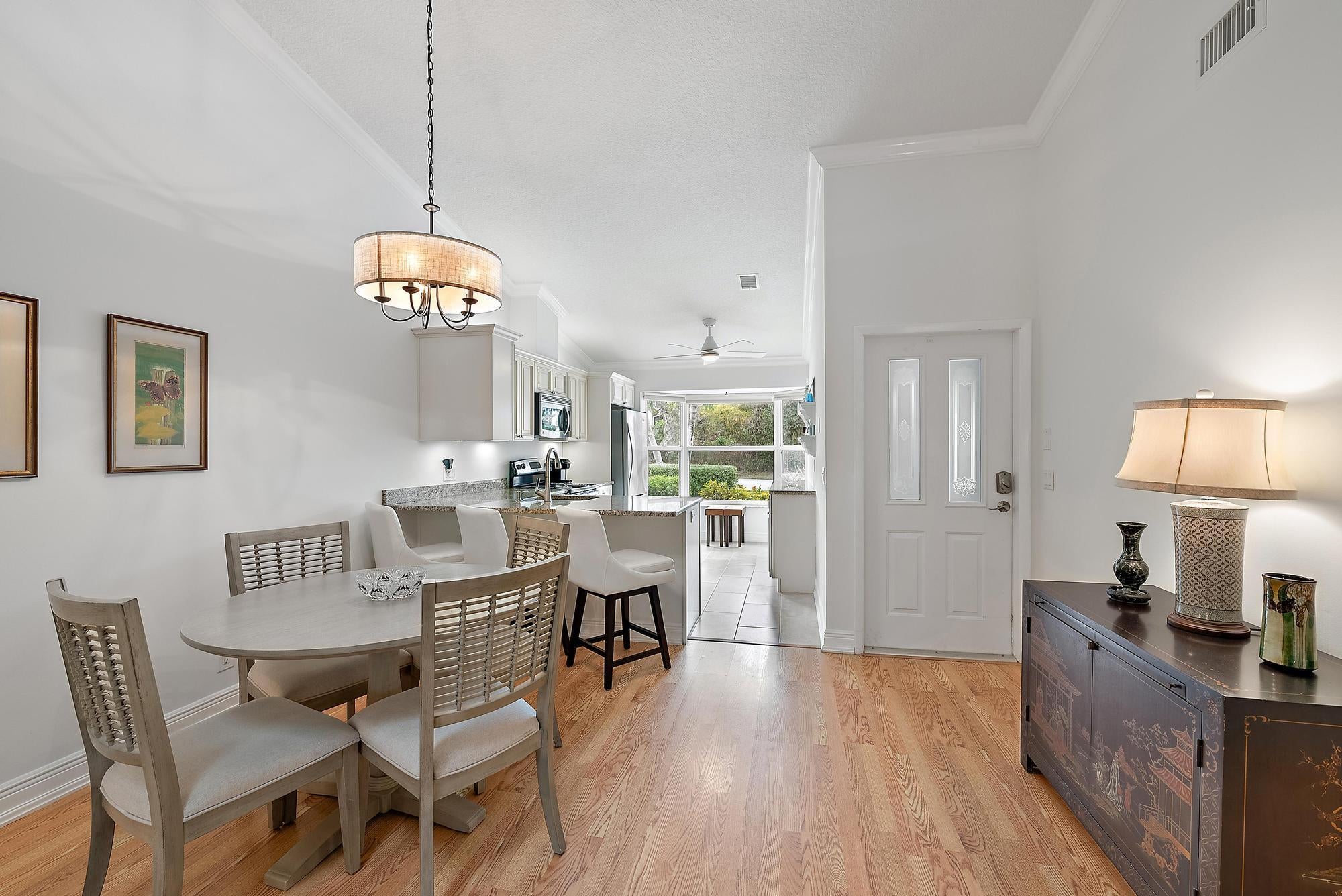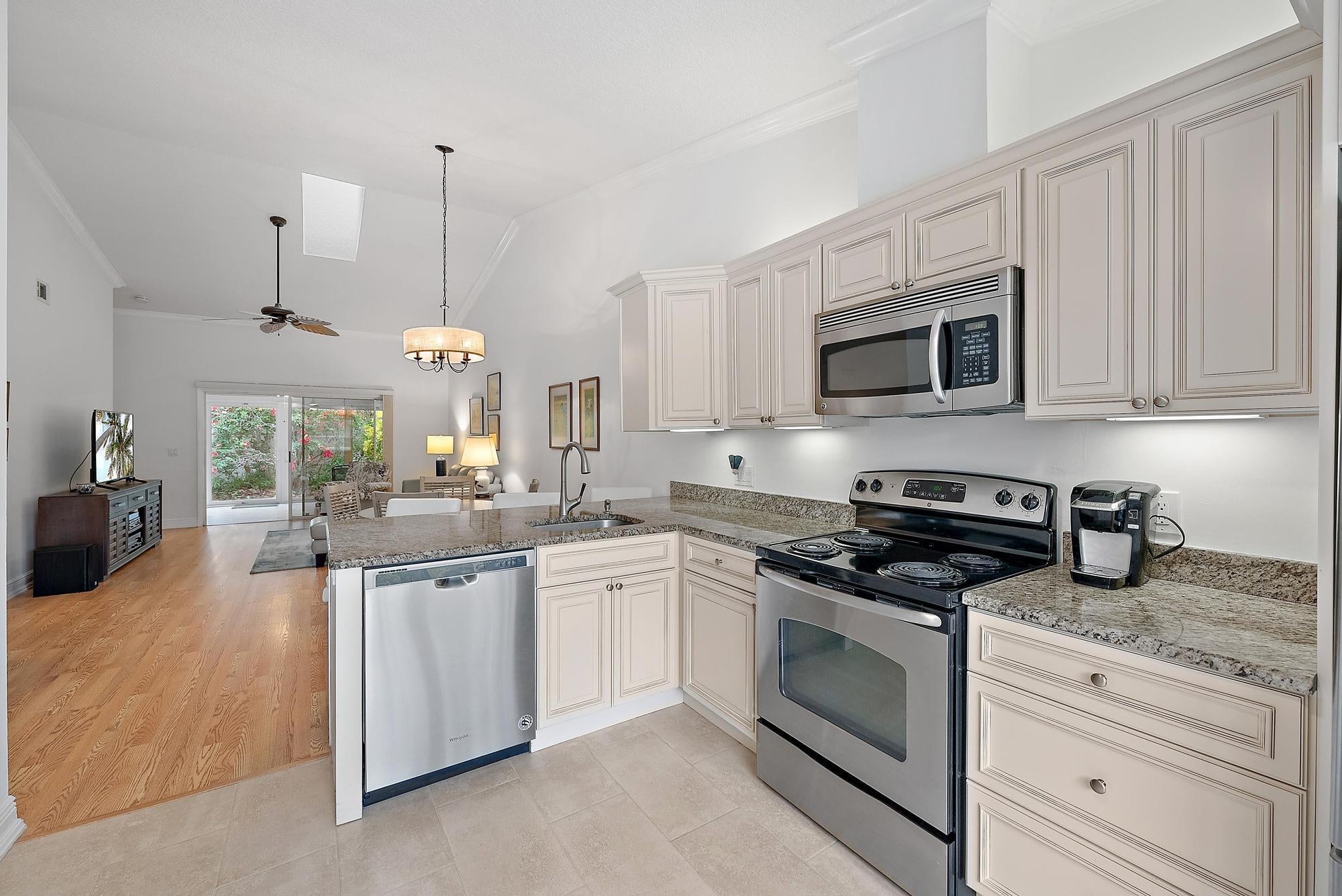 Beautifully Updated Villa in 55+ CommunityMove right into this 2-bedroom, 2-bath villa featuring a bright Florida room and a 1-car garage with impact door. Freshly painted interior and ceilings, new light fixtures, a brand-new washer, 2018 A/C unit, and a new hot water heater add to the move-in readiness.Enjoy light wood flooring throughout the main living areas, with tile in the kitchen, bathrooms, and lanai for easy maintenance. The kitchen boasts solid wood cabinetry, granite countertops, and stainless steel appliances. Elegant crown molding, high baseboards, vaulted ceilings, and a skylight in the living area add a touch of sophistication and natural light.Amenities include a clubhouse and pool. just minutes from the beach, shopping, and dining