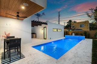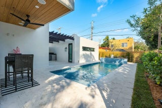 Discover unparalleled charm and sophistication in this brand-new Mission Revival home, ideally situated in the coveted College Park neighborhood of Lake Worth Beach. This architectural gem pays homage to the classic 1920s style while incorporating today's most sought-after modern amenities. From the moment you enter, you'll be greeted by soaring ceilings in the entryway that flood the space with natural light. The open-concept floor plan is anchored by a stunning chef's kitchen featuring top-of-the-line Thermador appliances, a quartz island, a pot filler, and a walk-in pantry with custom shelving. Perfect for entertaining or everyday living, the kitchen flows seamlessly into the great room and access the dining room via a butlers pantry.A versatile flex room on the main level can serve as a home office or playroom, complemented by a stylish half bath. Upstairs, three ensuite bedrooms ensure ultimate comfort and privacy. The primary suite, located at the back of the home, overlooks the serene backyard and pool with a Juliet balcony, featuring a generous walk-in closet, a luxurious bathroom with dual sinks, and a walk-in shower. Just off the primary bath, step onto the tiled rooftop terracea private retreat perfect for enjoying morning coffee, sunsets, or quiet relaxation under the stars. The secondary bedrooms mirror each other in layout and design, offering ample closet space and luxury ensuite bathrooms. Modern touches include a Control 4 home automation system, impact-resistant windows, recessed lighting, and more. Step outside to your personal oasis, complete with a 27' x 10' pool featuring a sun shelf, travertine pool deck, and a covered patio wired for outdoor entertainment. The fully fenced backyard, framed by lush landscaping, ensures privacy and tranquility. A two-car garage, energy-efficient features, and close proximity to vibrant Lake Worth Beach make this home an extraordinary opportunity. Combining timeless design with contemporary convenience, this home is truly one-of-a-kind.