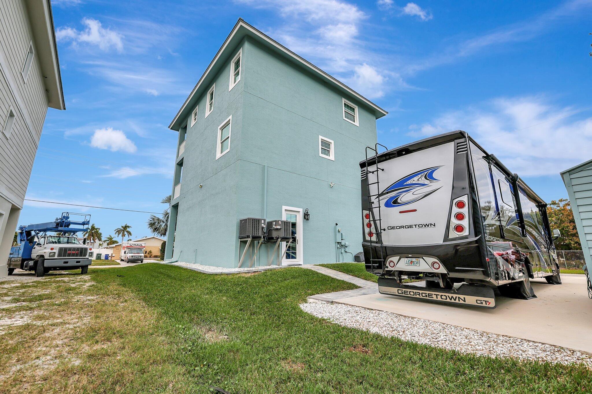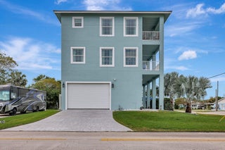 Enjoy paradise on South Hutchison Island from this beautiful custom concrete built home. 4 bedrooms plus a den, 4 1/2 baths and 2 living rooms . Over 2800 sq. ft. of living area. Kitchen features raised panel wood cabinets, granite counter tops & backsplash and copper double sinks. Wood flooring & stairs. Balcony porches with water views. Large 2 car garage raised above the street and additional RV & boat parking. This island home has a private elevator, new metal roof, 2 new a/c units on a corner lot. Short walk to the beach, restaurants, inlet, river parks and Atlantic Ocean, or sit on the balcony and watch the boaters go by. Pelican Yacht Club is just down the block for your boating needs. Please call for your private tour today.