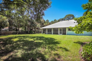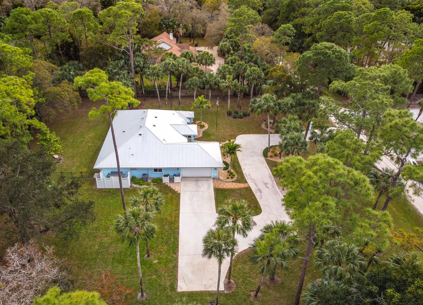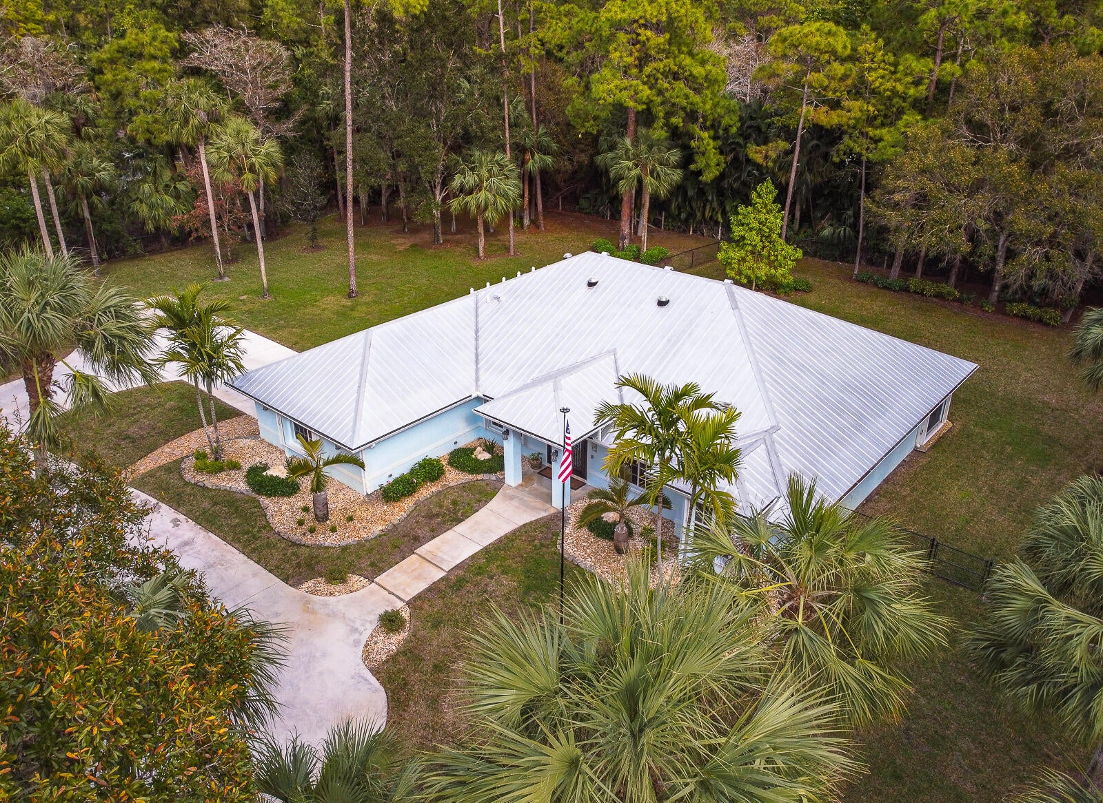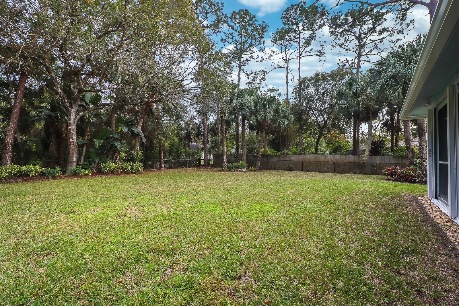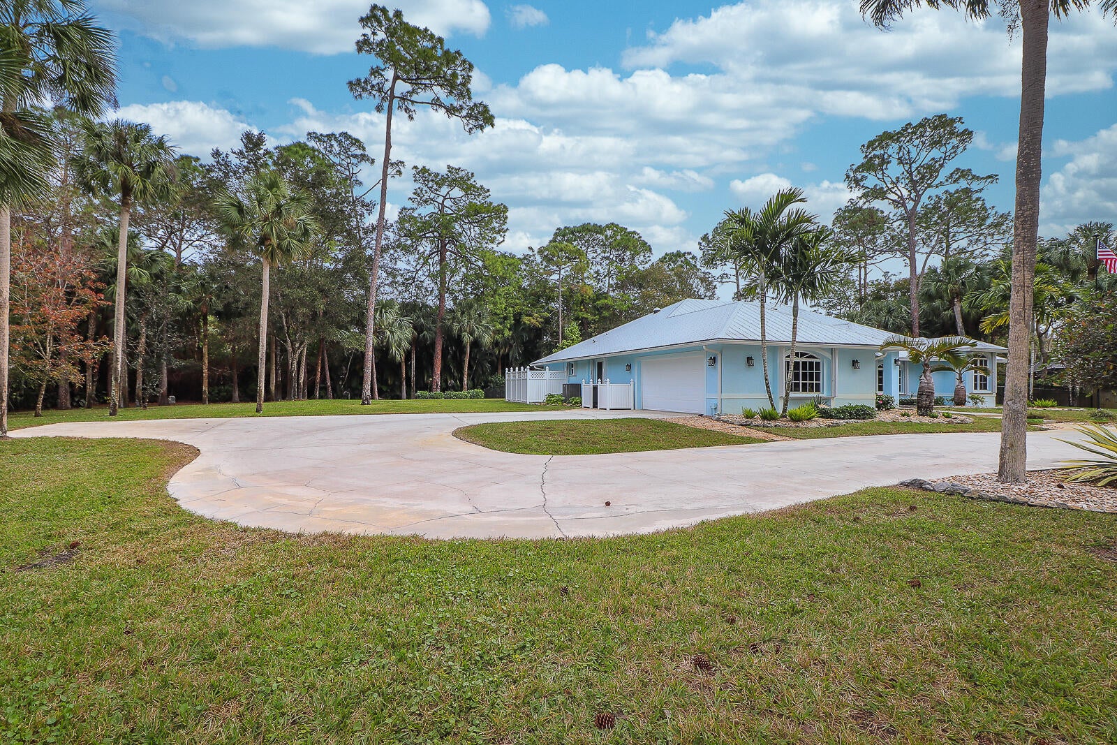 This beautiful ranch-style home features three bedrooms, a bonus room or office, and two bathrooms, offering a total of 2,475 square feet of living space under air. Built with durable concrete block, the property includes an oversized two-car garage and is nestled on a beautifully landscaped 1.17-acre lot adorned with majestic oak trees, palm trees, and pines, all located in a quiet neighborhood. It provides quick access to I-95 and a short commute to West Palm Beach. The home boasts a recently installed metal roof with skylights that fill the interior with natural light. A grand iron front door welcomes you into this stunning residence, which features an open floor plan and vaulted ceilings in both the main living area (and the oversized master bedroom).The spacious kitchen is equipped with an island and two breakfast bars, offering ample space for entertaining. The interior showcases numerous upgrades, including travertine floors, high-quality custom cabinets, under and over-cabinet lighting, granite countertops, stainless steel appliances, and a reverse osmosis water system. There is plenty of storage throughout the home. The house is freshly painted and features a recently installed high-efficiency A/C unit with blue light air purification, an extra-large capacity water heater, and a recirculating heating system in the master bath. Additionally, it comes with an extra large-capacity front-load washer and dryer. An outdoor shower, patio, and a fenced backyard make it pool-ready. A Rainbird system controls the irrigation, the City of Jupiter provides water, and the home is equipped with accordion storm shutters for added protection. This residence blends elegance, warmth, and functionality perfectly and is truly move-in ready.
