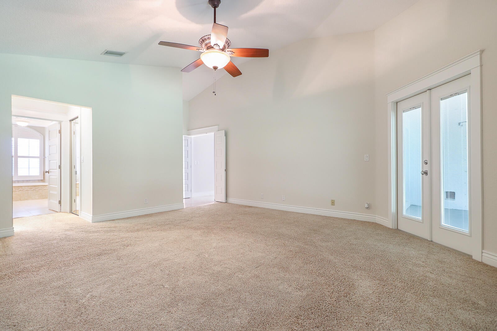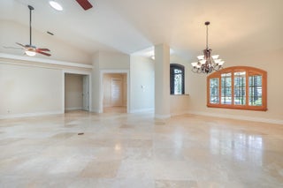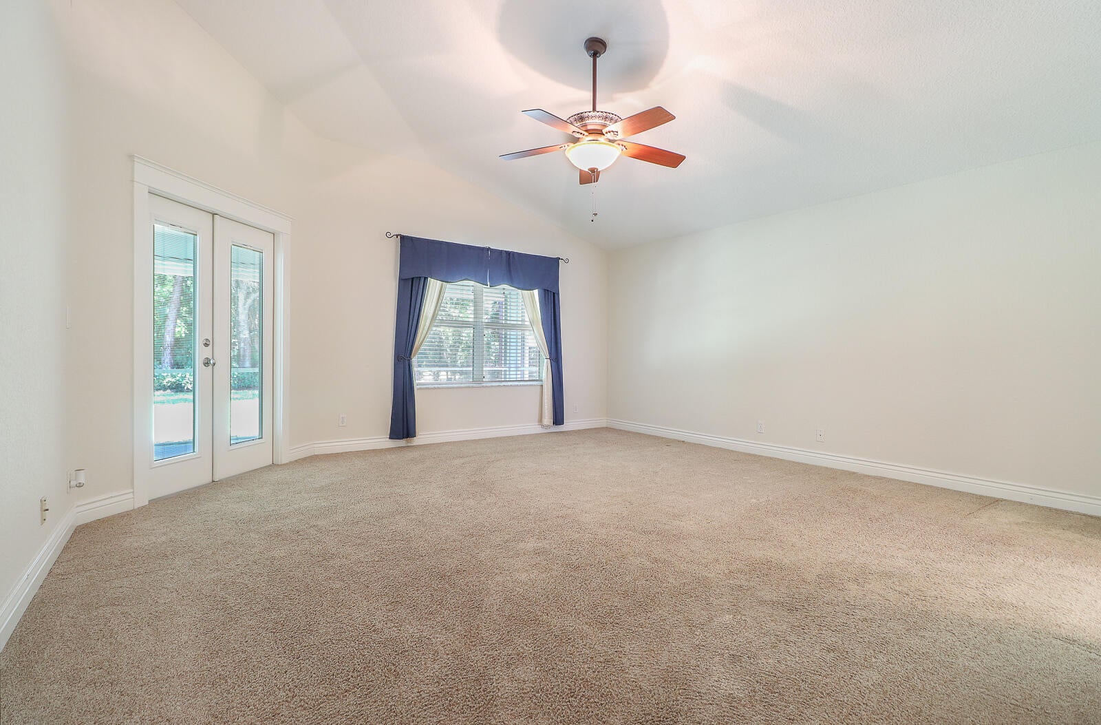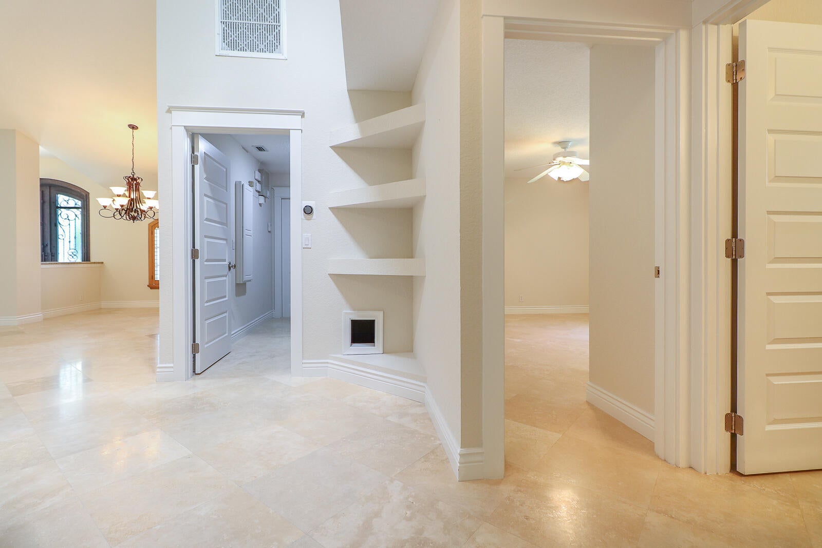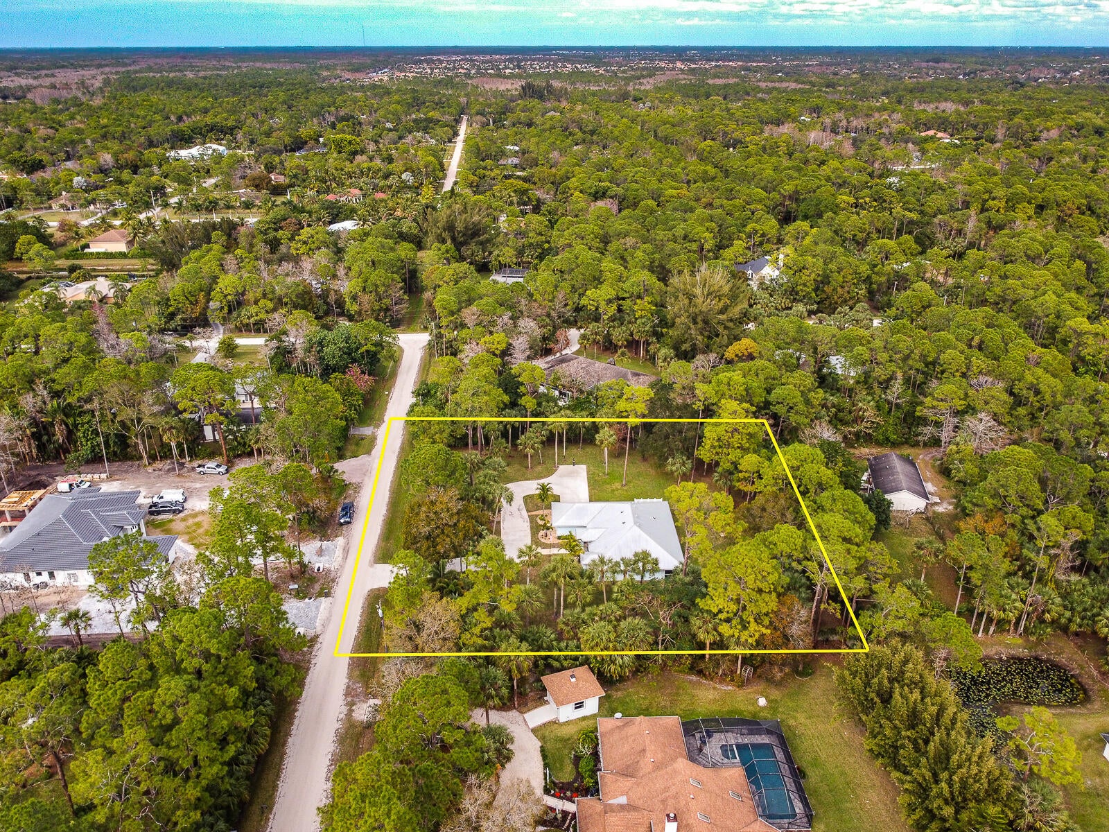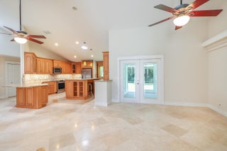 This beautiful ranch-style home features three bedrooms, a bonus room or office, and two bathrooms, offering a total of 2,475 square feet of living space under air. Built with durable concrete block, the property includes an oversized two-car garage and is nestled on a beautifully landscaped 1.17-acre lot adorned with majestic oak trees, palm trees, and pines, all located in a quiet neighborhood. It provides quick access to I-95 and a short commute to West Palm Beach. The home boasts a recently installed metal roof with skylights that fill the interior with natural light. A grand iron front door welcomes you into this stunning residence, which features an open floor plan and vaulted ceilings in both the main living area (and the oversized master bedroom).The spacious kitchen is equipped with an island and two breakfast bars, offering ample space for entertaining. The interior showcases numerous upgrades, including travertine floors, high-quality custom cabinets, under and over-cabinet lighting, granite countertops, stainless steel appliances, and a reverse osmosis water system. There is plenty of storage throughout the home. The house is freshly painted and features a recently installed high-efficiency A/C unit with blue light air purification, an extra-large capacity water heater, and a recirculating heating system in the master bath. Additionally, it comes with an extra large-capacity front-load washer and dryer. An outdoor shower, patio, and a fenced backyard make it pool-ready. A Rainbird system controls the irrigation, the City of Jupiter provides water, and the home is equipped with accordion storm shutters for added protection. This residence blends elegance, warmth, and functionality perfectly and is truly move-in ready.
