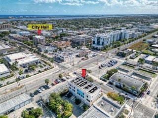 This 3-story ''Green Certified'' turn-key mixed used working studio home WILL NOT LAST!! ** Up to $100,000 of Assistance is offered!!! **Income & affordability restrictions are MANDATORY FOR BUYERS**The 1st floor offers direct street parking access from the front, private parking lot & garage access from the rear, laundry area in garage & an ensuite bedroom/ retail/working studio with an accessible toilet rm. The 2nd floor features an open concept including a living rm, dining rm & an eat-in kitchen which is adjacent to a large balcony. The home is equipped with a 2 story Handicare chair lift. The 3rd floor features the Primary suite & a Junior suite. Custom finished concrete floors on 1st floor, gas range, dishwasher,dryer & tankless water heater offering a 25 yrs. lifespan plus transferable structural warranty. The home is securely protected, quiet inside with commercial grade impact resistant windows & doors. Coming soon at the rear is a dog park, kids play area & a recreational outdoor area. HOA includes exterior maintenance, exterior insurance policy (including roofs), building paint, landscaping, irrigation, parking lots & lights, fire sprinkler system & monitoring. Conveniently located within walking distance of the beach & pier, intracoastal parks, boat ramps & parks, shops, restaurants & the Palm Beach International Airport.