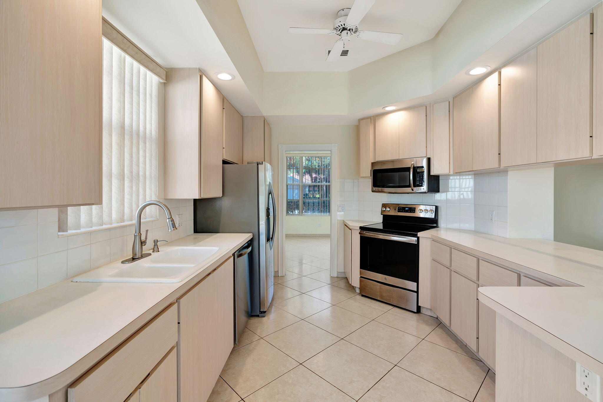 AVAILABLE 3/1Gorgeous lakefront home in gated community of Oaks East , Palm Beach Gardens with many upgrades and recent improvements.Extended floor plan with additional AC space, primary suite with 2 separate vanities and 2 separate toilets, tub, and shower! Walk-in closet with built-ins, and large separate closet. Nice backyard overlooking lake. Open kitchen with newer appliances, lunch bar, and separate dining room, or lounge area. Beautiful light and bright tile flooring, newer roof, recently painted, 2 car garage, storm shutters. Conveniently located near Gardens Mall, Whole Foods, Tiger Woods TGL Golf Center, Marinas, private and public golf courses, fine and casual dining experiences all nearby, fine shopping, and numerous parks & attractions close by as well. Commmunity poo
