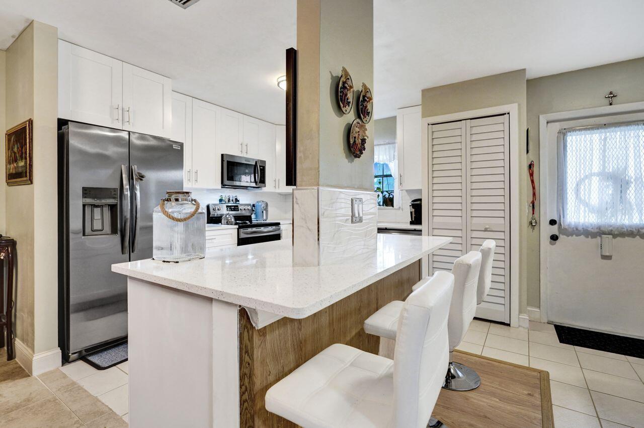 Beautifully renovated 2 bedroom, 2 bathroom villa with new kitchen & appliances, remodeled primary & guest bathrooms. Other updates include a newer roof, tankless/instant hot water heater, circuit breaker box & inside washer/dryer. Enjoy this split bedroom floor plan that includes a spacious Florida room, outdoor patio area plus nearby guest parking. At price, this move-in-ready home comes with a 1-year American Home Shield home warranty. Covered Bridge is a pet friendly, active adult 55+ community with an abundance of clubhouse amenities as follows: 2 large pools, tennis/pickleball courts, fitness center, shuffleboard, bocce ball, card room, library, auditorium, workshop and outdoor picnic area and much, much more. Conveniently located near many shopping venues and restaurants...... only minutes to PBIA, Florida's Turnpike and everything the Palm Beaches has to offer.