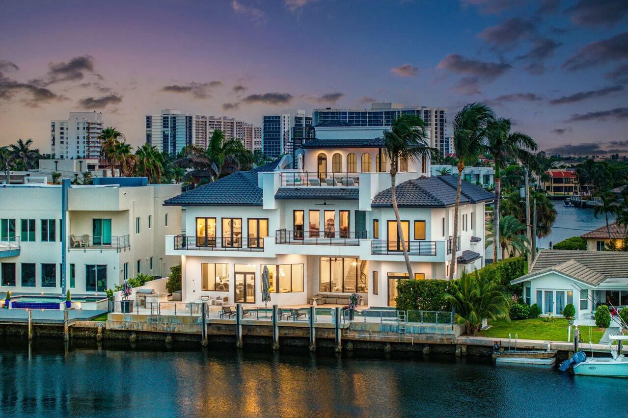 A Luxurious Waterfront Masterpiece in Highland BeachDiscover this impeccably upgraded sanctuary on the coveted barrier island of Highland Beach. Nestled at the wide mouth of the Bay, this extraordinary residence offers breathtaking panoramic views and exclusive private gated beach access.As the tallest home permitted in the area, it boasts unparalleled 360-degree vistas of the Intracoastal Waterway, ocean, and city skyline. This architectural marvel features soaring ceilings, five spacious en-suite bedrooms, a private office, six full baths, and two half baths. An elevator provides seamless access to all levels, while a private theater room, fireplaces in the living room and master suite, and dual laundry rooms (upstairs and downstairs) elevate everyday luxury.Crafted with meticulous attention to detail, the home is equipped with impact windows and doors, a three-car garage, and an array of thoughtful upgrades, including a full-house generator, state-of-the-art smart home system, and a spectacular outdoor kitchen. The top floor includes a second entertainment space with sprawling views, fire pit, and room for plentiful seating.The expansive patio, inviting pool, concrete dock, and seawall make outdoor living a dream. This home is the ultimate expression of refined elegance and modern convenience, perfect for those seeking a waterfront retreat with every imaginable amenity.