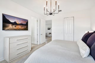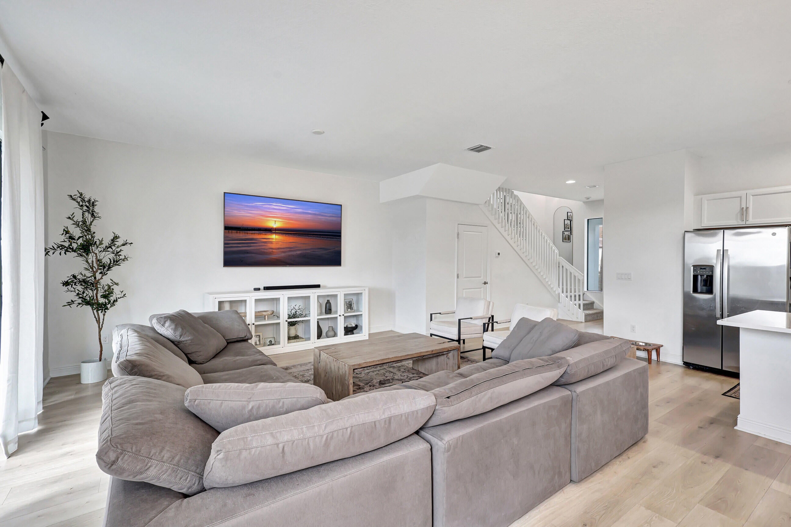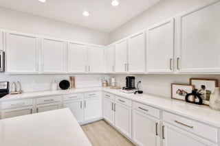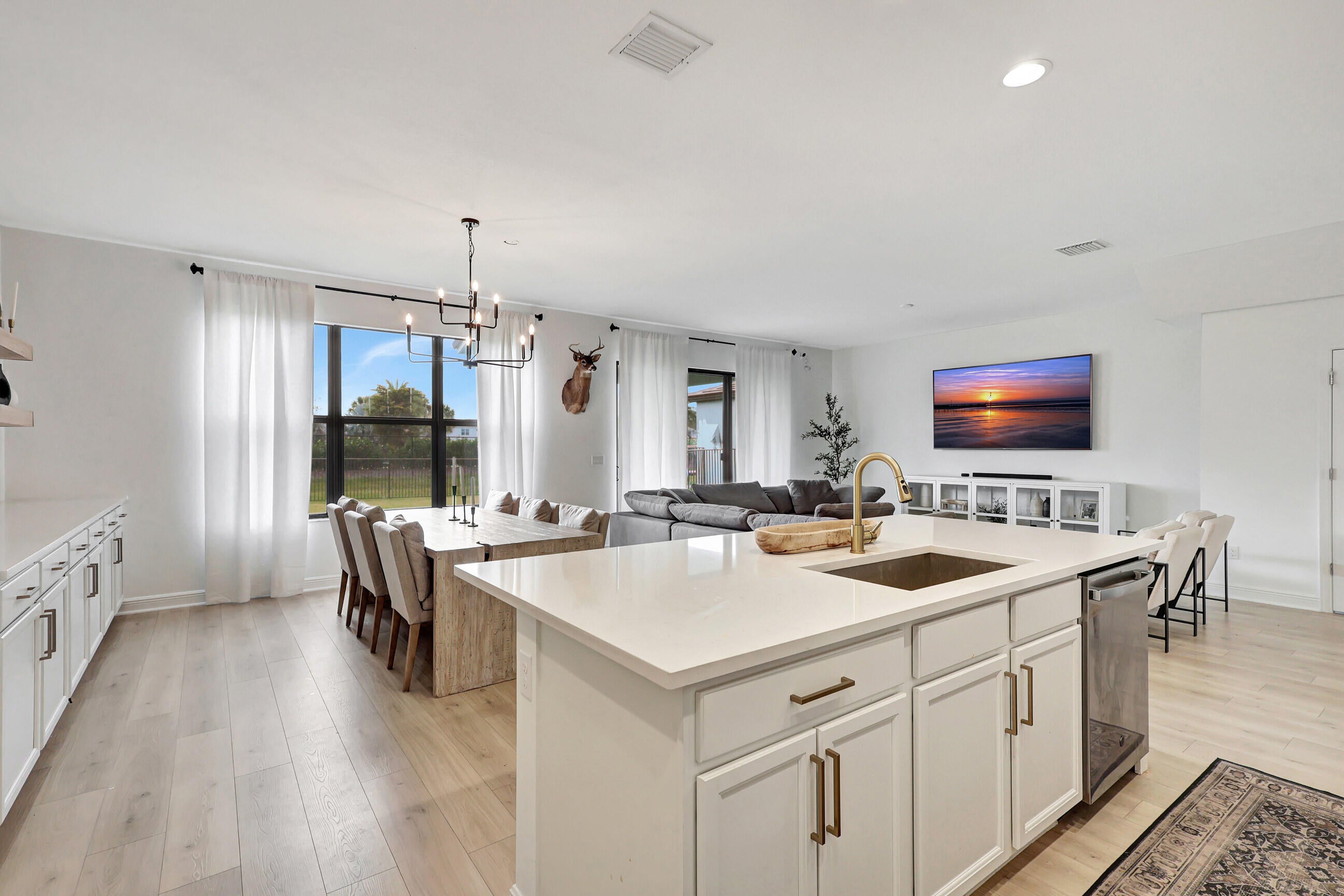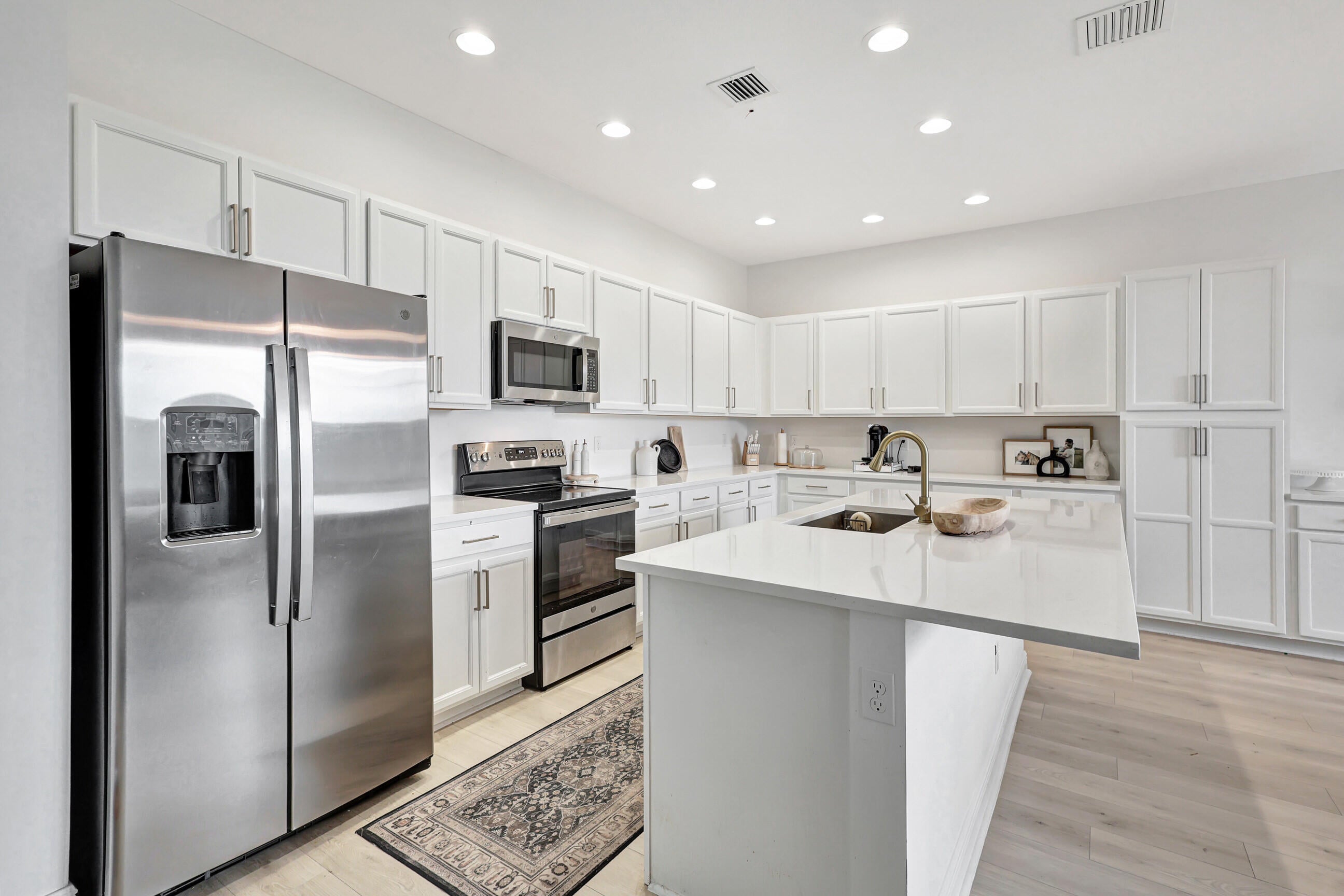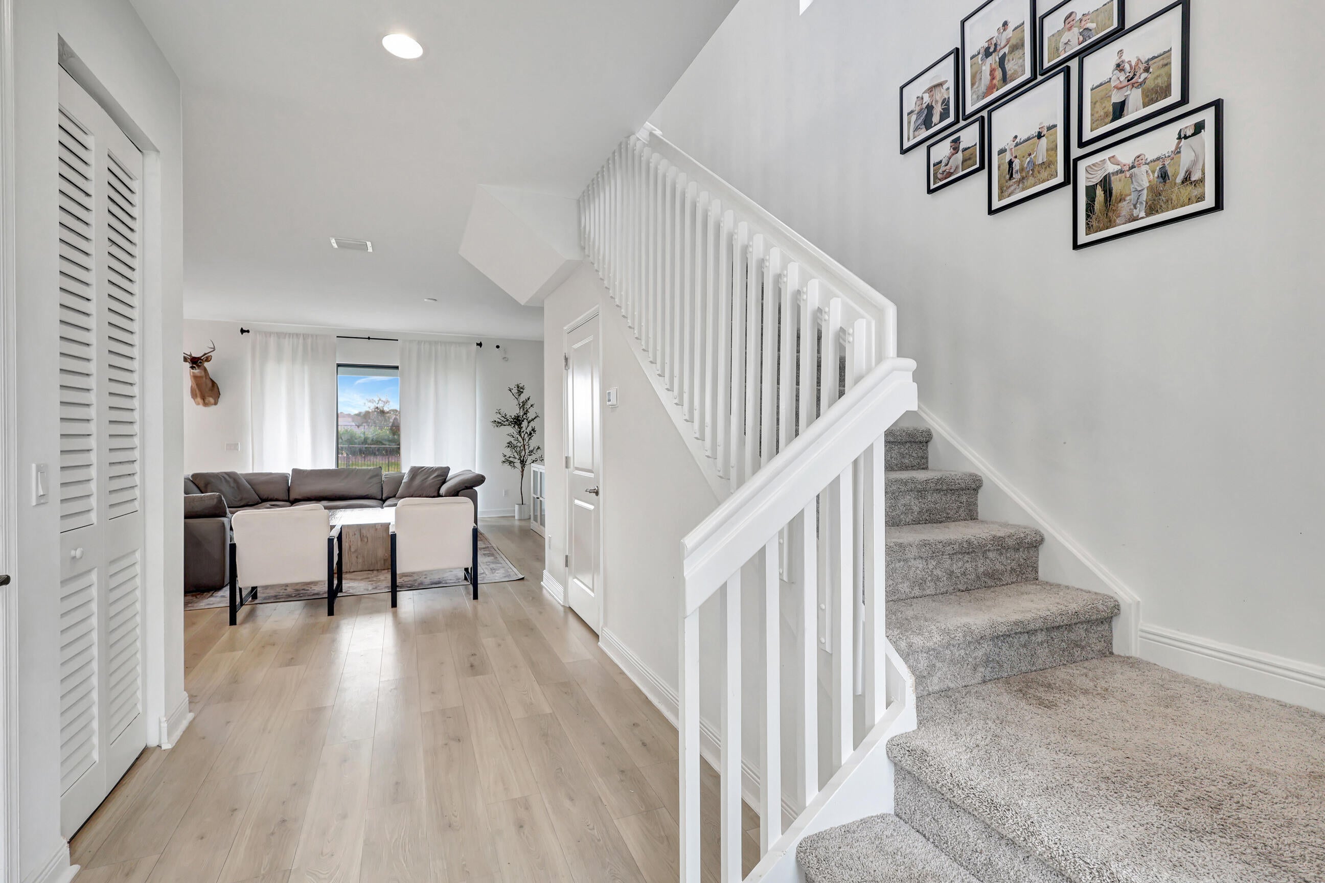 A modern, bright home awaits you. This sleek home boasts bleached linen vinyl flooring throughout, accented by black elements for a chic aesthetic. With 3 beds plus den and 2.5 baths, the open-concept downstairs features a spacious kitchen with extended cabinetry, seamlessly flowing into the dining and living areas flooded with natural light. Upstairs, the primary bedroom offers a two-sink primary bath, while two additional bedrooms share a bathroom. A bright and airy den perfect for lounging. Outside, the fenced-in grass backyard invites relaxation and outdoor gatherings. #1 rated schools district! Experience contemporary living at its finest - schedule a showing today!