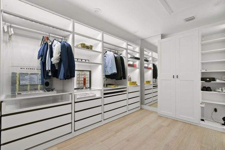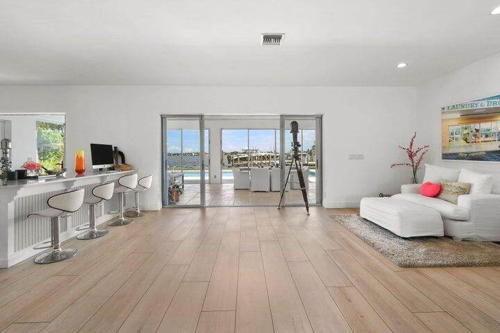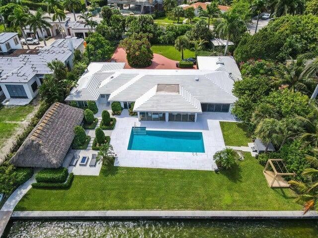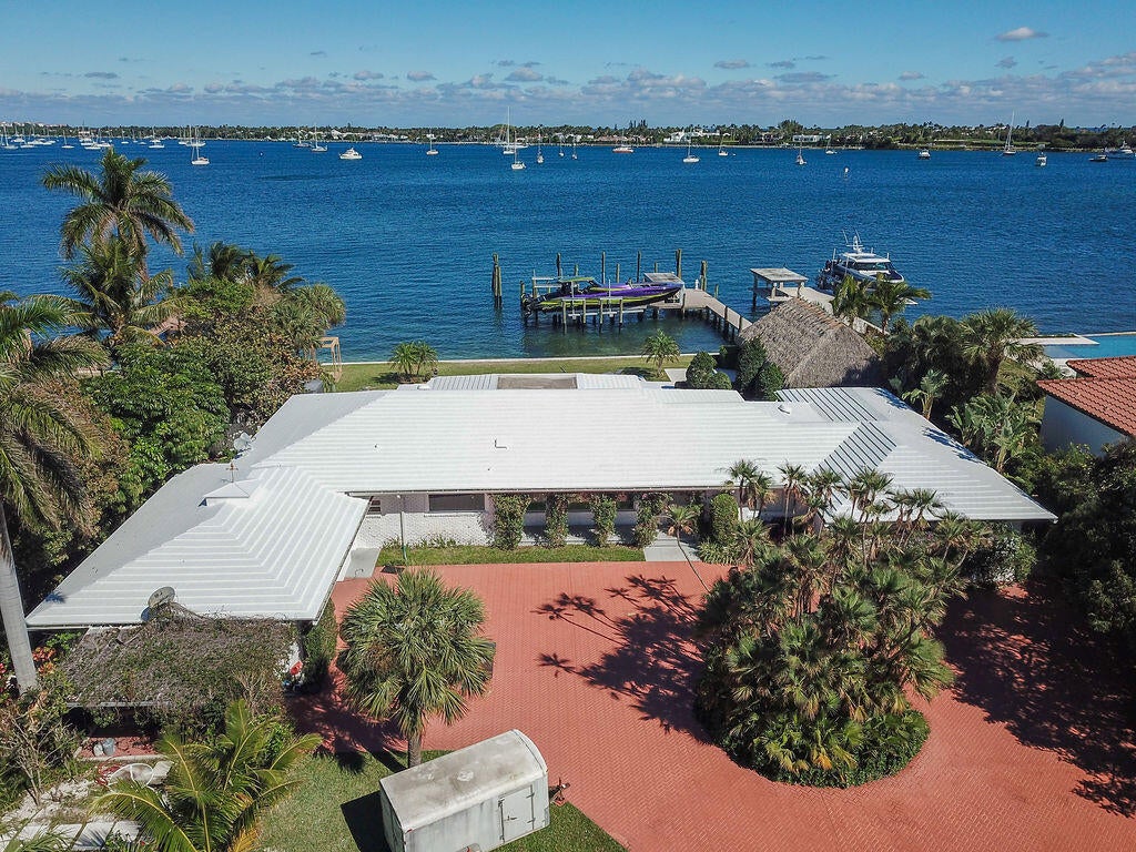 Direct Intracoastal Dream. Private dock: 3 slips w/ lifts. 150 ft of water frontage. Available now furnished; turnkey. Located on a sprawling 36,000+ sq ft lot, this North Flagler Drive home is a boater's paradise. This one of a kind 5-bed, 5-bath home features a brand new kitchen, massive primary walk in closet, sauna, movie room, large 50 ft pool overlooking intracoastal, hot tub, fire pit, summer kitchen, outdoor shower & 2 car garage. Be the best host in town with your own oversized backyard Tiki Hut, equipped w/ commercial grade wrap around bar, 3 television's. Enjoy surround sound throughout the interior/exterior with your user friendly Sonos speakers. With stunning views of Palm Beach from every angle, this 5,000+ square foot house offers light-filled rooms & luxury living.3 boat lifts: 90ft, 55ft -35k lbs, 34ft - 20k lbs; and 2 jet ski lifts. 100 amp service.