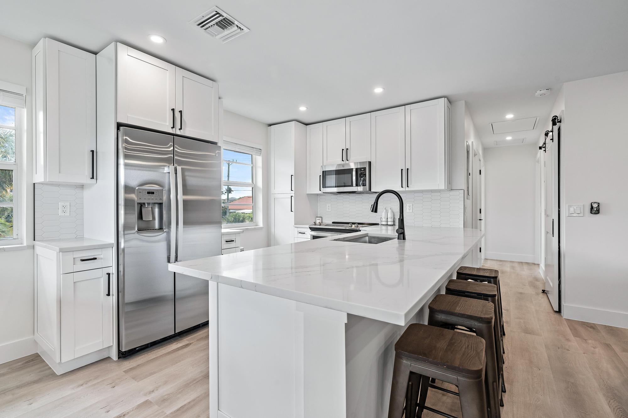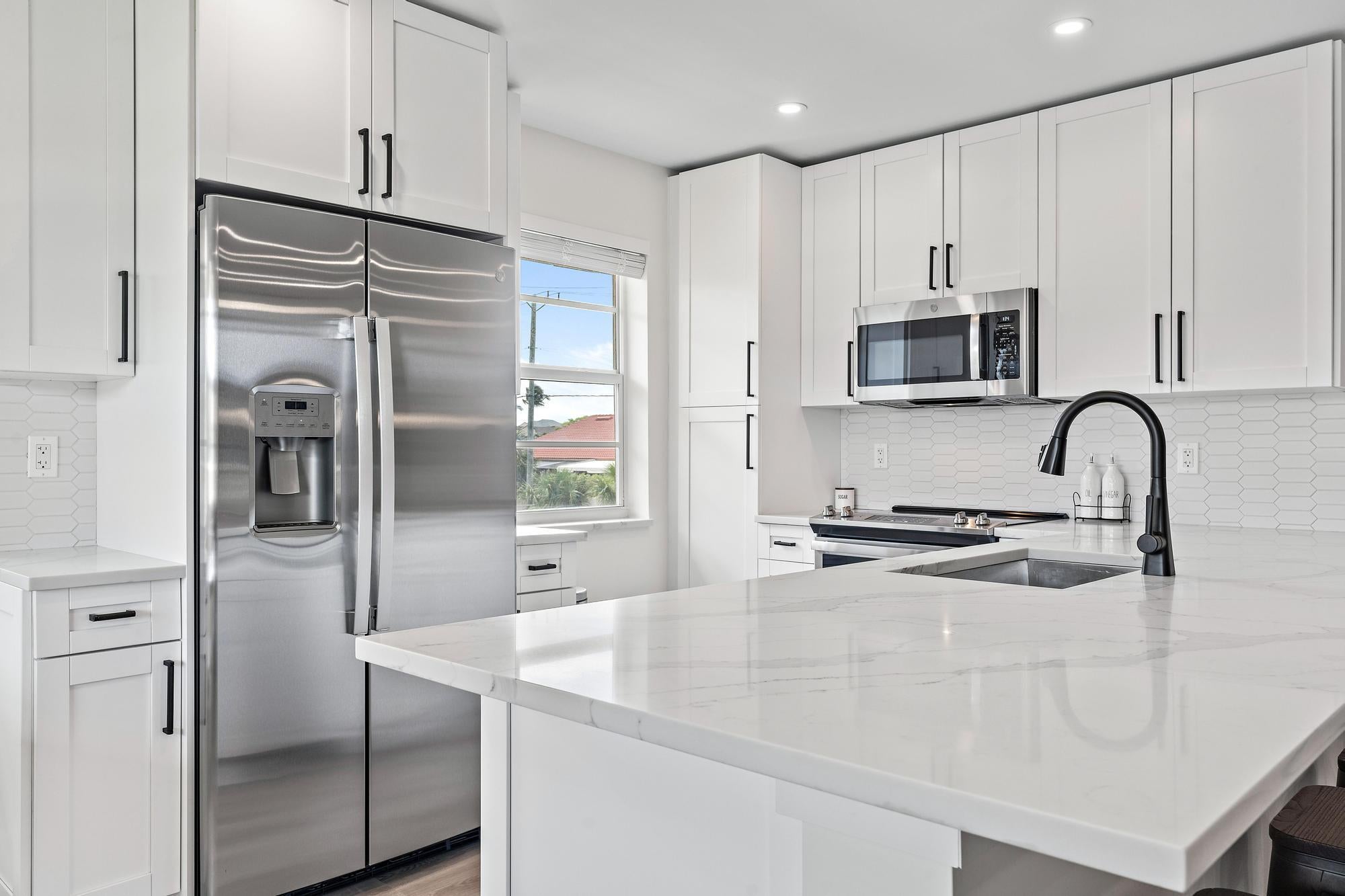 Come enjoy this gorgeous corner end-unit in the renowned Park Plaza Condos. This stunning 2 bedroom, 2 bathroom home was completely renovated in 2024. The extensive rebuild included the removal of walls, expansion of layout, and a complete electrical upgrade to a 200amp electrical system. Thus, providing this unit with its very own Bosch washer and dryer, and an efficient tank-less water heater. The build provided pertinent changes to the overall architectural design, which include the raised ceilings, all new impact doors and windows, redesigned and efficient HVAC system, new plumbing system, high-end LED lighting, motorized blinds, gorgeous kitchen, stunning bathrooms, luxury vinyl floors, and so much more. This alluring home is a stone throw from the beach. An Unparalleled Location.