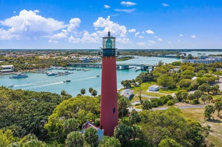 Jupiter is 12 miles north of Palm Beach Shores via I-95 and Rte. 706. Jupiter is one of the few little towns in the region not fronted by an island. Beaches here are part of the mainland, and Route A1A runs for almost 4 miles along the beachfront dunes and beautiful estates.