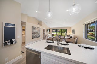 Available April 2025 and on. Beautifully Renovated Cottage With Incredible View. Stunning remodel of this light and bright designer decorated Club Cottage. Idyllic location overlooking the newly renovated Par 3 course. Completely renovated in 2021. 2 bedroom/2 full baths at PGA National Club Cottage located inside the prestigious gated community which is home of the Honda Classic. Walking distance to the Pedestrian Bridge which takes you to the Resort, Spa, Restaurants and Bars. The cottage is tastefully decorated with everything you need to feel at home including but not limited to fine furnishings, 3 large flat screen smart tvs (65'',55'',43'') full size washer/dryer and wifi throughout the home. NO PETS.The open plan kitchen includes quartz countertops, stainless steel appliances, garbage disposal and all the dishes, utensils and glassware to make your stay comfortable. Bathrooms are fully renovated with marble and porcelain tiles, quartz countertops. Master walk-in shower and guest tub/shower combo. Master bedroom has a California King bed with a hybrid mattress, walk-in closet and plenty of drawer space. The Guest Room has a queen size bed with a memory foam mattress. Sit inside, or out on the patio and enjoy the amazing view of the golf course and waterway. Relax on the patio while barbequing on the Weber Grill. Enjoy golfing, shopping and fine dining just minutes away. Only 10 minutes to the prestigious Gardens Mall, 20 minutes to pristine beaches and 20 minutes to Palm Beach Airport! The surrounding area has over 100 restaurants from which to choose.