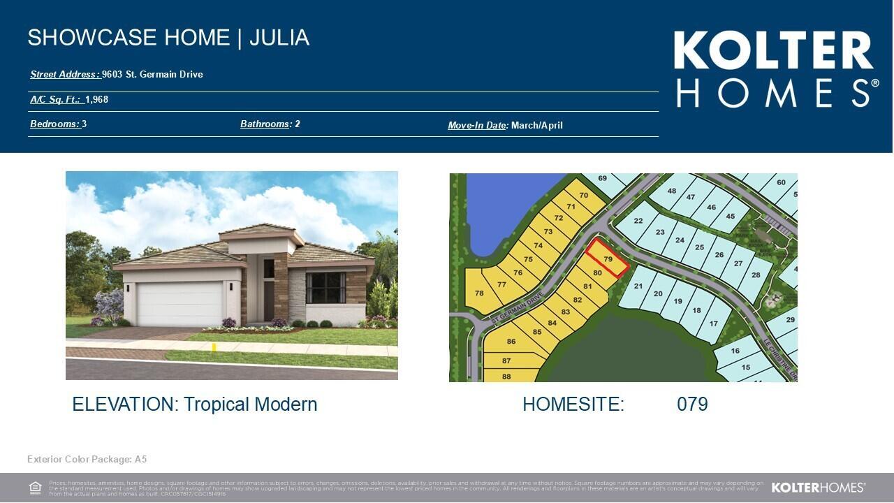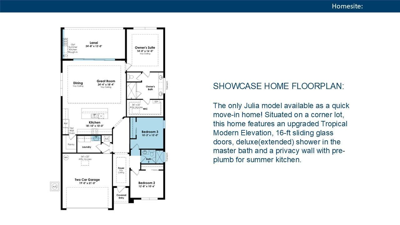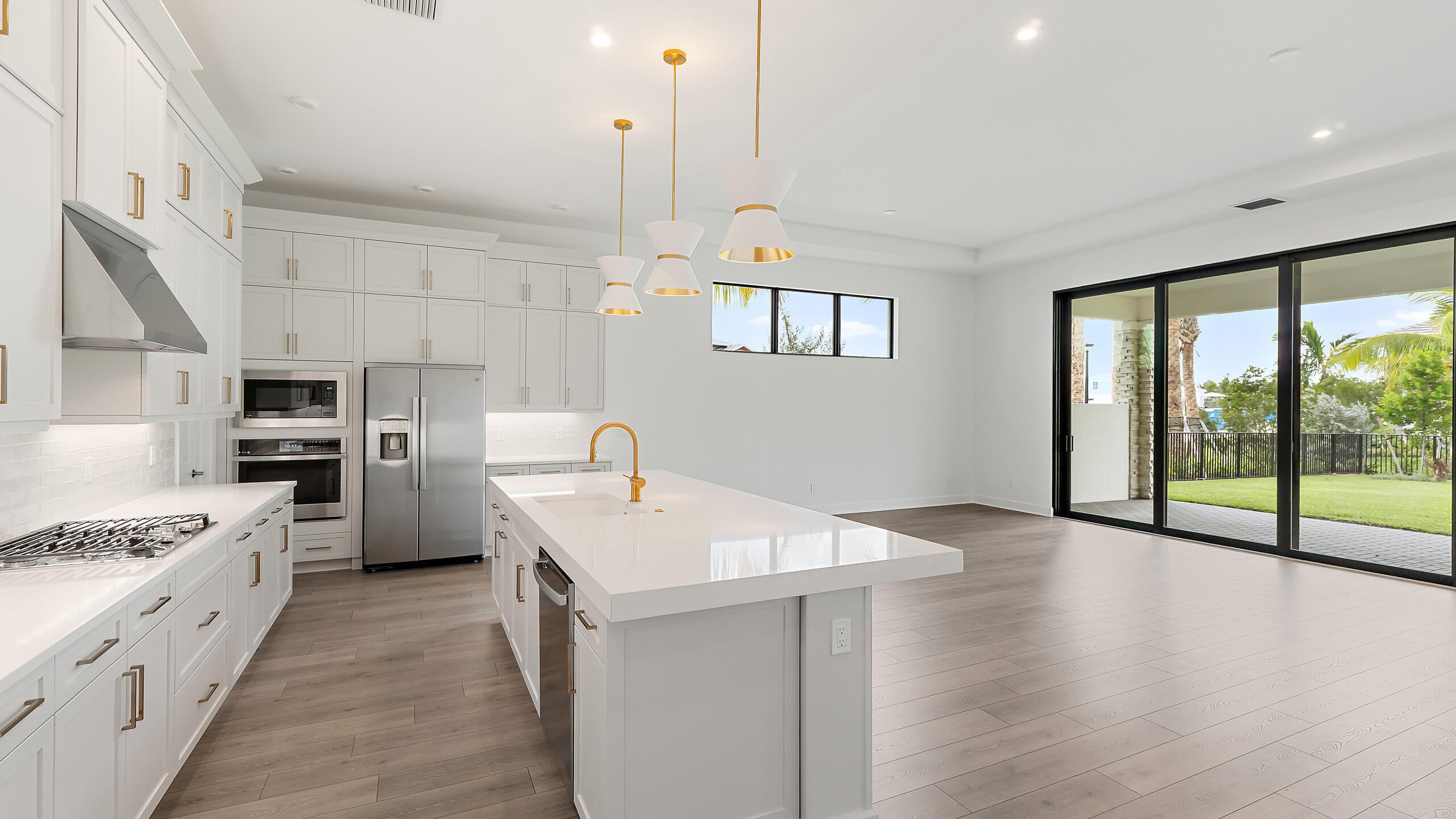 ''**New Construction** This brand-new Julia floorplan is located on a private, corner homesite. Within the gated community of L'Ambiance at Avenir, this home includes 3 bedrooms and 2 bathrooms, The home also includes a 16' wide by 10' sliding impact glass door leading to the lanai, a 5' privacy wall with gas, water and electric connections for a future summer kitchen. There is a gas stub out for a future pool heater and the home includes spray foam insulation. The kitchen includes an island with 3'' quartz, and second tier upper cabinets. The backyard offers ample room to build a custom pool. L'Ambiance is located directly across from the soon to be completed Great Egret Clubhouse giving residents access to a full-service restaurant and poolside bar, 3 separate pools, fitness center, covered playgrounds, indoor and outdoor social spaces, sports courts and more.