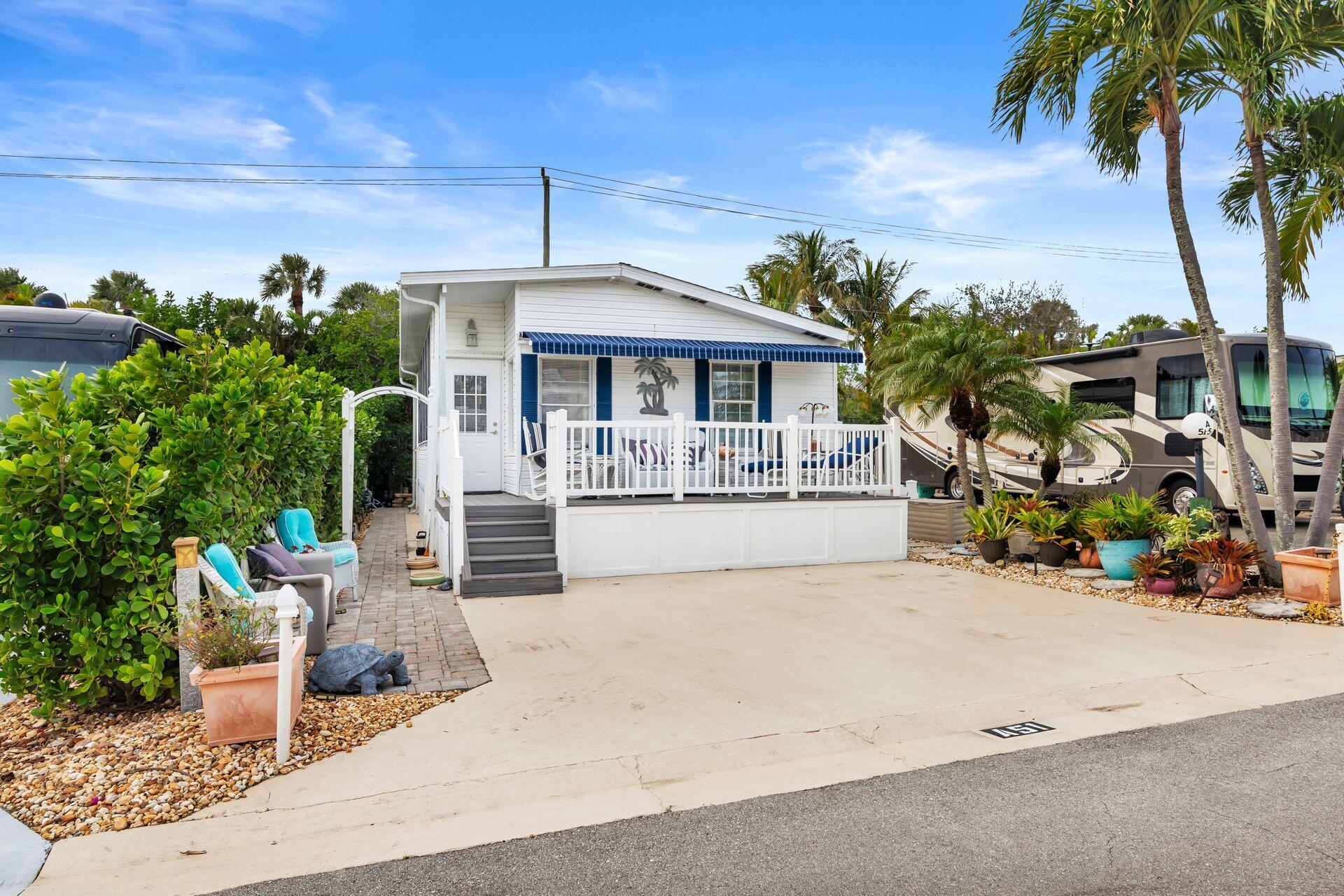 Welcome to Juno Ocean Walk RV Resort located steps from Juno beach and fishing pier. This lovely 1 bed/1bath unit has a south facing porch, an updated kitchen with lots of storage, expansive living spaces that are light and bright and a private patio in the back, ready for entertaining. In unit washer/dryer, stainless appliances, and laminate flooring all add to the ambiance of beach living.Juno Ocean Walk RV Resort offers many amenities including a club house, heated pool, hot tub, billiards, pickle ball, exercise room, laundry facilities, dog walk, volleyball and many social activities offered seasonally. The lot can accommodate 2 cars. The community allows immediate rentals, no HOPA. Enjoy the ocean breezes, walk to the beach or partake of the amenities at this amazing resort