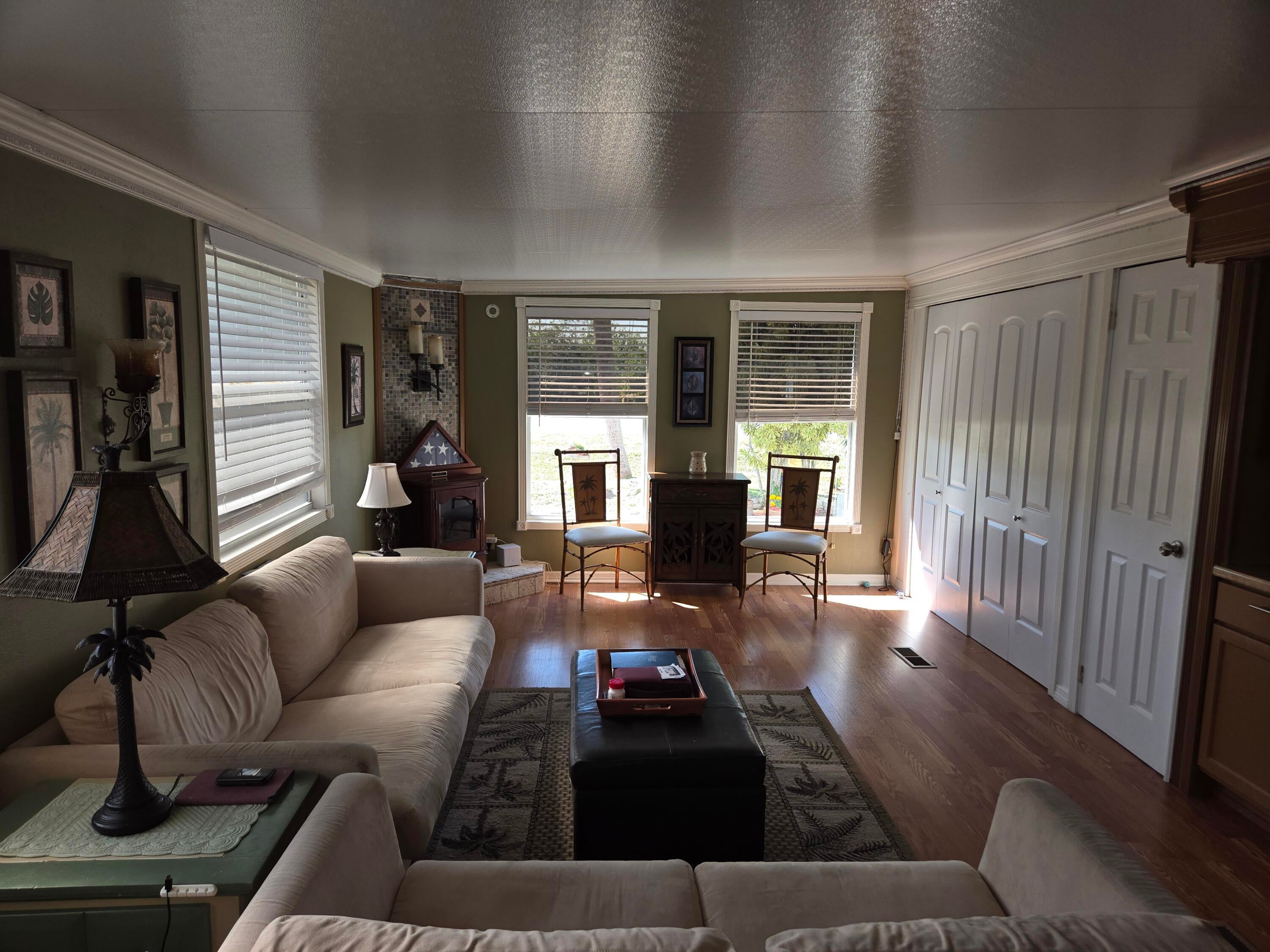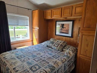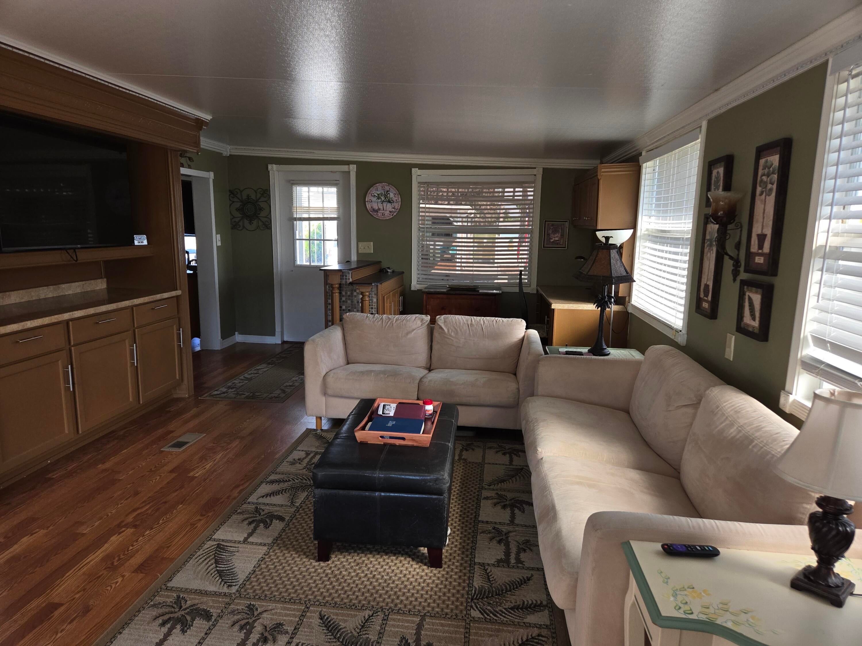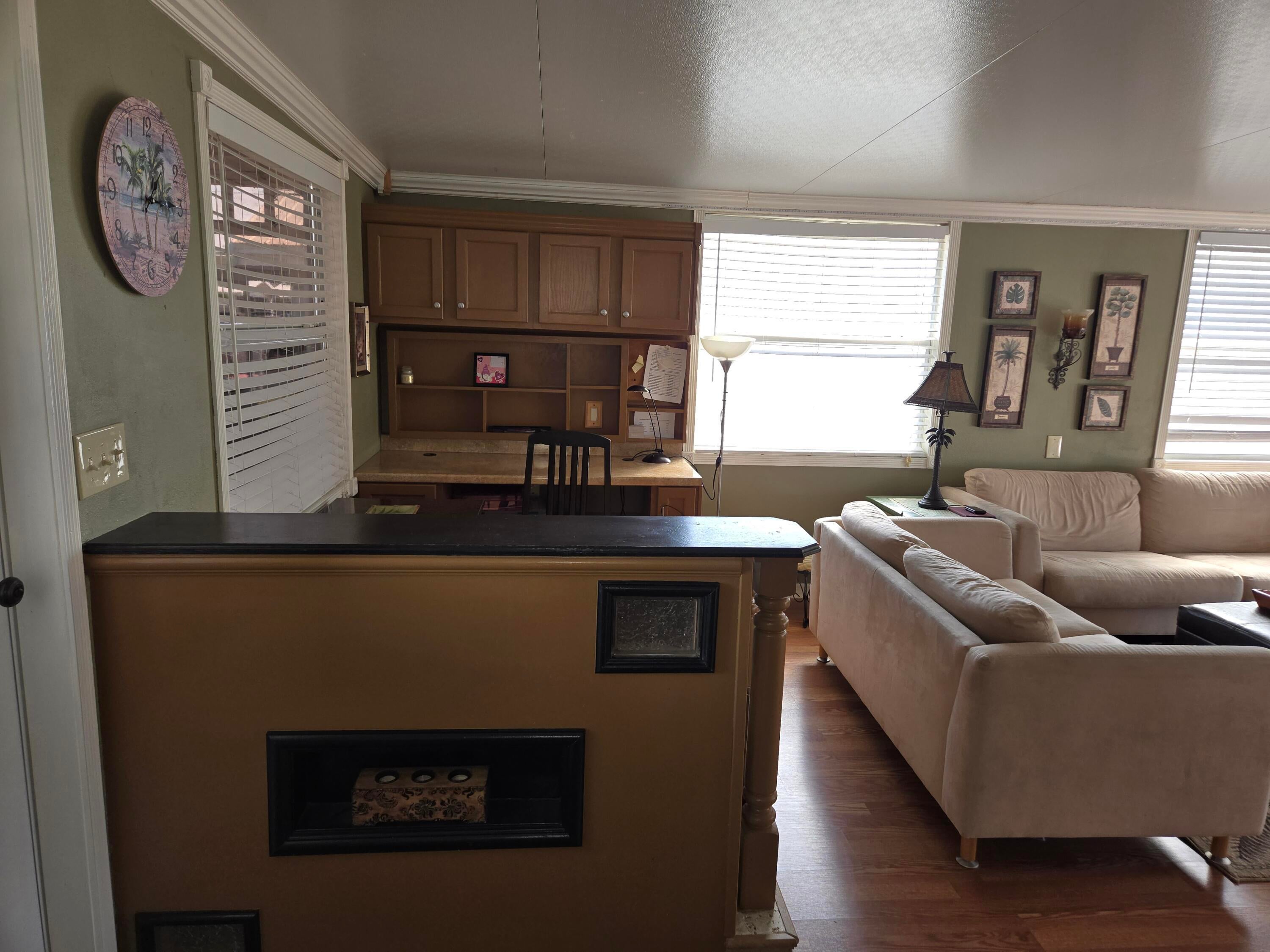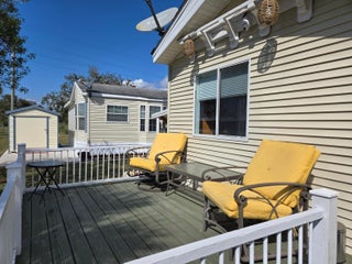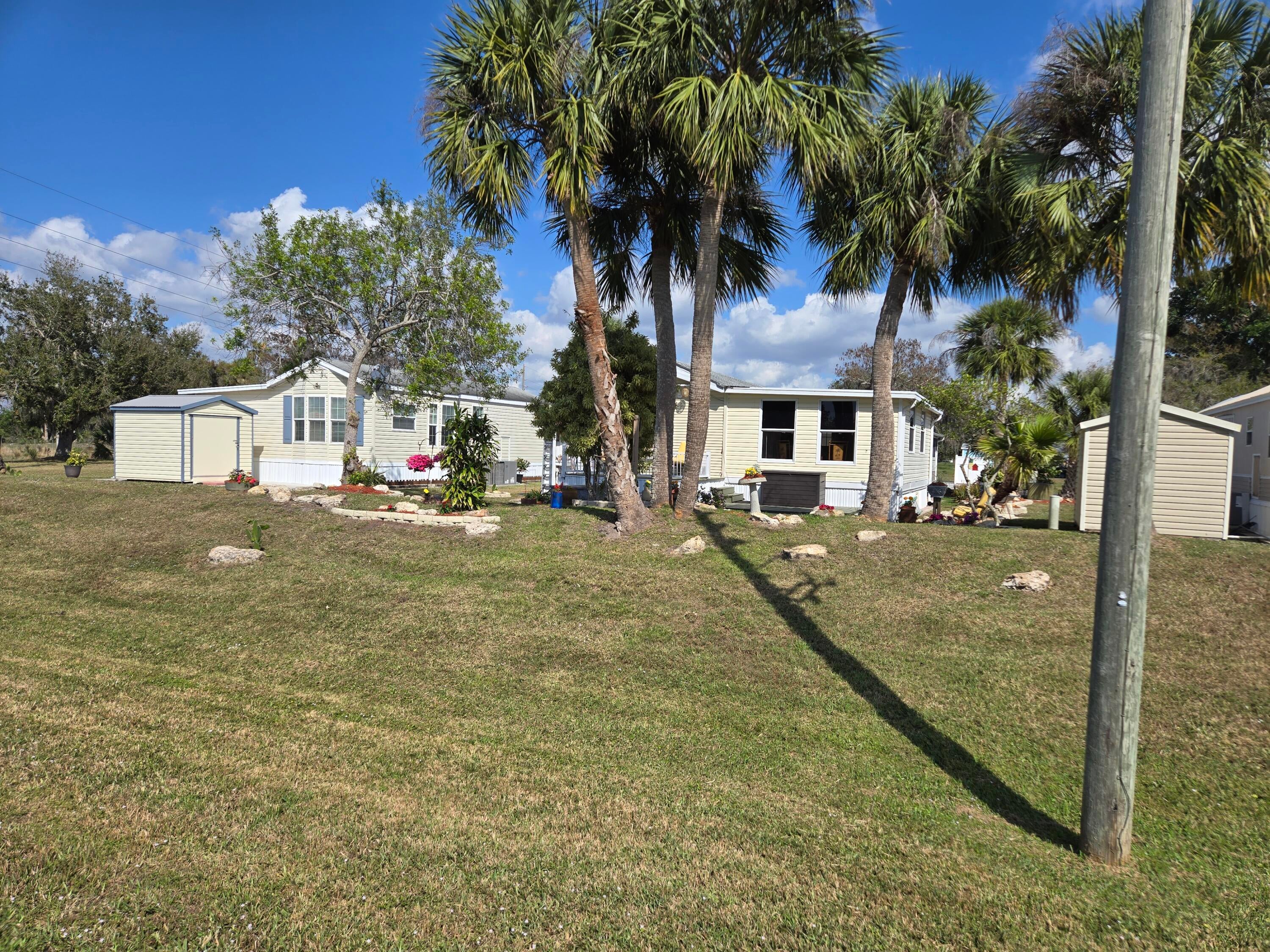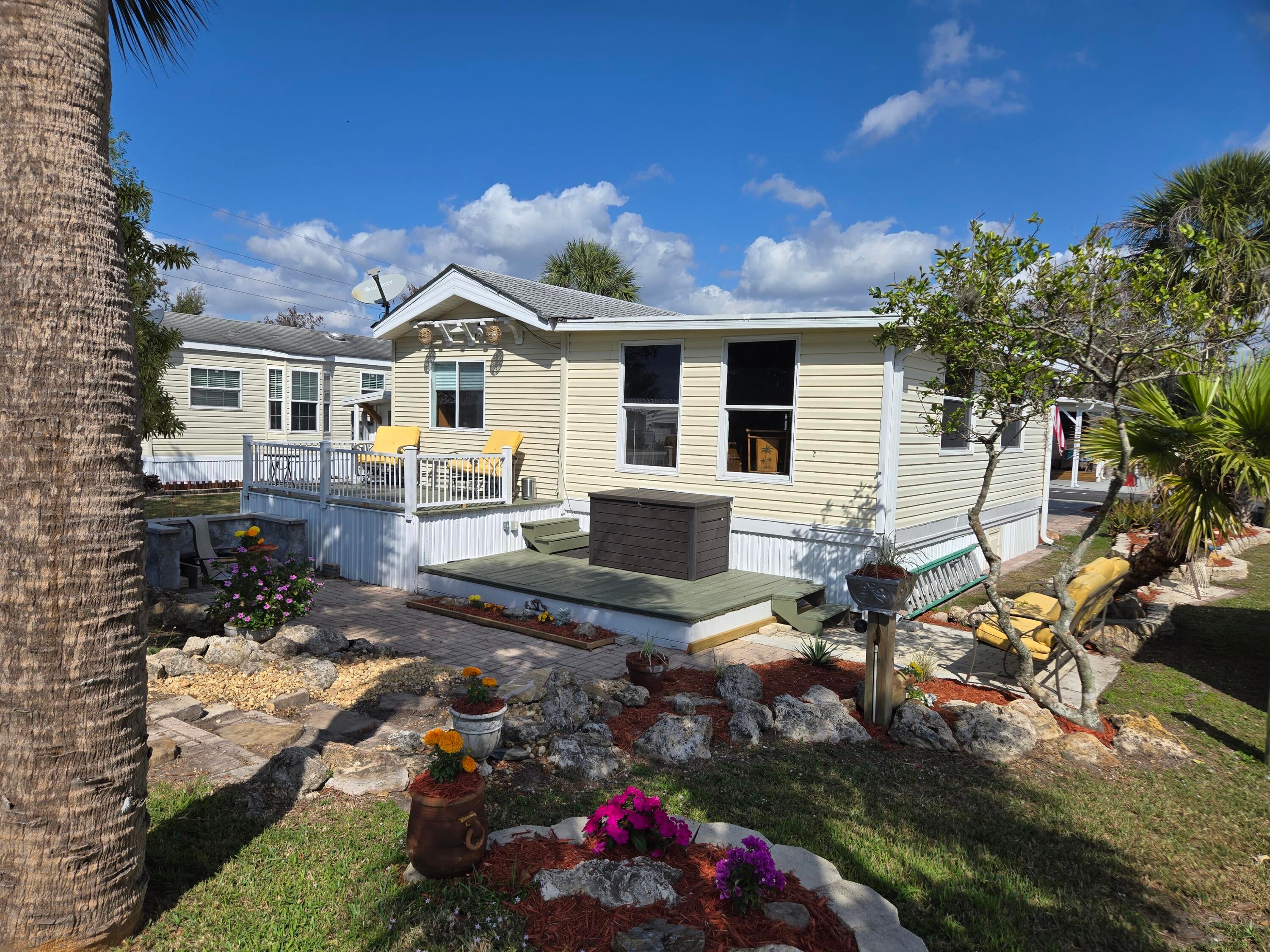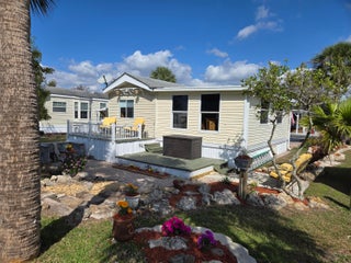 BLUE CYPRESS GOLF & RV RESORT - Well maintained 1 bdrm 1 ba 2004 home w/740 lvg sf & 2,200 total sf. Spacious living area with corner fireplace. Step out to the front porch for your morning coffee and greet your neighbors. Back patio is perfect for evening gatherings to watch the sunset. Laminate flooring. Newer roof, AC and HWH. Property has pavers to provide additional parking for boat.