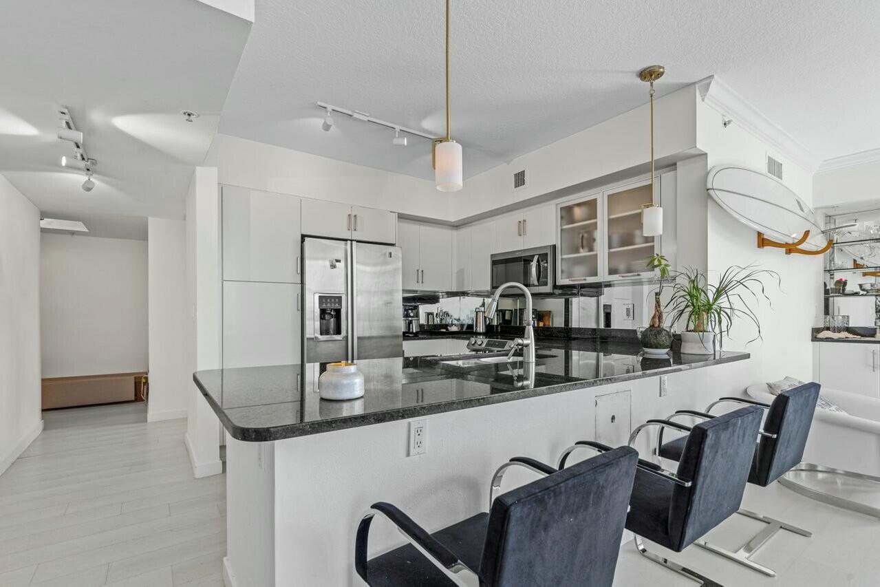 NEWLY PRICED - Experience luxurious living in this 3 Bedroom corner unit flooded w/natural light. The sunlit SW exposure sets the perfect backdrop for the open-concept living space, where the kitchen seamlessly flows into dining & living areas. A corner balcony extends your entertainment possibilities outdoors. The primary bedroom features a private balcony & custom walk-in closet, while two additional bedrooms occupy their own private wing.This high-floor residence offers the convenience of elevator proximity without sacrificing privacy. Community amenities include a heated pool, spa fitness center, renovated club room, bike storage, and business center. Located in the heart of Downtown, you're minutes from Palm Beach, the airport, and local attractions. Garage Parking.