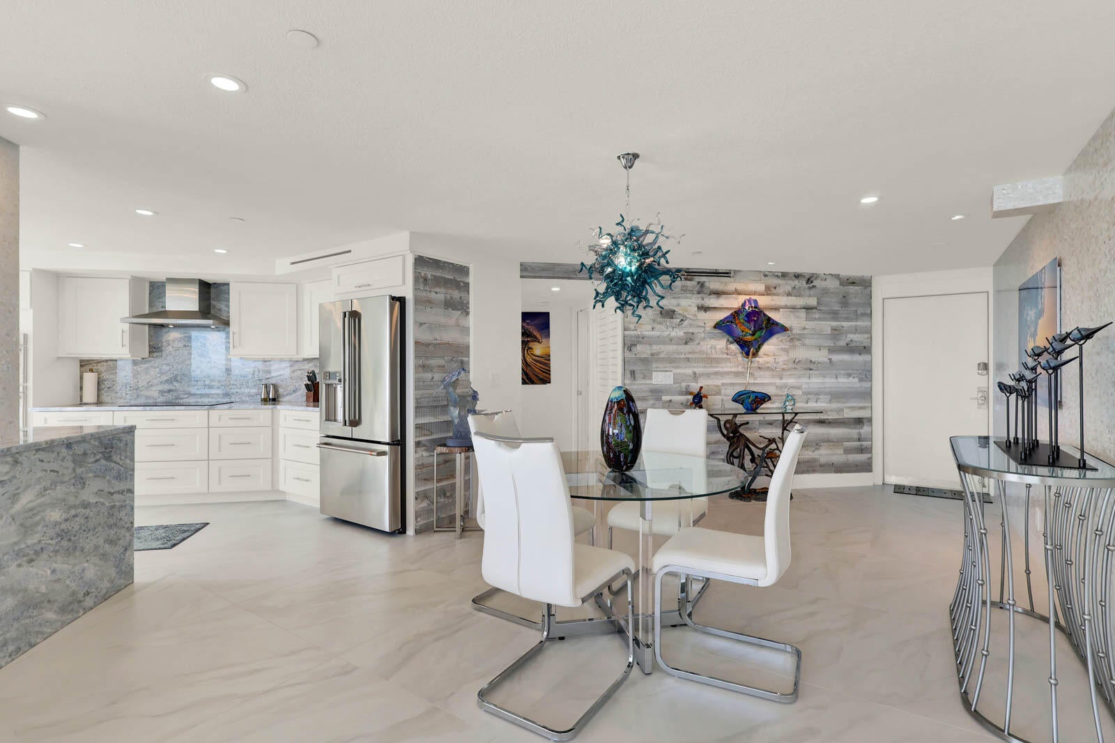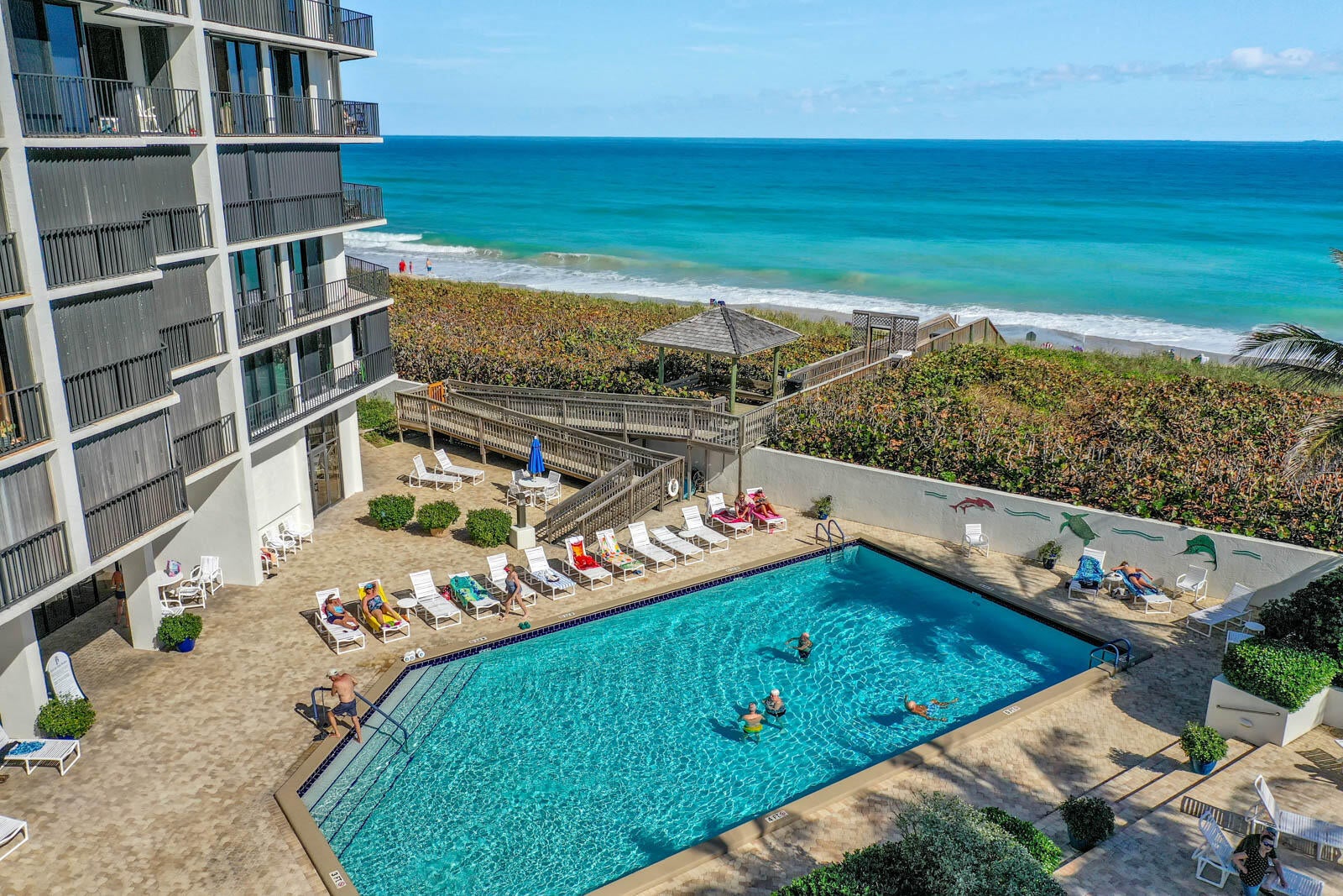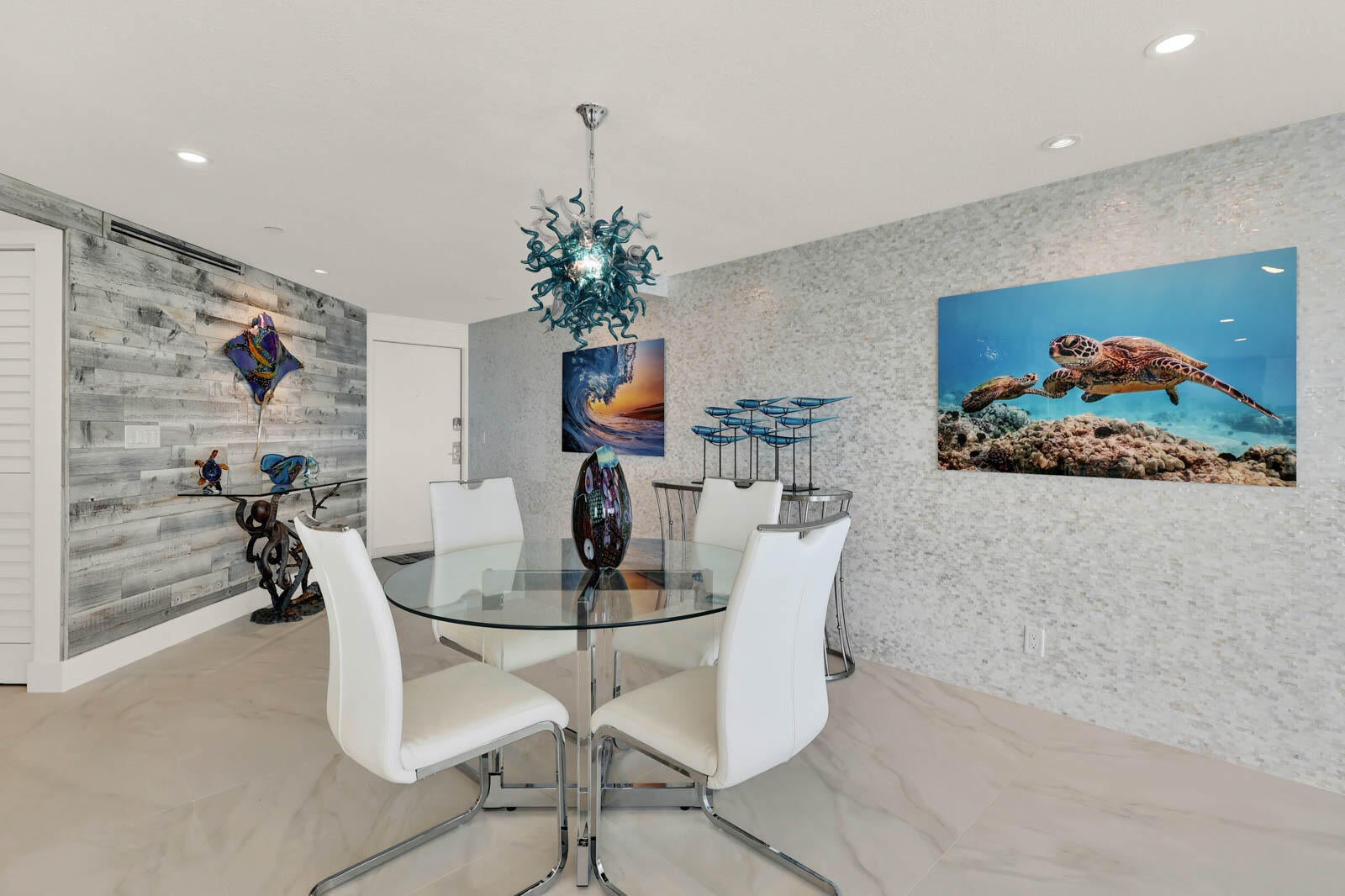 PRINCESS ON HUTCHINSON ISLAND - 2BR/2BA renovated SE end unit. Watch sunrises and sunsets with Ocean and Intracoastal/River views. Features include: renovated in 2024, impact sliders, 36'' ceramic tile, Hunter Douglas electric black out shades, textured ceiling, 6'9'x 8'5' marble center island in kitchen, marble counters in kitchen & bathrooms, shaker-style doors, shaker-style cabinets throughout, 2x4 ceramic tile on walls in bathrooms, Nickel Gap walls, Mother of Pearl tile wall, re-claimed wood planking wall, 3 separate balconies, walk-in closets with custom shelving, full size washer/dryer and so much more! A 3-D Floor plan is in photos. Community amenities include gated, social room with kitchen, billiards, fitness rooms, sauna, pool, tennis, putting green, bocce ball, boat trailer/RV parking and dune walk to beach. MIRS and SIRS have both been completed. All sizes, taxes, descriptions and HOA are approximate; there may be inaccuracies, independent verification is suggested.