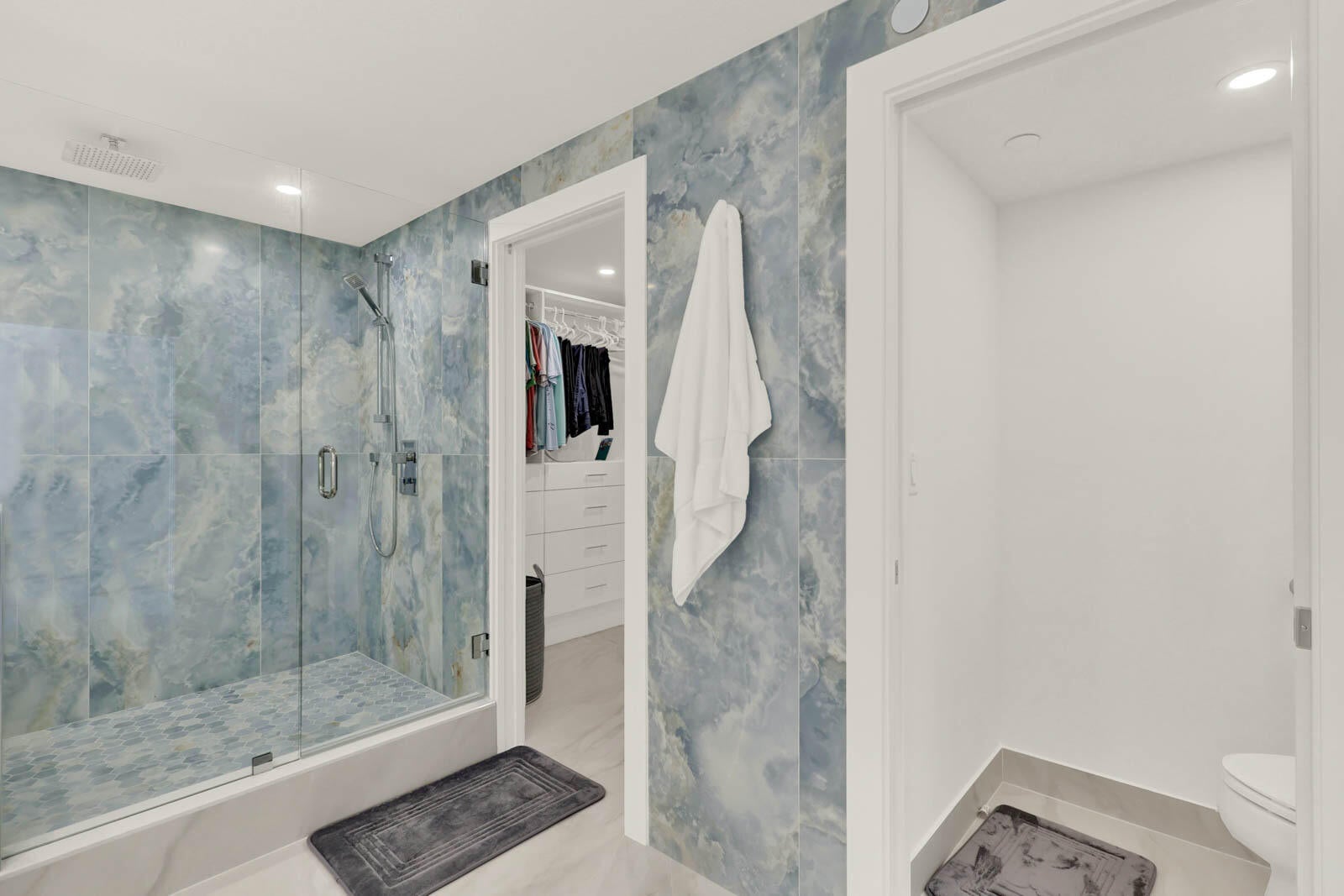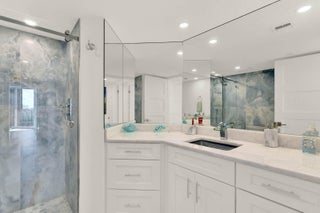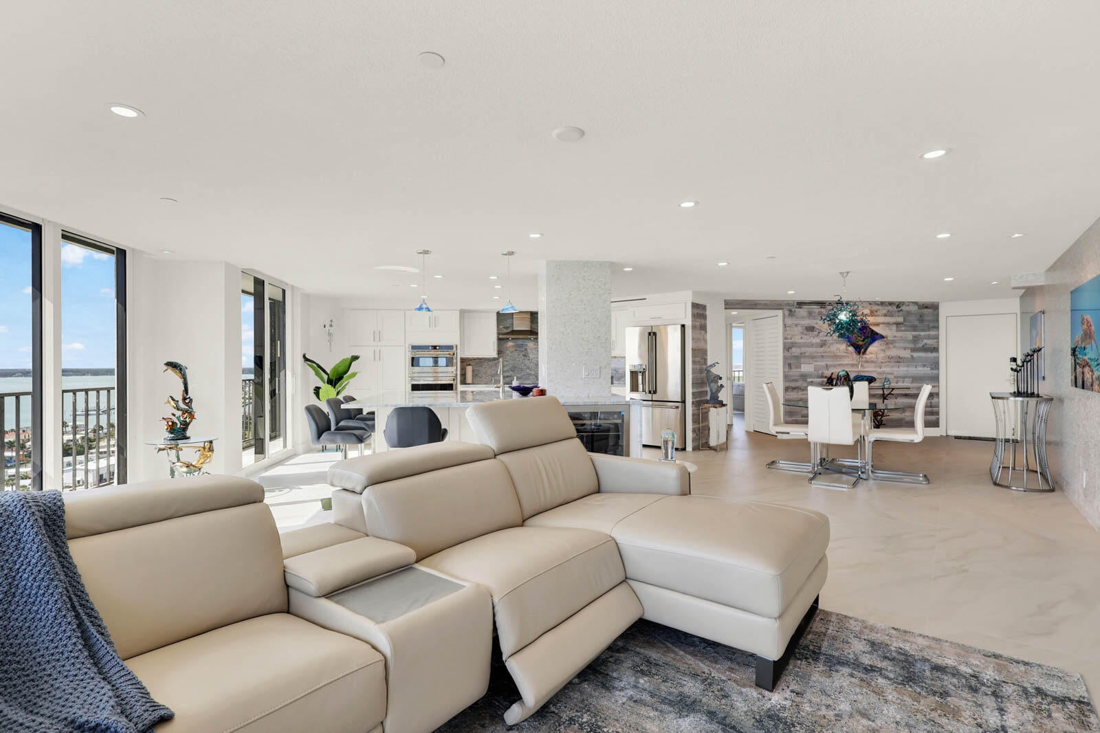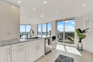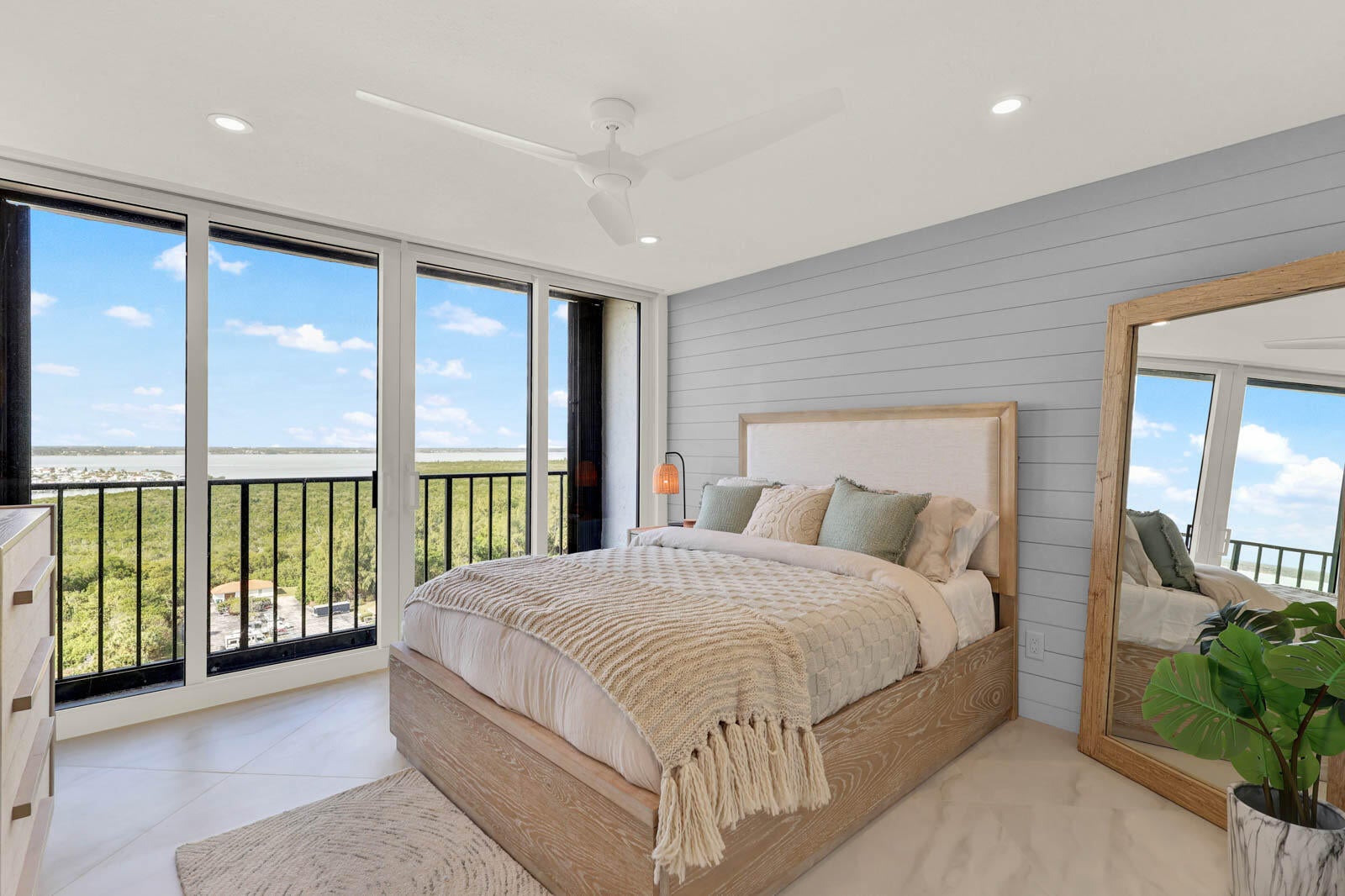 PRINCESS ON HUTCHINSON ISLAND - 2BR/2BA renovated SE end unit. Watch sunrises and sunsets with Ocean and Intracoastal/River views. Features include: renovated in 2024, impact sliders, 36'' ceramic tile, Hunter Douglas electric black out shades, textured ceiling, 6'9'x 8'5' marble center island in kitchen, marble counters in kitchen & bathrooms, shaker-style doors, shaker-style cabinets throughout, 2x4 ceramic tile on walls in bathrooms, Nickel Gap walls, Mother of Pearl tile wall, re-claimed wood planking wall, 3 separate balconies, walk-in closets with custom shelving, full size washer/dryer and so much more! A 3-D Floor plan is in photos. Community amenities include gated, social room with kitchen, billiards, fitness rooms, sauna, pool, tennis, putting green, bocce ball, boat trailer/RV parking and dune walk to beach. MIRS and SIRS have both been completed. All sizes, taxes, descriptions and HOA are approximate; there may be inaccuracies, independent verification is suggested.