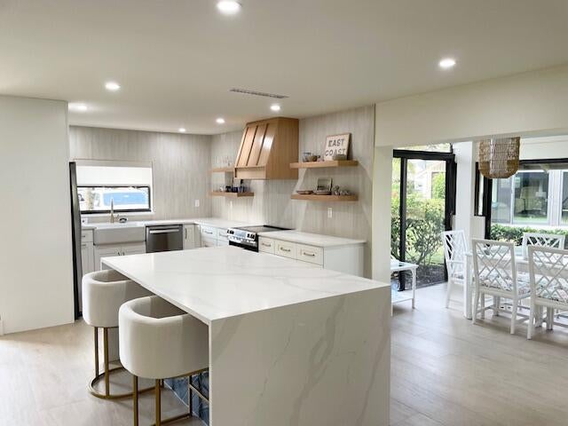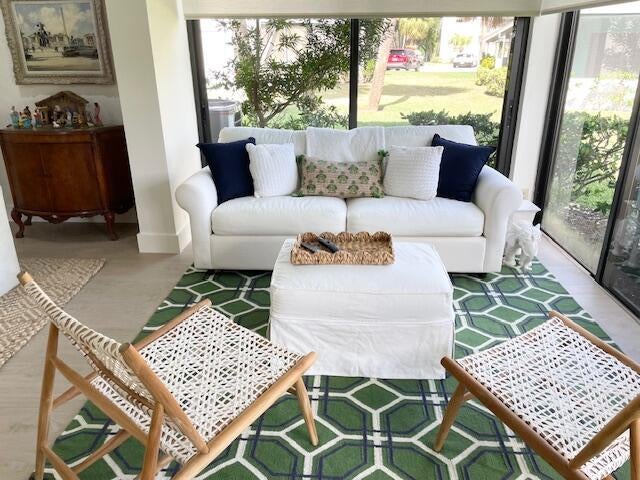Gorgeous 1st floor condo located on the 5th hole at the Jupiter Dunes GC. Features: wood plank tile flooring throughout, new quartz kitchen with huge island, SS appliances, custom cabs, new light fixtures; sunny & bright dining room & large living room; 2 renovated tiled baths & a comfortable family room/sunroom overlooking golf, perfect for relaxing & enjoying the sea breezes. Primary suite offers a king bed, walk-in closet & guest has two twins; full sized W&D; storage for beach toys and bikes; fully outfitted for a day at the beach. Walk to the beach, golf, mini-golf, DuBois Park, Jupiter Inlet plus numerous waterfront restaurants & shops, a dream location. Come live at the beach for the 2026 season. Available Jan-April 2026.