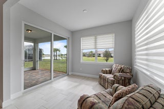 This immaculate Prosperity model home offers 2 bedrooms plus a flex room, 2 baths, open light & bright floor plan with island kitchen, large pantry, sun/cafe room and screened porch with long lake view. Levelor window shades and tile floors throughout. Perfect pallet for your finishing touches. Why wait for the builder - move right in! Del Webb at Tradition is a gated adult community with resort style amenities perfect for your socially active lifestyle. Features 2 club houses, 2 pools, pickle ball, tennis, bocce, putting green, walking trail, BBQ area, fitness room, culinary center and more.