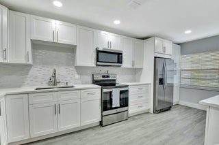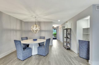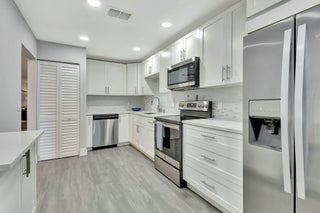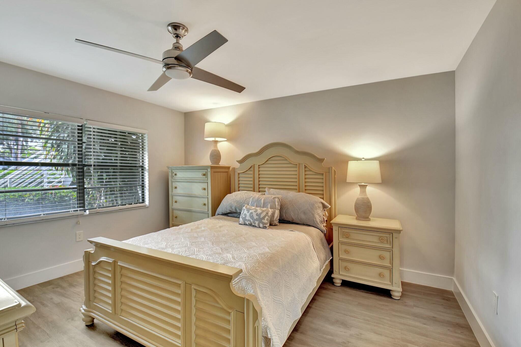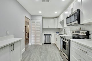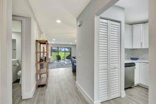 This beautifully renovated 2-bedroom, 2-bathroom main-level condo offers modern elegance and effortless living. Featuring luxury vinyl plank (LVP) flooring throughout all the rooms and freshly cleaned carpet in the primary bedroom the space exudes warmth and durability. Both baths have been elegantly updated. The white shaker kitchen is a chef's dream, complemented by quartz countertops and stylish finishes. Enjoy serene golf course views from your spacious living area and enclosed lanai enhanced by hurricane-rated sliders that provide both safety and natural light. With a thoughtfully designed layout and premium upgrades, this condo is the perfect blend of comfort and sophistication. Hunters Run is a mandatory buy-in and yearly membership, amenities-filled community,offering 3 championship 18-hole golf courses, tennis & pickle ball courts, 6 dining venues, pools, a fitness center, spa & salon, golf shop, entertainment & activities. Just minutes to vibrant downtown Delray and the BEACH! Come to Hunters Run, the only thing missing is you!