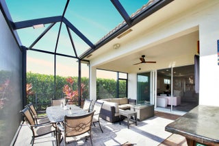Stunning Upgraded Lakefront Villa in PGA Community! This pristine 2Bedroom 2Bathroom Home with Den/Office and 2Car Garage sits on a quiet Cul-De-Sac. Open-concept design features Kitchen with Quartz Counters, Waterfall Edge Island/Breakfast Bar, Tile Back Splash, 42'' Cabinets with Upper & Lower Lighting. Spacious Living/Dining area flows into an expanded screened Lanai with a Fenced yard. Inside Laundry Room. Tons of recessed lighting, Plank Tile Floors in Main Living & Baths, Impact Windows, Plantation Shutters, Split AC & Epoxy floors in Garage, Home Surge Protection, UV filtration AC, Alarm, and More Custom Finishes. Enjoy Luxury Resort Amenities 3 Golf Courses, Indoor & Outdoor Pools, Sauna, Hot Tub, Fitness, Tennis, Pickle Ball, BasketBall, Billiards, Clubhouse, & Guarded Entry.