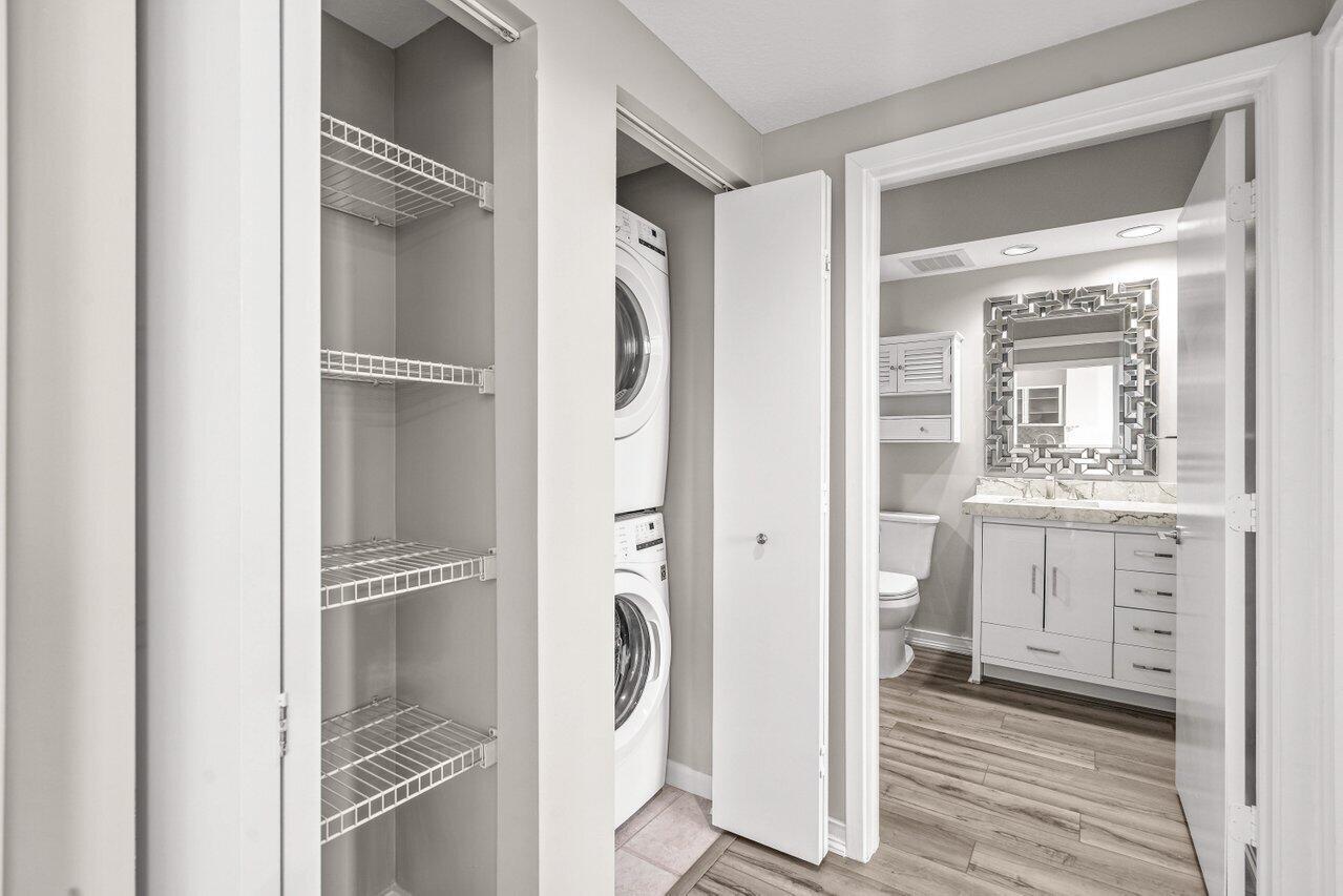 Motivated Seller! Fully renovated 1BR/1BA condo with balcony overlooking the pool and breathtaking sunsets. This stunning residence, features automatic electric blinds, brand-new kitchen countertops, luxury vinyl flooring, built-in custom closets, designer light fixtures, and state-of-the-art appliances, plus, a new washer and dryer. Includes a rare private storage unit in the garage, perfect for personal use or rental income and an assigned garage parking space. The Slade is a full-service waterfront building along Flagler Drive with resort-style amenities: 2 infinity-edge heated pools, gym, social room, valet, and 24/7 concierge. Just minutes from downtown West Palm Beach, shops and restaurants. Bring all offers! Live the luxury lifestyle today!