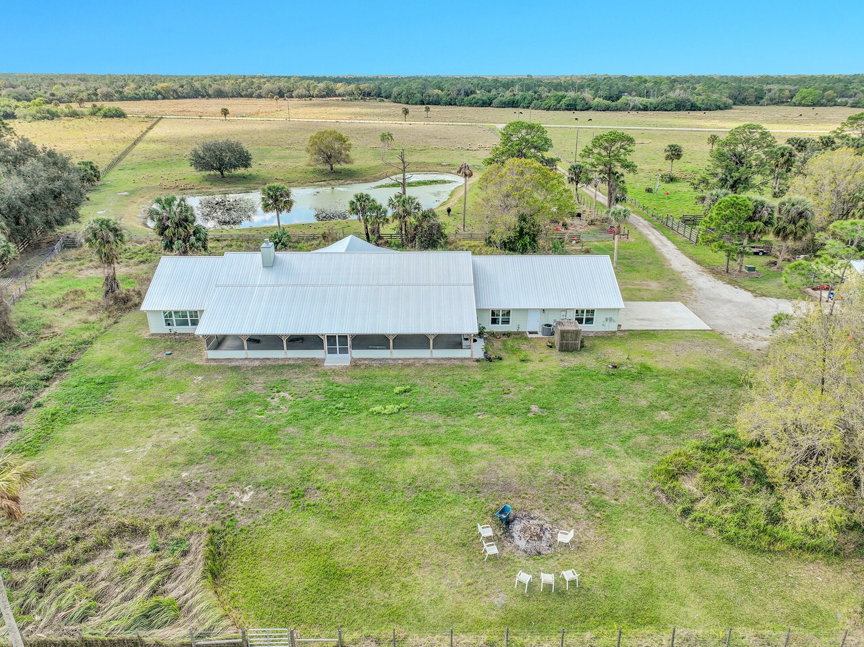 Country living with High level finishes you would normally see in a waterfront mansion. 15 Minutes west of Palm City in Unincorporated Martin County sits this 20 Acre homesite 3 paddocks of 5 acres each. This home will not disappoint! Huge 1242 sq ft living room with 17 ft Wood ceiling perfect for entertaining. Smart Home technology and 400-amp service.48 Kw Standby Generator and 500 Gallon Propane tank. Bluestar range and ovens and Sub-Zero refrigerator, Scotsman icemaker,50-amp hookup for motorhome. and huge kitchen Island. 2 master suites in the home perfect for multi-generational living. Upgraded insulation and efficiency electrical bill has not gone over $250 ever!! Barn with living quarters as well for any workers coming in with dedicated bathroom and electrical.