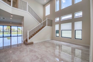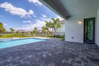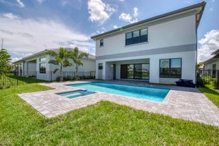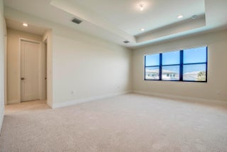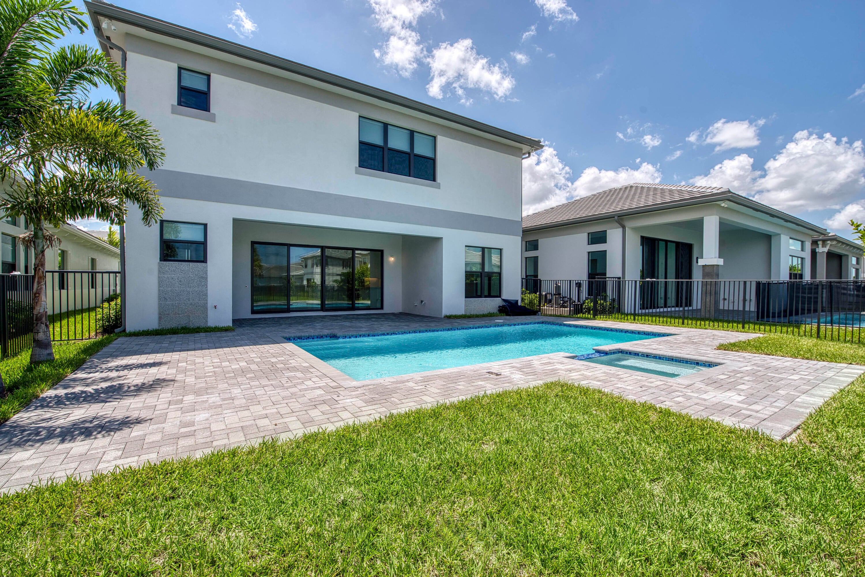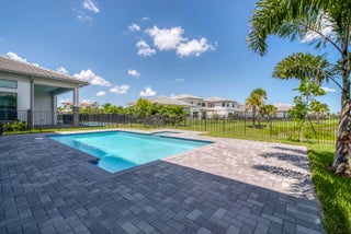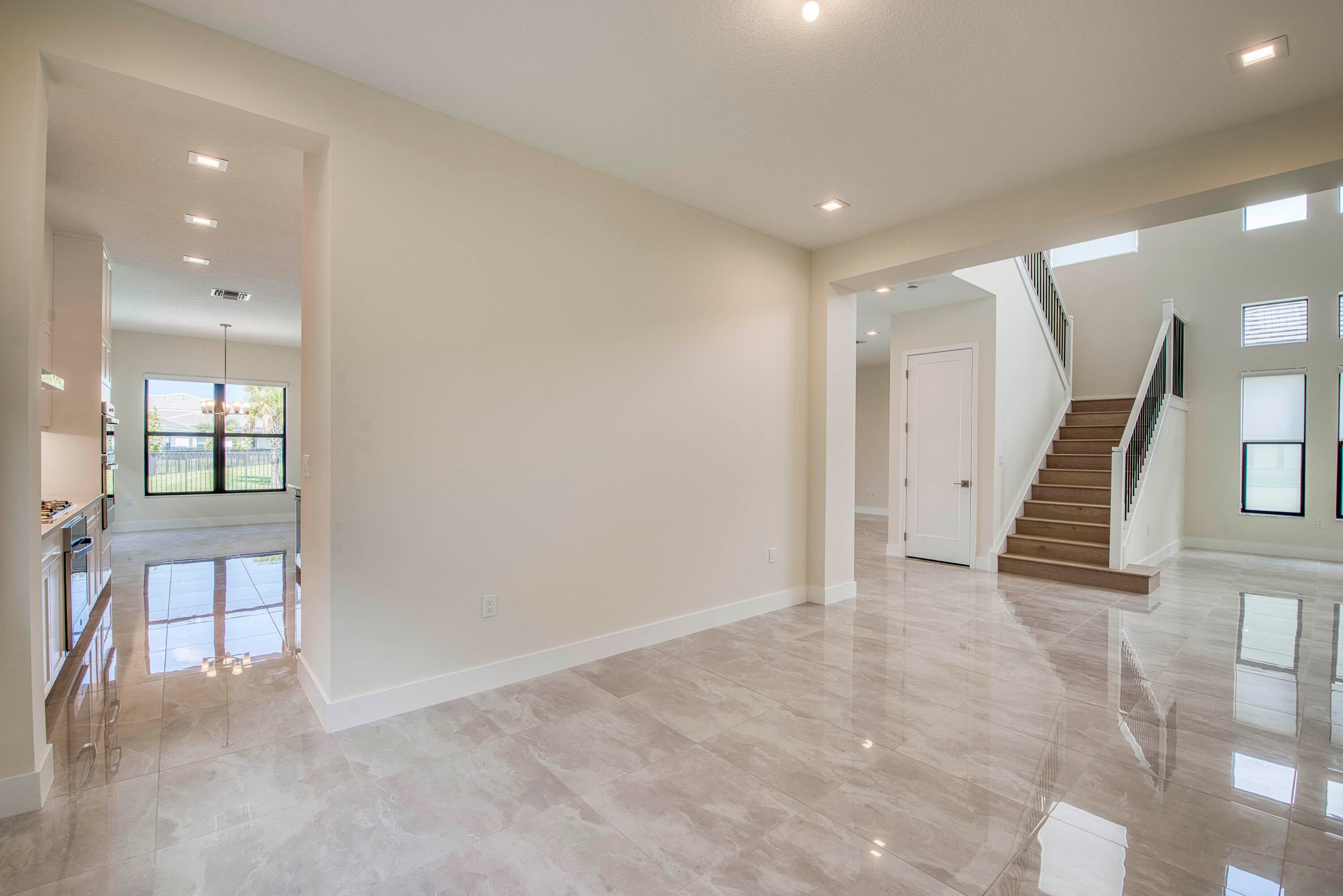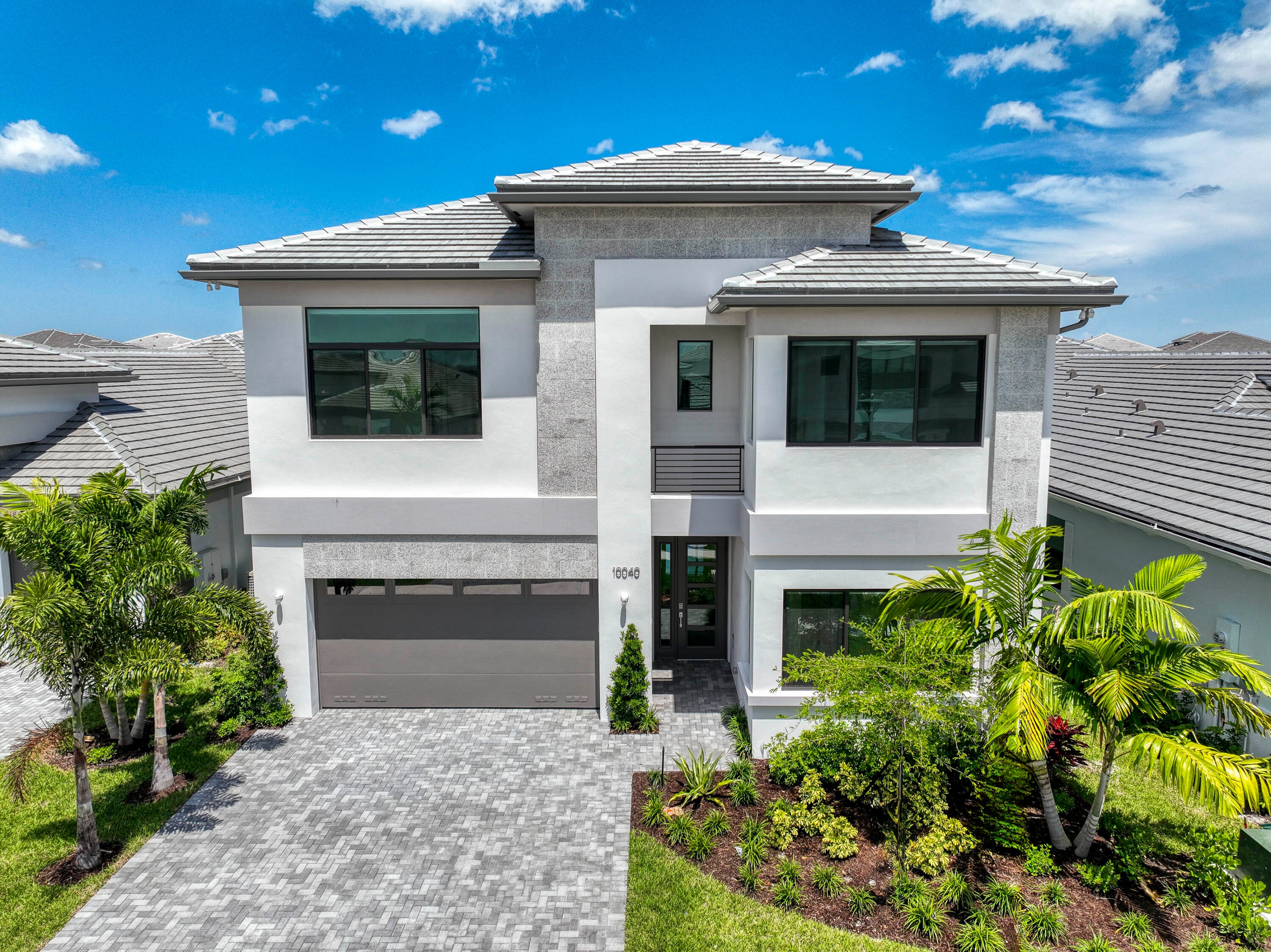 Modern Luxury in Apex at Avenir. 5 Bedroom 7 Bath lakefront home with Loft and 2 car garage. This home has all the features you need including a luxurious 24''x24'' porcelain floor tile package in key areas including the foyer, great room, family dining room, and laundry room. Gourmet kitchen featuring upgraded cabinetry and sleek quartz countertops with a flat polished edge, complemented by a full backsplash. This culinary haven is equipped with a GE appliance package, including a gas cooktop, and boasts a spacious kitchen island with seating, making it perfect for both cooking and entertaining. The laundry room offers an upgraded cabinet package with quartz countertops, and a built-in laundry sink for added convenience. Plush carpeting throughout the home (excluding tiled areas),and standard manufacturer warranties on all appliances, the air conditioning compressor, and the air handler unit. For modern security and connectivity, the home comes equipped with an in-home wireless alarm system, featuring wireless magnet contacts on all operable windows and doors (excluding exterior garage doors), along with a 7" touchpad and a secondary auxiliary touchpad placed according to the purchaser's specifications. The garage includes 20 AMP dedicated receptacles for a future refrigerator, while a USB/C receptacle is conveniently located in both the kitchen and primary bedroom. An empty conduit from the electric panel to the garage is also in place for future EV charger installation. Exceptional Lifestyle and ideal proximity to all the best parts of Palm Beach County! Estimated Delivery Date - July/August 2025