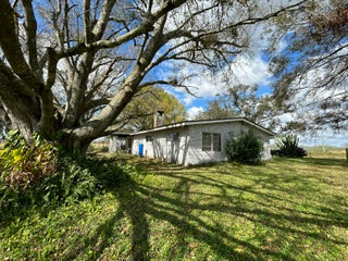 FIVE ACRES- with a well built rustic 3 bedroom 2 bath home featuring a metal roof, new a/c a functioning two-sided fireplace to be enjoyed in the family room as well as the primary bedroom. Very spacious home with plenty of room for all your animals including a barn with electric.