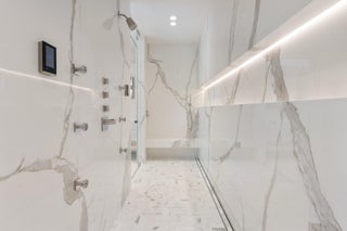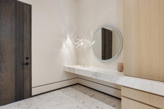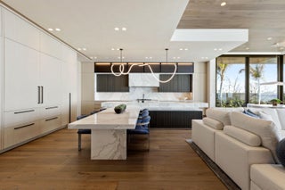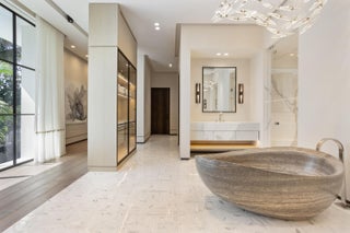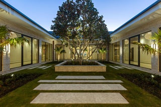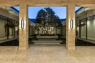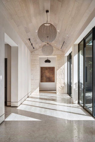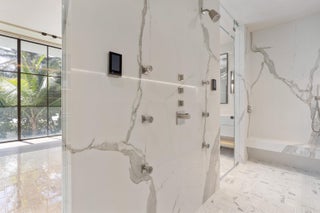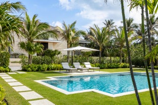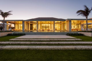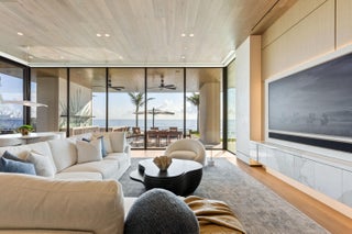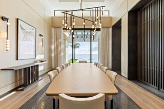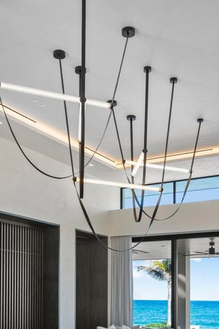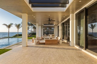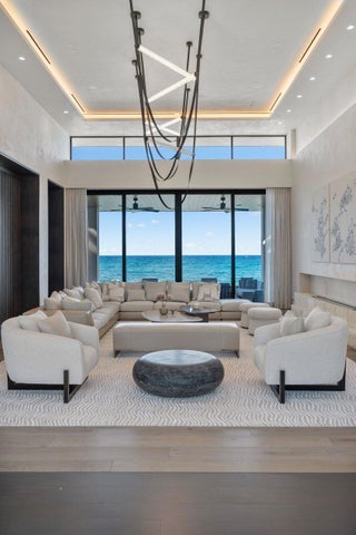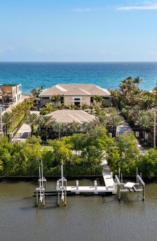 Set between the Atlantic Ocean and Intracoastal Waterway, 1160 S. Ocean Blvd is a rare retreat where architecture and nature exist in perfect harmony. Spanning 27,745+/- square feet under roof on nearly 2 acres, this newly completed estate offers 160 feet of direct ocean frontage and private Intracoastal access, creating an unrivaled connection to land and sea. Designed with balance and thoughtful craftsmanship, the 25,197+/- square-foot main house flows effortlessly from one space to the next. From the grand entry hall, the journey unfolds--a symphony of light and space, where the living room merges with the ocean beyond. The formal dining room, with its ocean-facing bar, sets the stage for elegant entertaining, while the open-concept kitchen and family area form the heart of the home.A private catering kitchen allows staff to work discreetly behind the scenes. The primary suite, occupying its own wing, features a private sitting room, ocean-view office, and dual dressing rooms. The spa-like primary bath, wrapped in Calacatta marble, offers a stone soaking tub and dual water closets. Three additional guest suites on the main level each provide private en-suite baths and walk-in closets. On the lower level, the home transforms into a haven of leisure and wellness, featuring a state-of-the-art gym, steam shower, wine room, game room, and immersive theater. Two additional bedrooms offer private accommodations for staff or extended family. From concept to completion, this home was orchestrated by female builder Siobhan Zerilla, principal of Bluedoor Building, bringing vision and artistry to every detail. For the automotive enthusiast, a climate-controlled 13-car garage provides the perfect space for a prized collection. A separate guest house offers two bedrooms, two full baths, a half bath, a full kitchen, dining area, and private laundry, while its own cabana and private pool create a secluded retreat. The outdoor spaces are equally intentional, with a covered courtyard and east-facing loggia, designed for meditation, relaxation, and celebration. A private dock, equipped with two boat lifts, allows effortless Intracoastal access for yacht owners and water enthusiasts. Every surface, every detail has been curated for those who expect the best. White oak wood floors add warmth, complemented by Santorini Shell Stone, which transitions from indoor elegance to outdoor serenity. The home's refined palette is completed with Calacatta Gold, Black Alexander Honed stone, bespoke plaster walls, mahogany, and white oak accents. This is more than a homeit is a journey, a sanctuary where every detail whispers serenity. 1160 S. Ocean Blvd, Manalapanwhere life finds its rhythm.