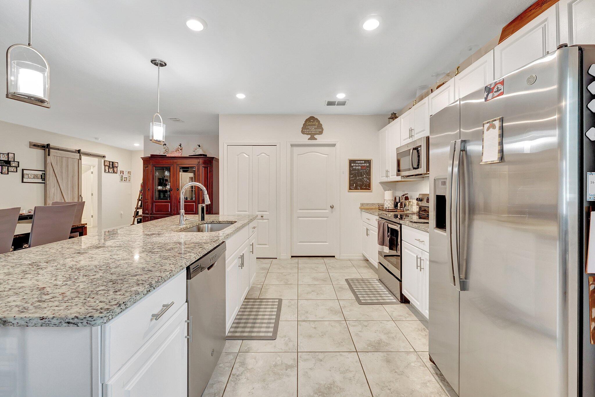 Step into contemporary comfort with this stunning newer-built 4-bedroom, 2-bathroom home featuring a spacious 2-car garage, perfectly tucked away in a serene family-friendly neighborhood. Designed with modern living in mind, this beauty shines with stylish upgrades--from the chic sliding barn door and open-concept layout to the chef-inspired kitchen boasting a sprawling island and gleaming granite countertops, ideal for everything from casual morning coffee to festive entertaining. Out back, a durable white vinyl fence surrounds your expansive yard, offering endless possibilities--dream pool, weekend barbecues, or the ultimate backyard playground. With nearly 2,000 sq. ft. of thoughtfully designed space, this move-in-ready gem suits both growing families and first-time buyers